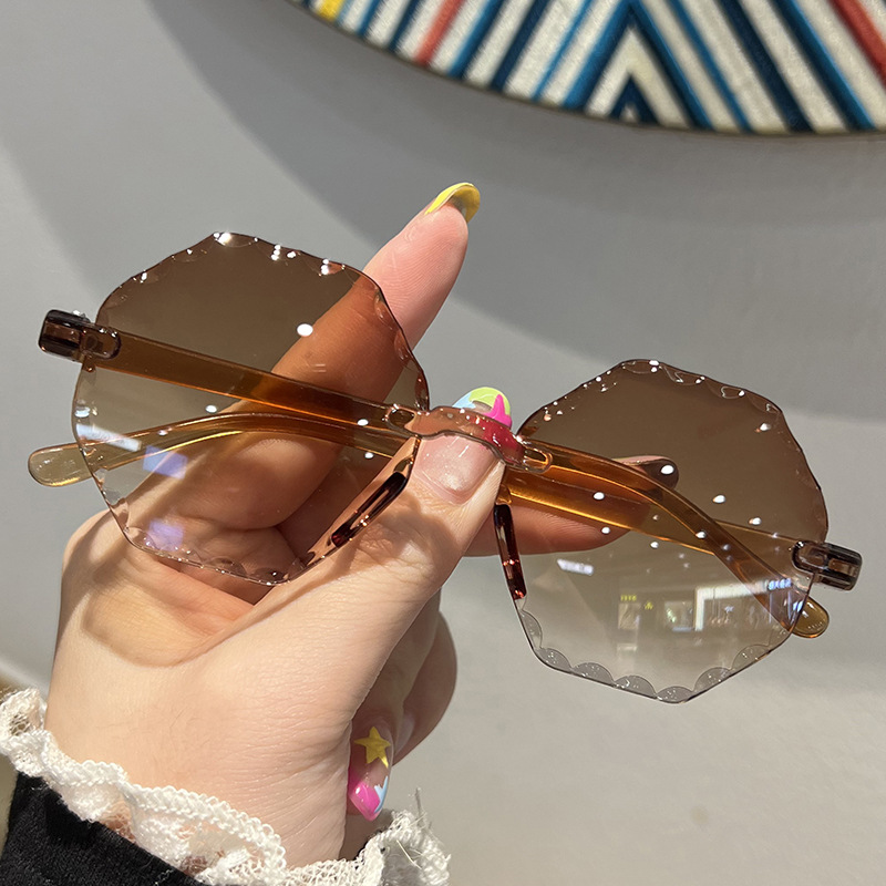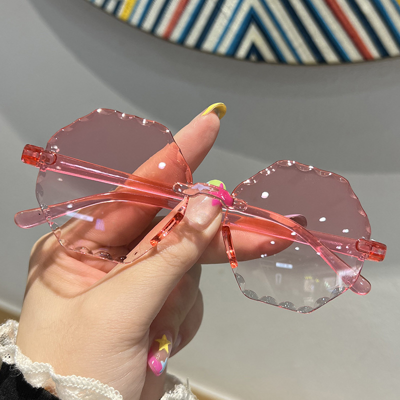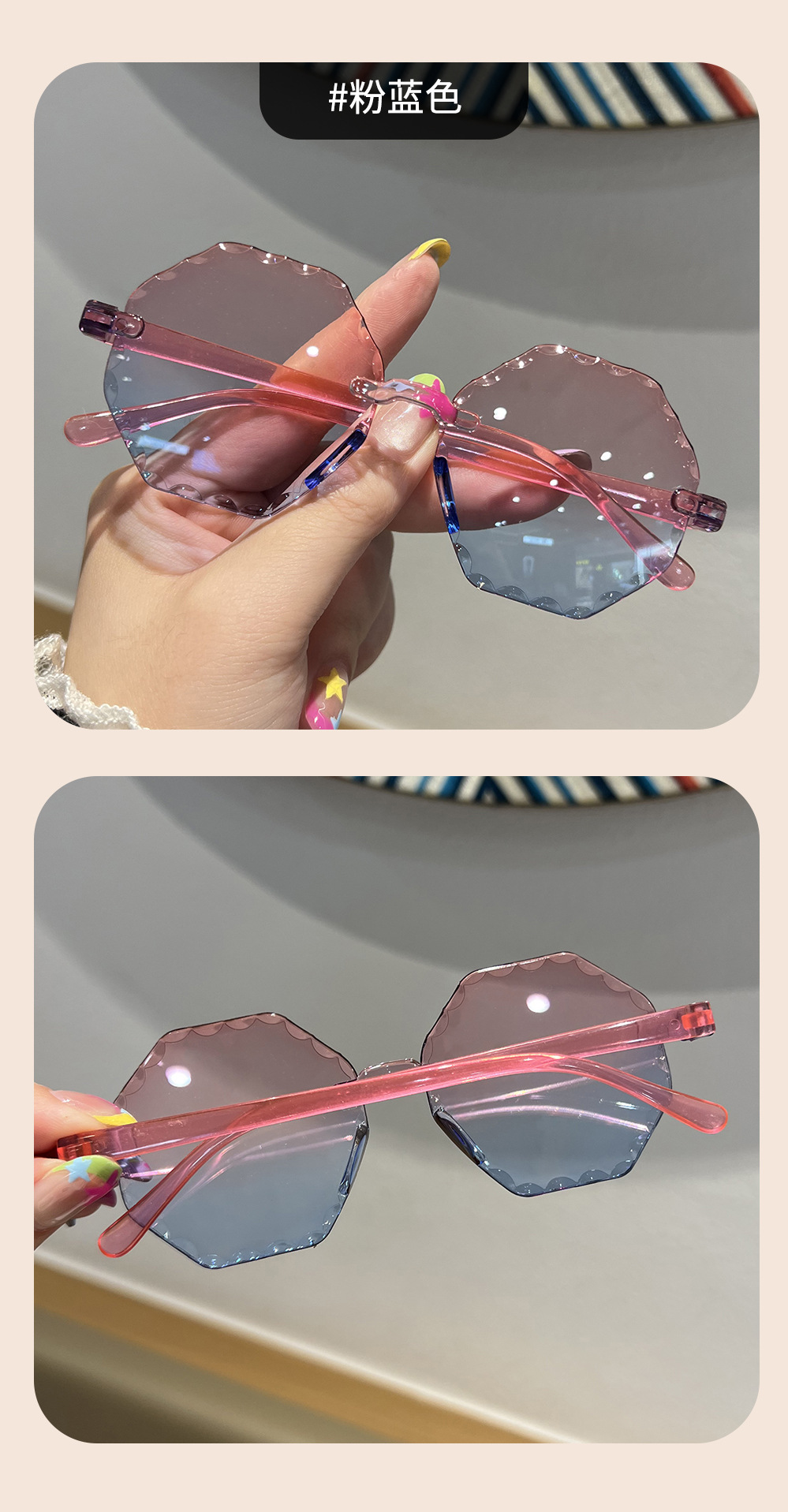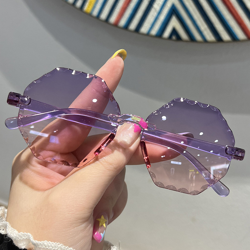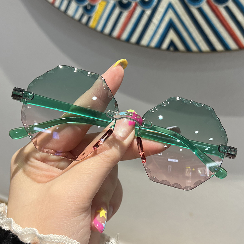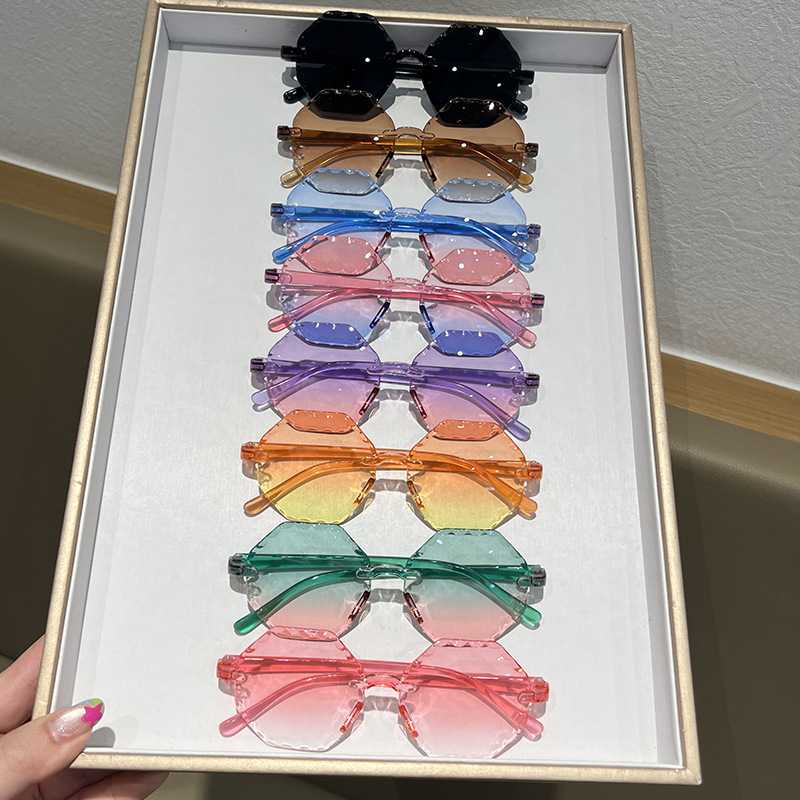Новые безободковые многоугольные детские солнцезащитные очки оптом, цельные желеобразные очки в квадратной оправе с градиентными линзами