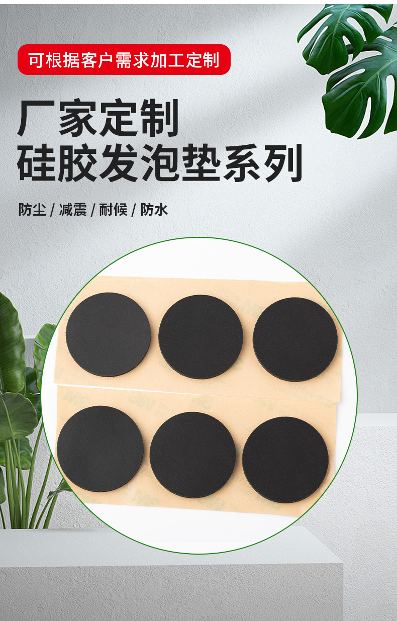 环保无毒隔音硅胶发泡条耐高温耐酸碱密封缓冲垫异型可裁泡棉垫片