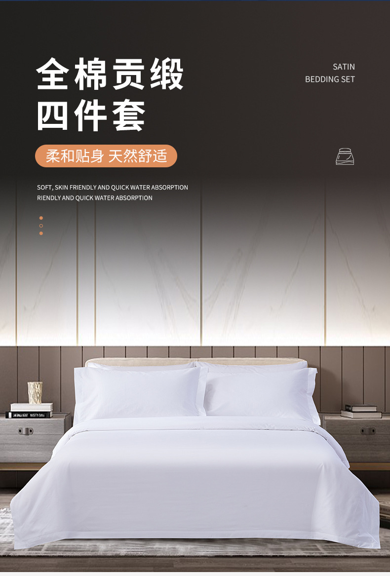 Постельный комплект из четырех предметов для пятизвездочного отеля, 60-счетный чистый хлопок, белый сатин, отельная постельное белье от фабрики B&B