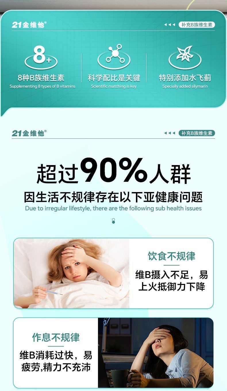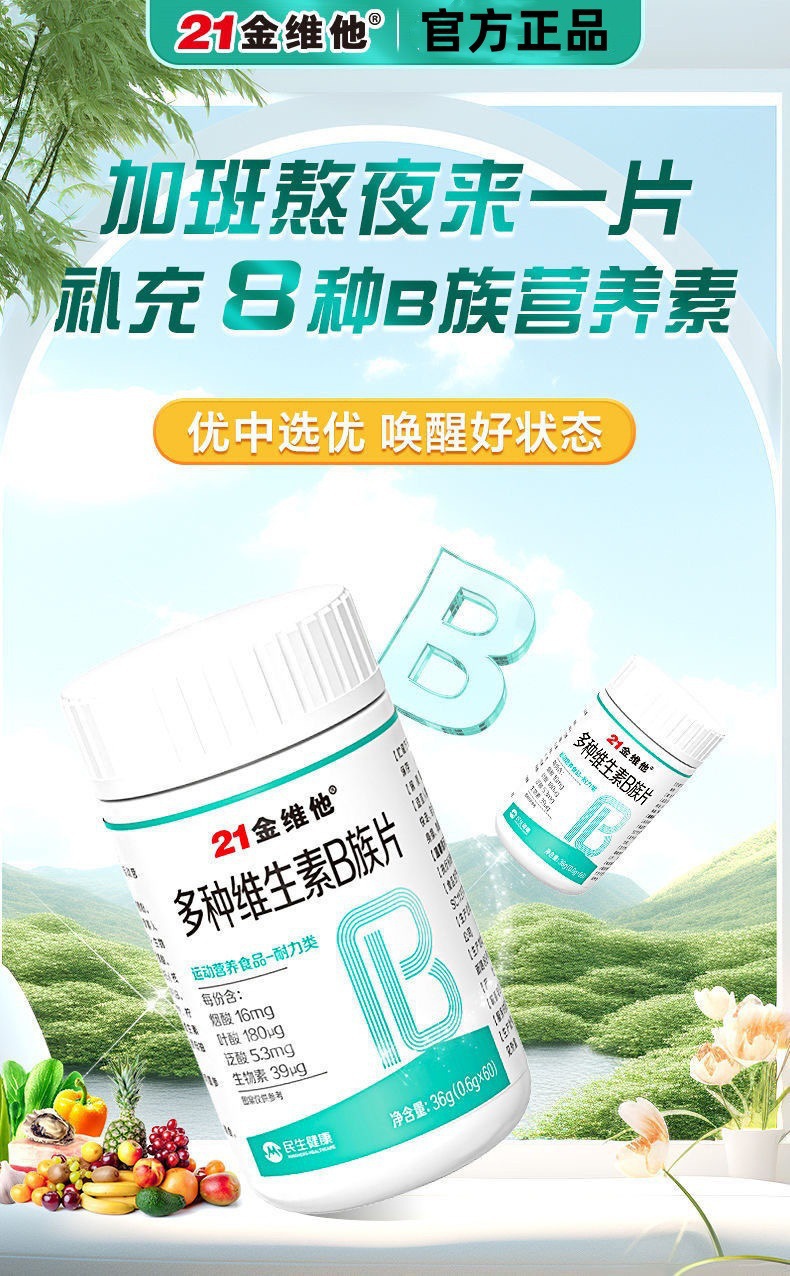 21 таблетка мультивитаминного комплекса Golden Vita B, конфеты, 60 капсул/бутылка, 8 видов комплекса B для детей и взрослых, оригинальные