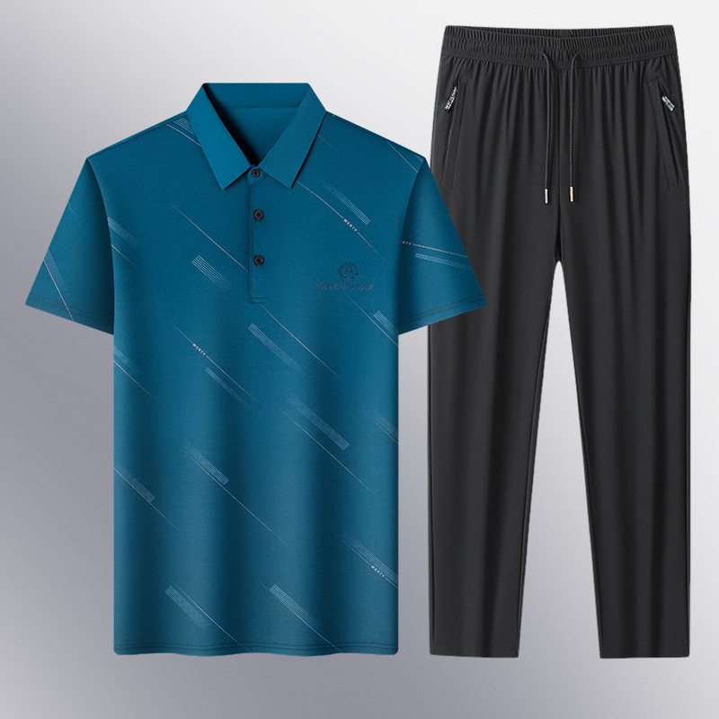 Костюм-рубашка-поло из ледяного шелка для людей среднего и пожилого возраста, дышащие, впитывающие пот, быстросохнущие брюки с короткими рукавами и лацканами, костюм-двойка для папы