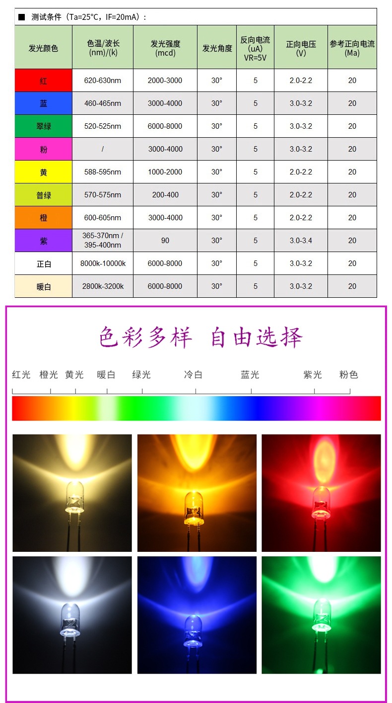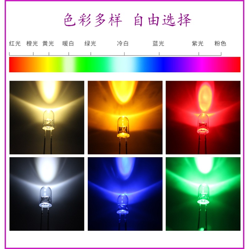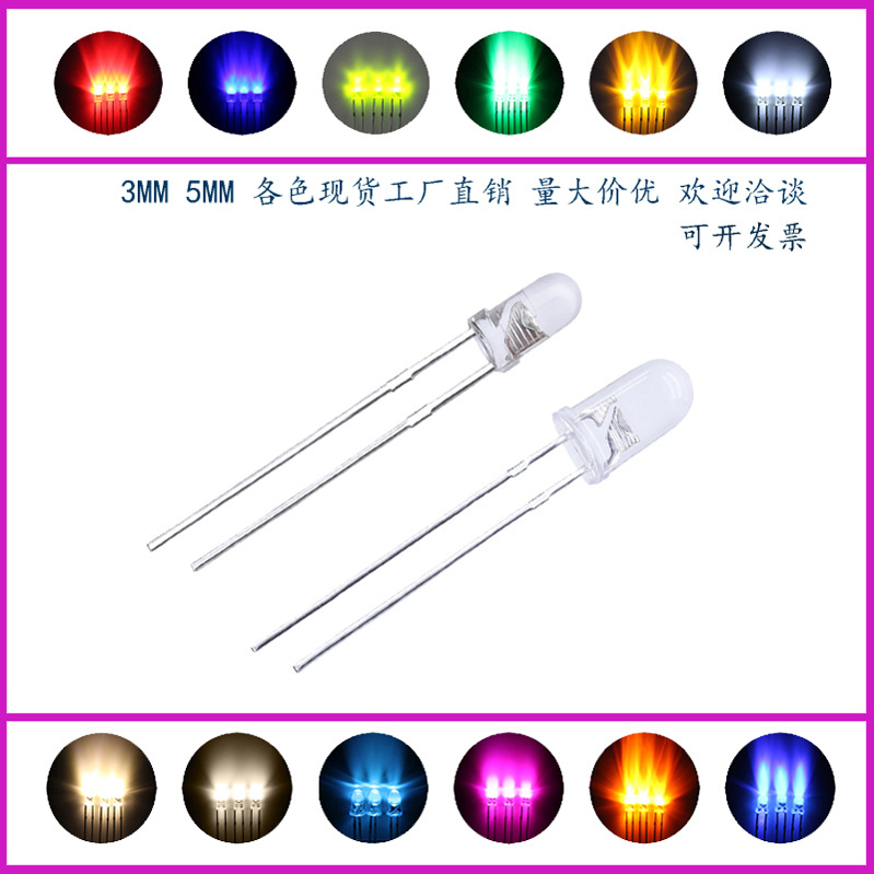 Высокояркие прозрачные лампы F3 мм/F5 мм, белый свет, красный свет, зеленый свет, синий свет, фиолетовый свет, прямой подключаемый светодиодный светодиод