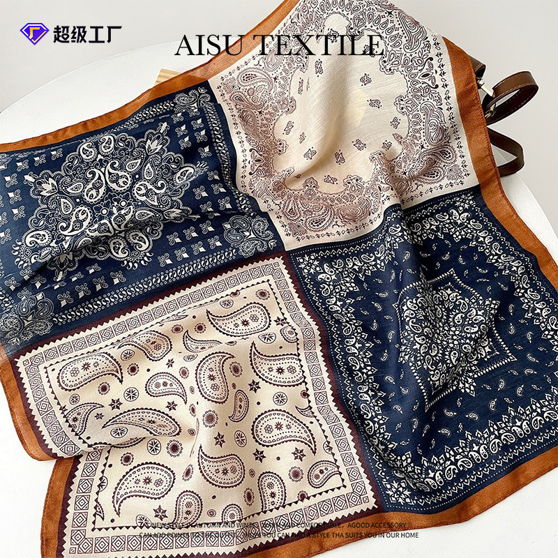 Новый шелковый шарф из кешью с узором «елочка», квадратный шарф с цветными блоками, маленький квадратный шарф в литературном ретро-стиле, декоративный шарф на шею, дышащий шарф