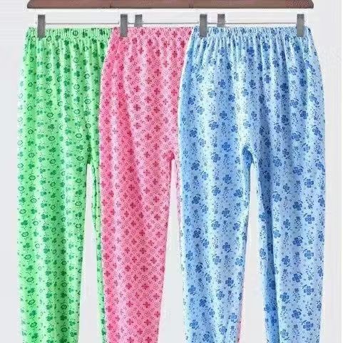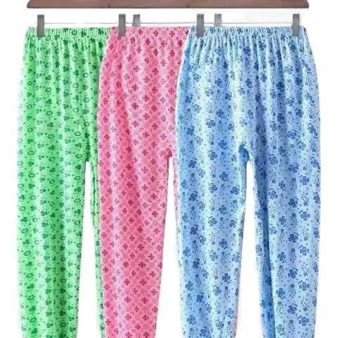 Осенние брюки для женщин среднего и пожилого возраста, хлопчатобумажные шерстяные брюки с высокой талией и принтом, свободные брюки из полиэстера для пожилых людей, женские осенние брюки с цветочным принтом.