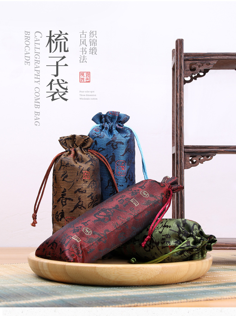 Брокадный мешочек на шнурке, длинная сумка для хранения, высококачественная вышитая ювелирная вещь, маленькая тканевая сумка на шнурке, сумка для расчески на заказ