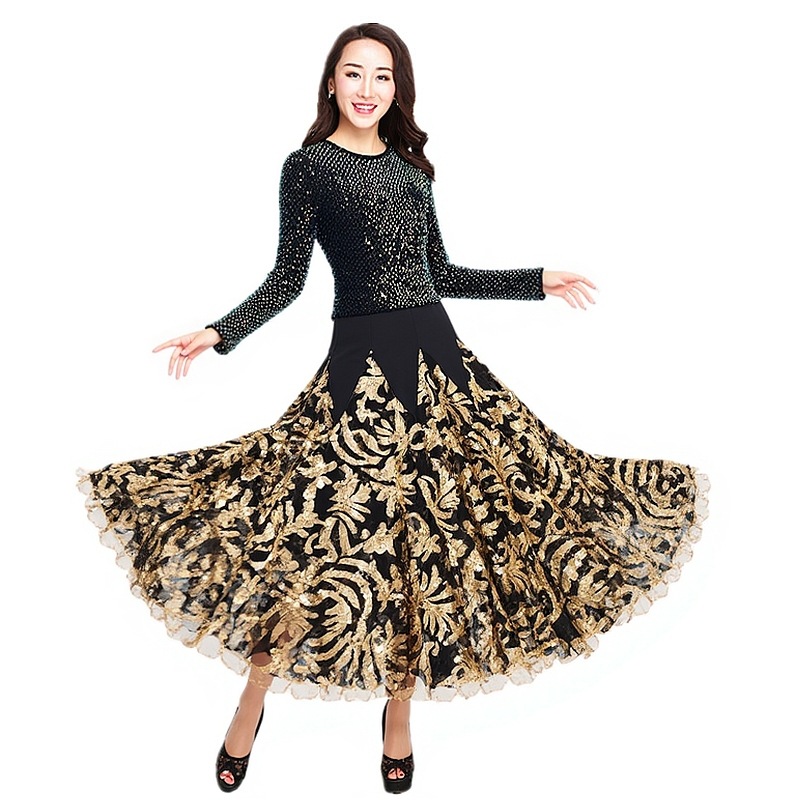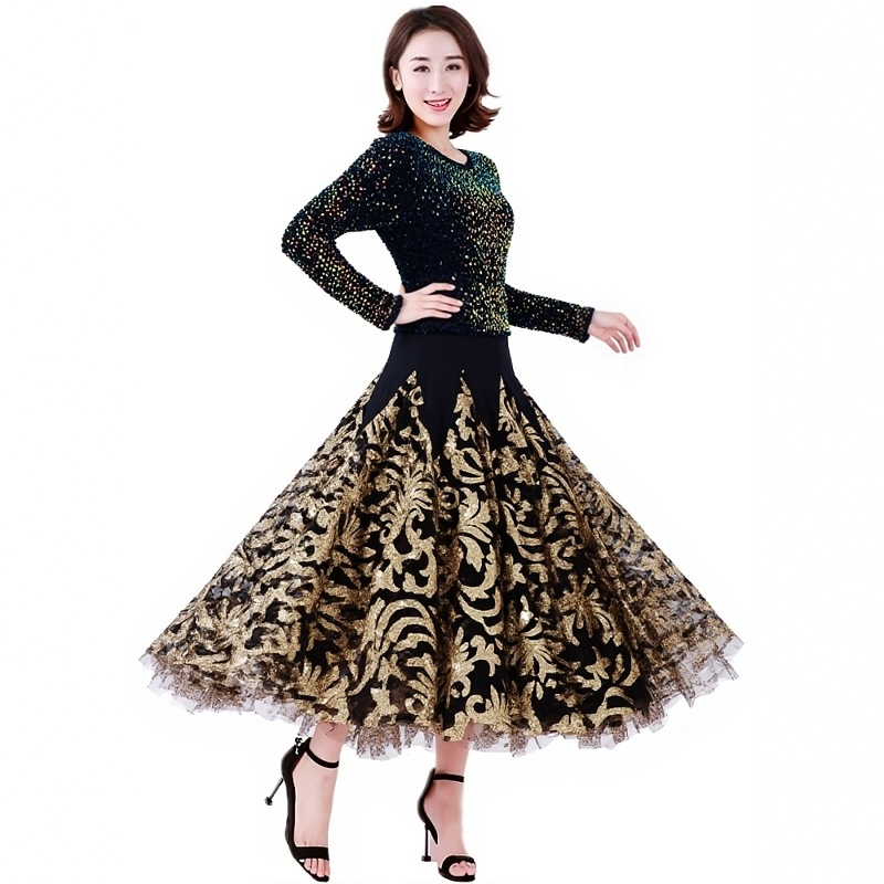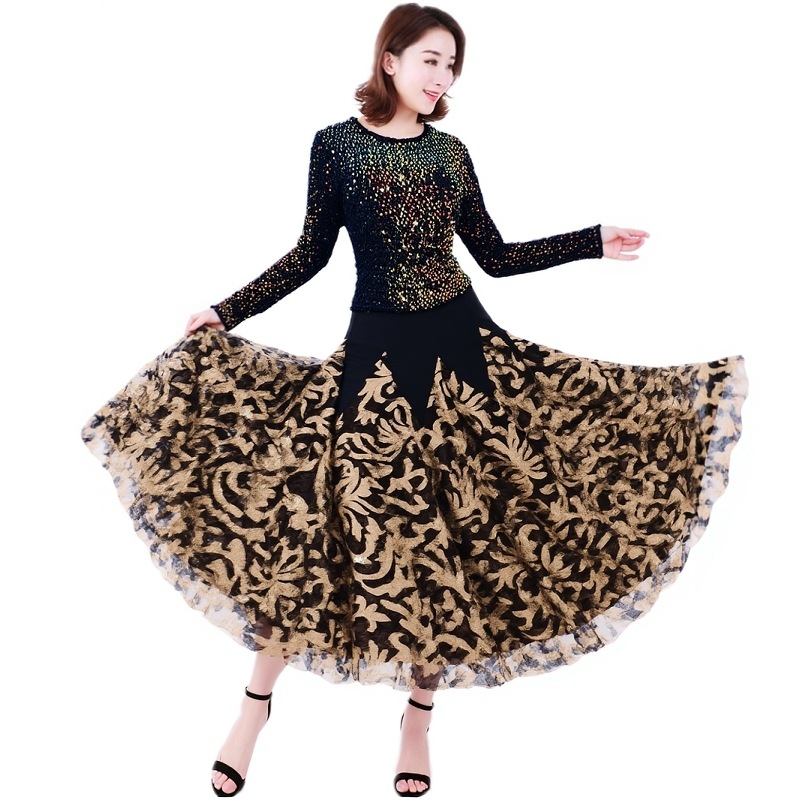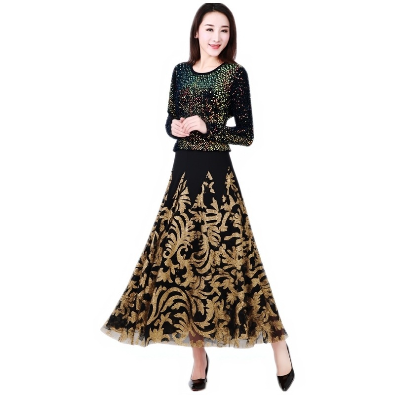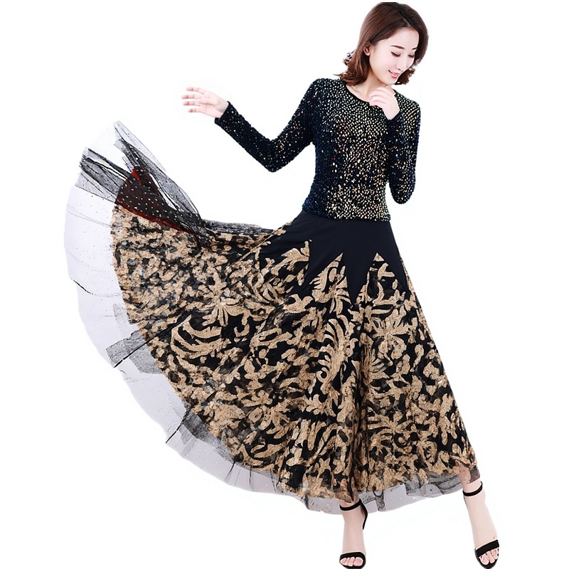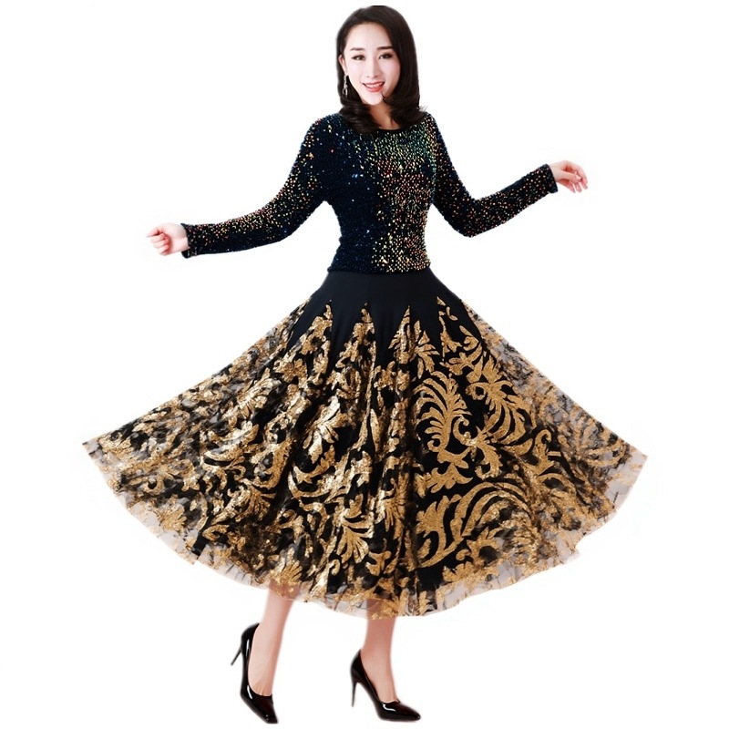 Современная танцевальная юбка для бальных танцев, юбка-качели, одежда для выступлений с длинными рукавами