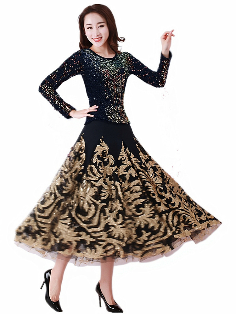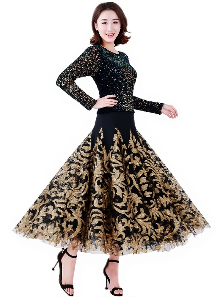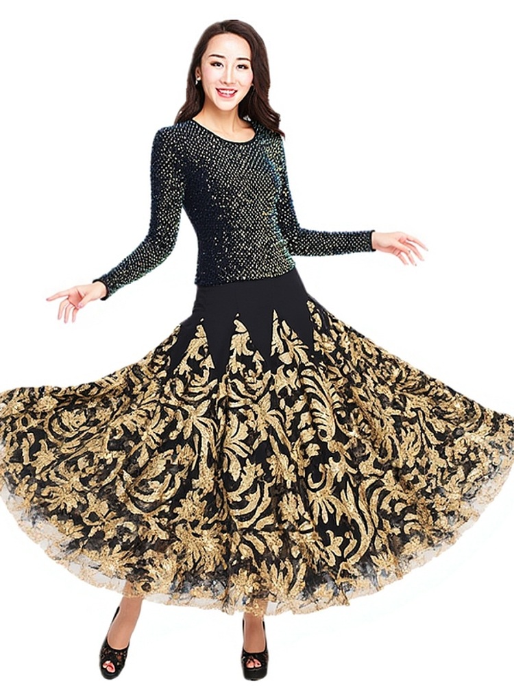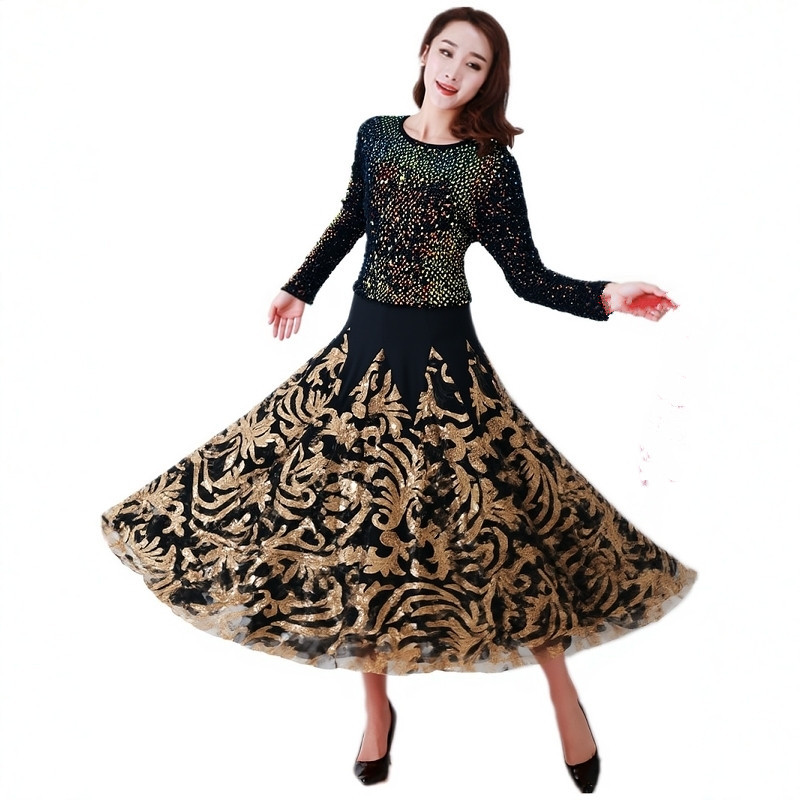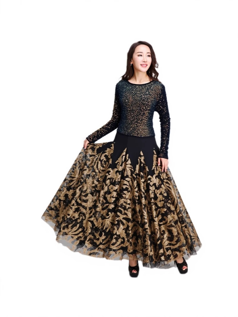 Современная танцевальная юбка для бальных танцев, юбка-качели, одежда для выступлений с длинными рукавами