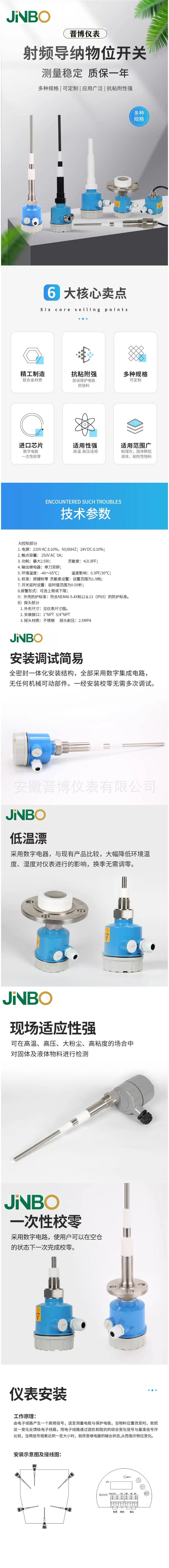 Емкостной переключатель уровня Измеритель уровня электропроводности RF Высокотемпературный антикоррозионный переключатель уровня фланца стержня из ПТФЭ