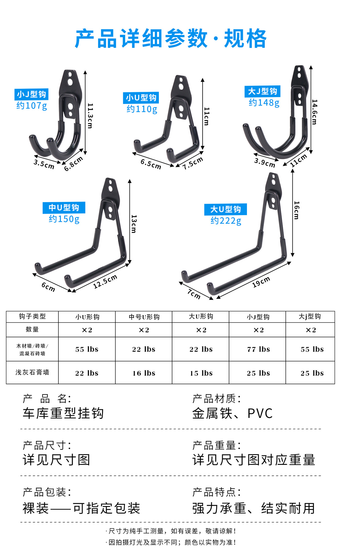 Металлические крюки для гаража, велосипеда, сада, инструментов, хранения, склада, настенные крюки с высокой несущей способностью