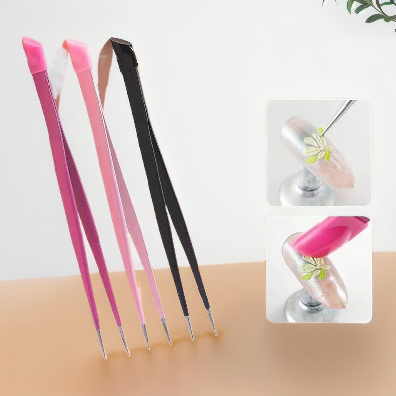 Многофункциональные маникюрные пинцеты двойного назначения, наклейки, зажим из сплава, сверло, специальные двусторонние пинцеты с силиконовыми прессовыми инструментами, оптовая продажа
