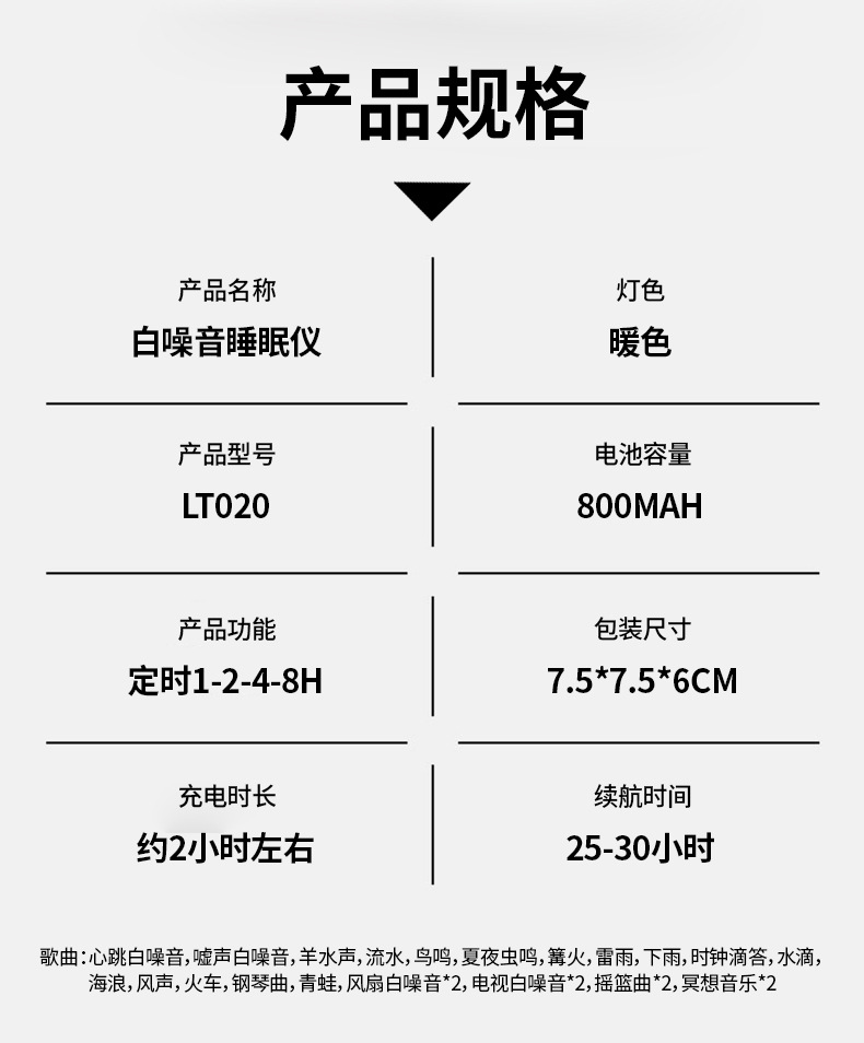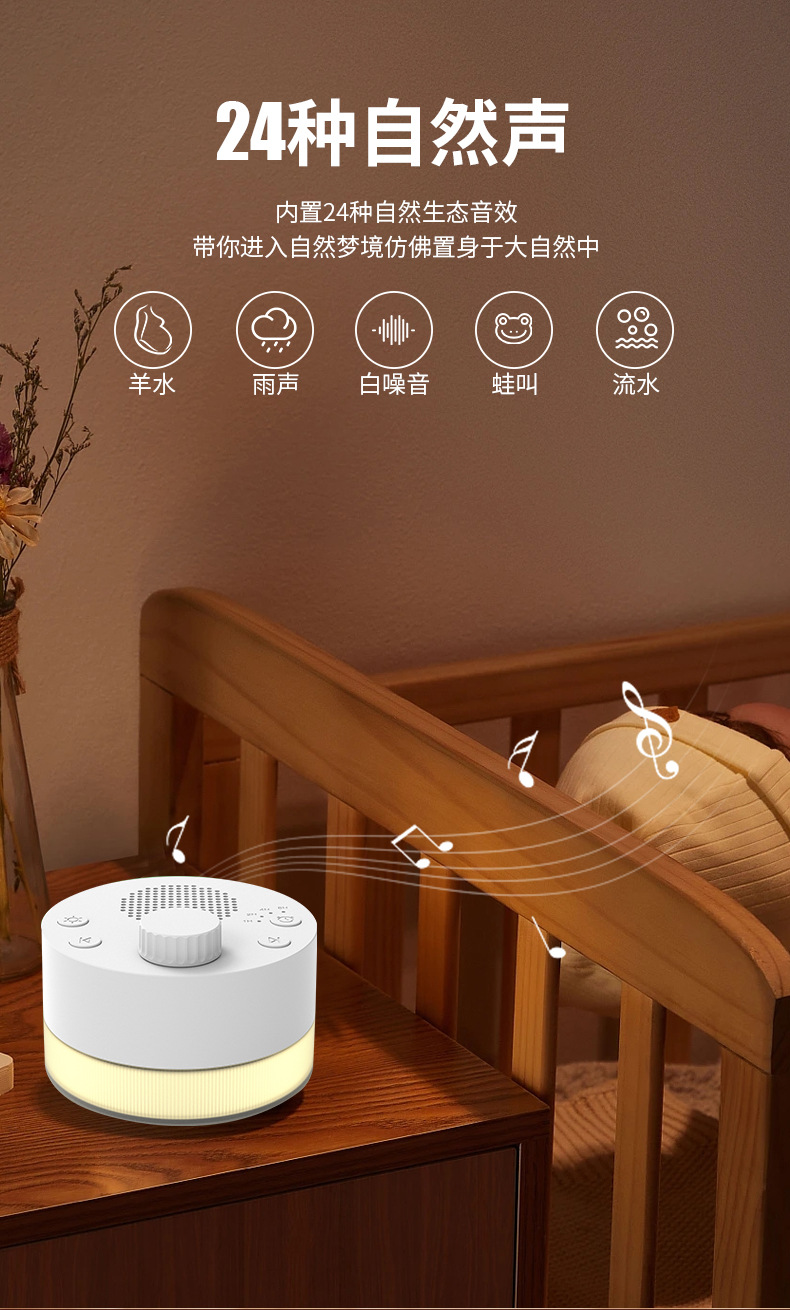 Трансграничный интеллектуальный инструмент для сна с белым шумом, теплая атмосфера света, ночник, инструмент для сна с естественным звуковым эффектом, успокаивающий инструмент для младенцев и малышей