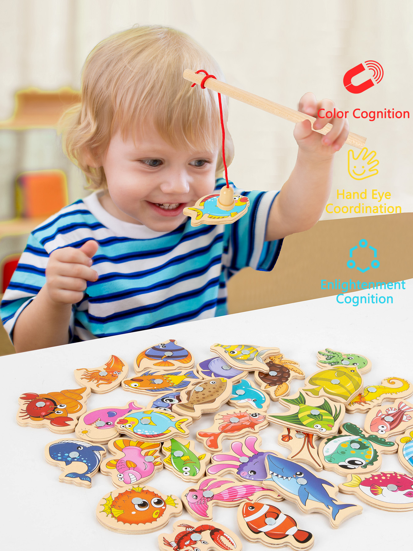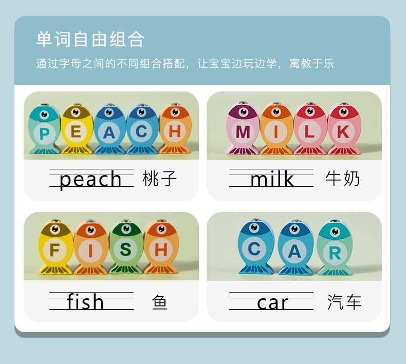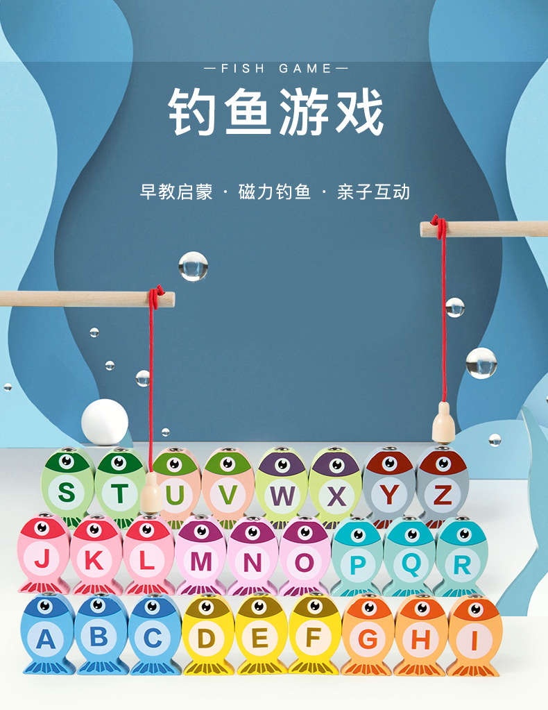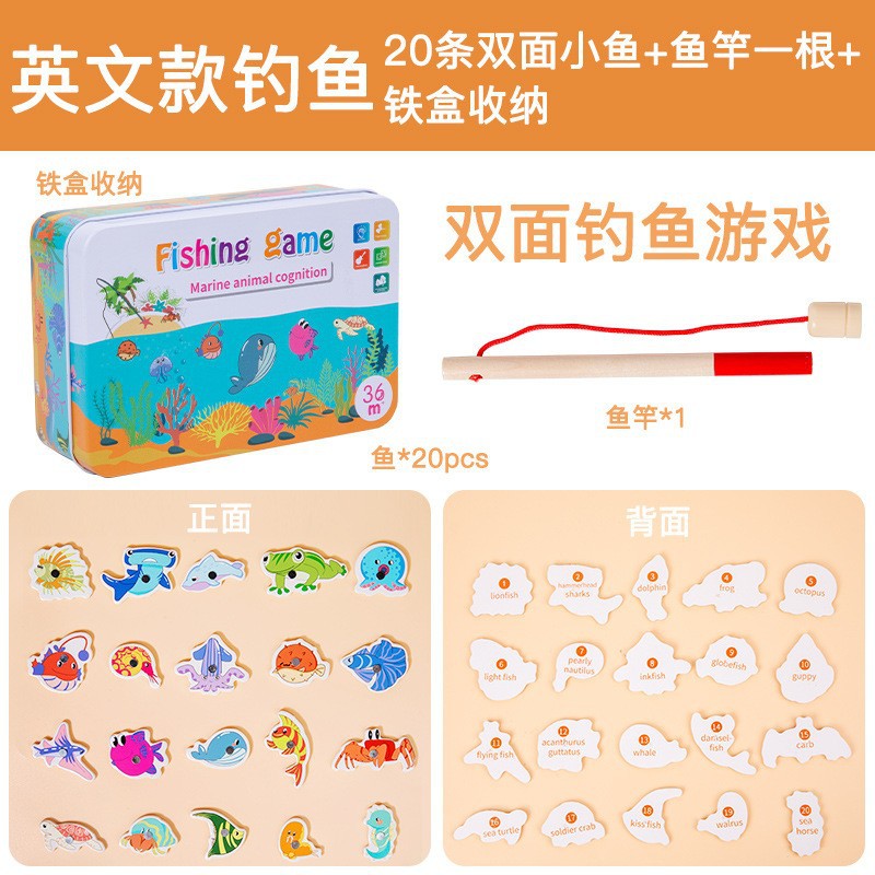 Трансграничная английская версия детских игрушек для рыбалки, деревянное раннее образование, детское образовательное развитие, развитие мозга, оптовая продажа для мальчиков и девочек