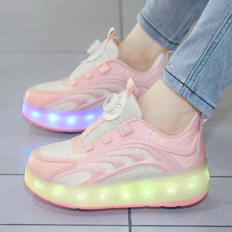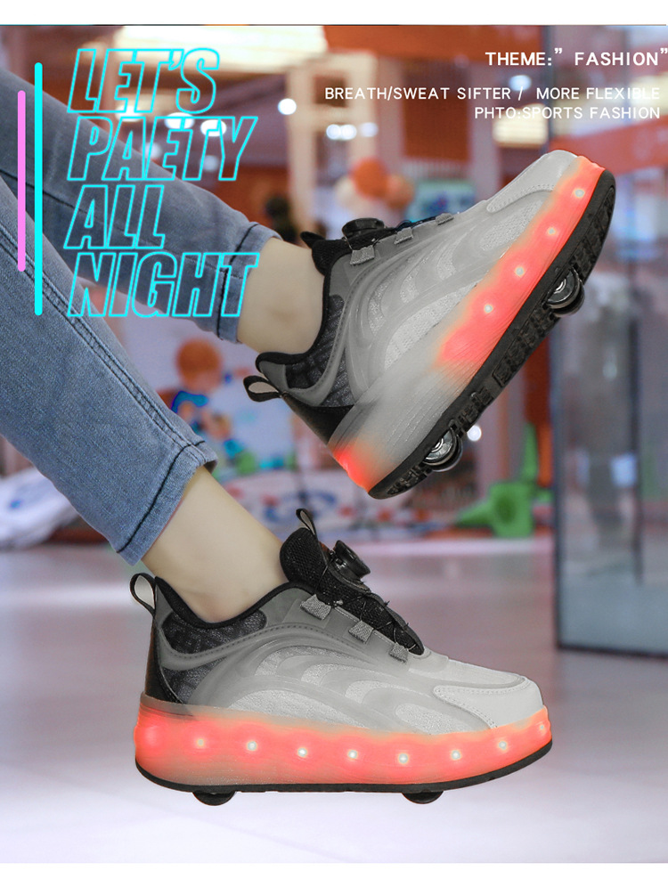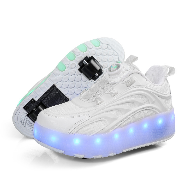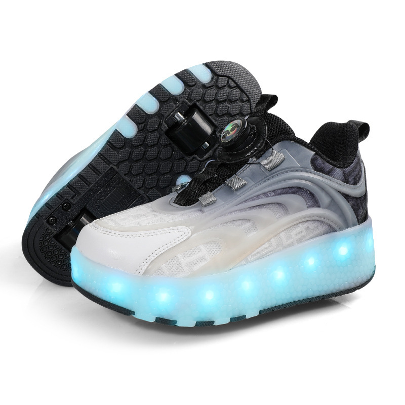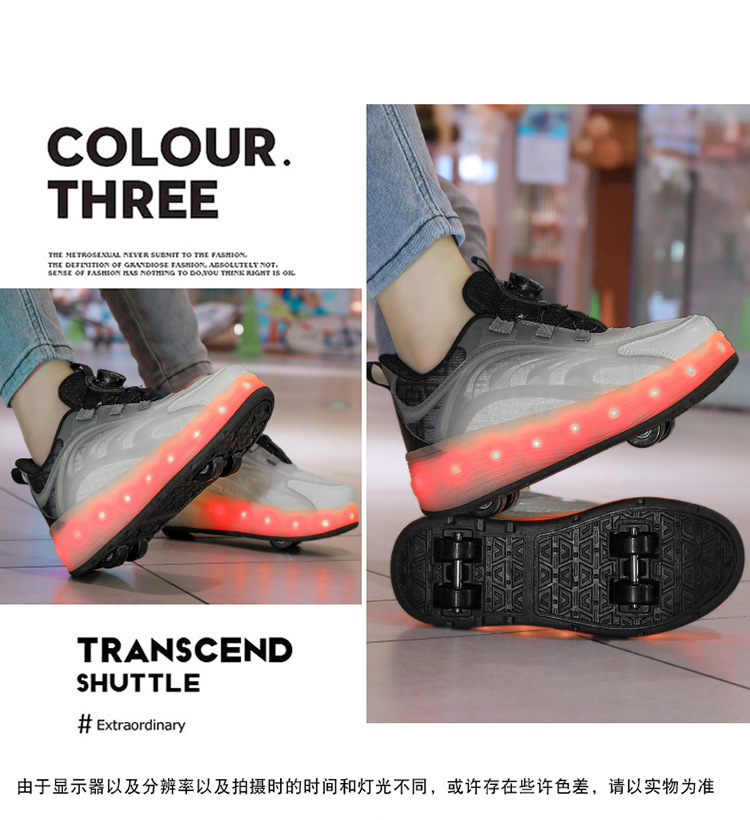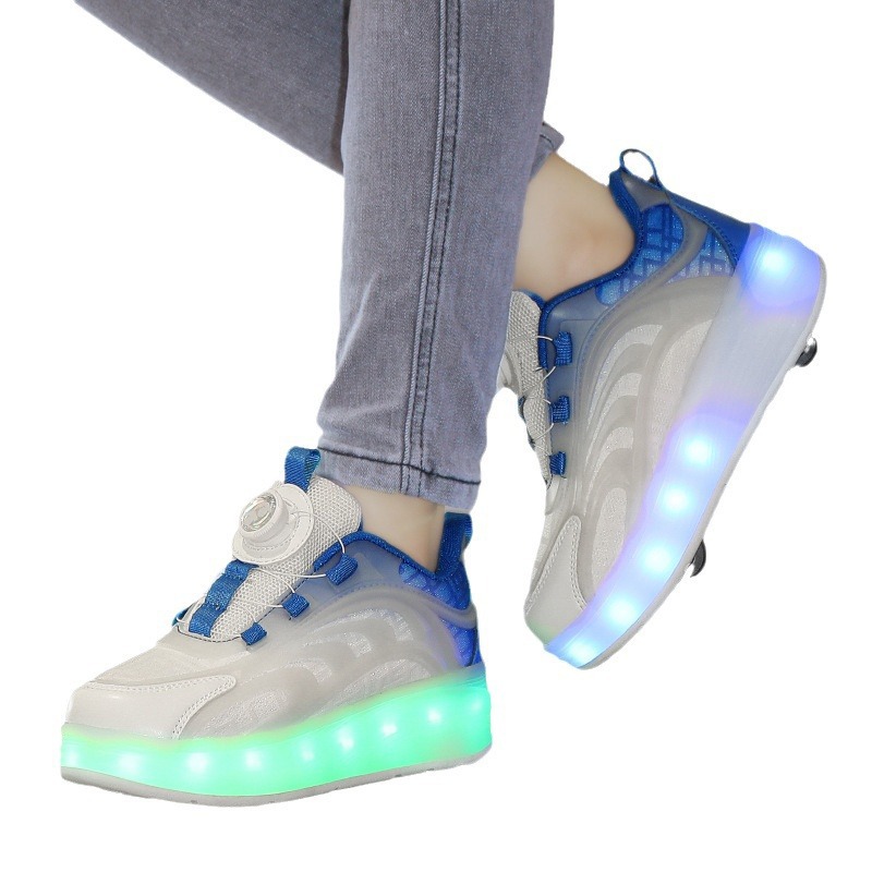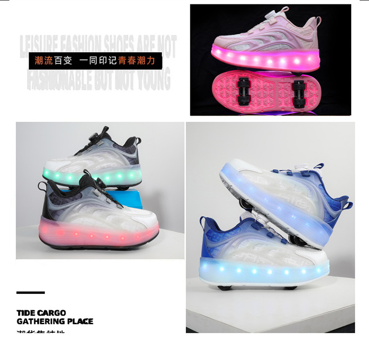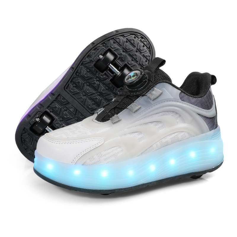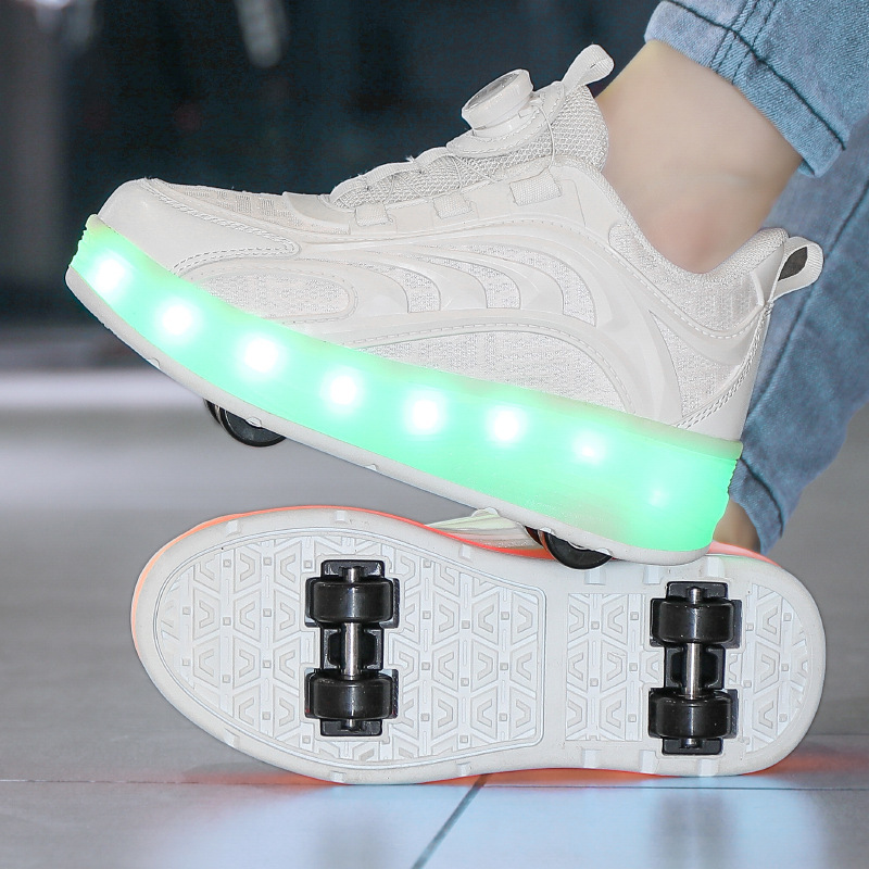 Детская обувь Heelys, четырехколесные съемные скрытые роликовые коньки, двухколесная зарядка, светящаяся обувь Internet Celebrity, двухколесная деформация, обувь Heelys