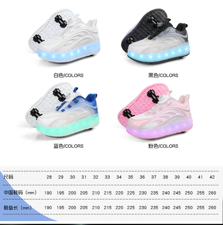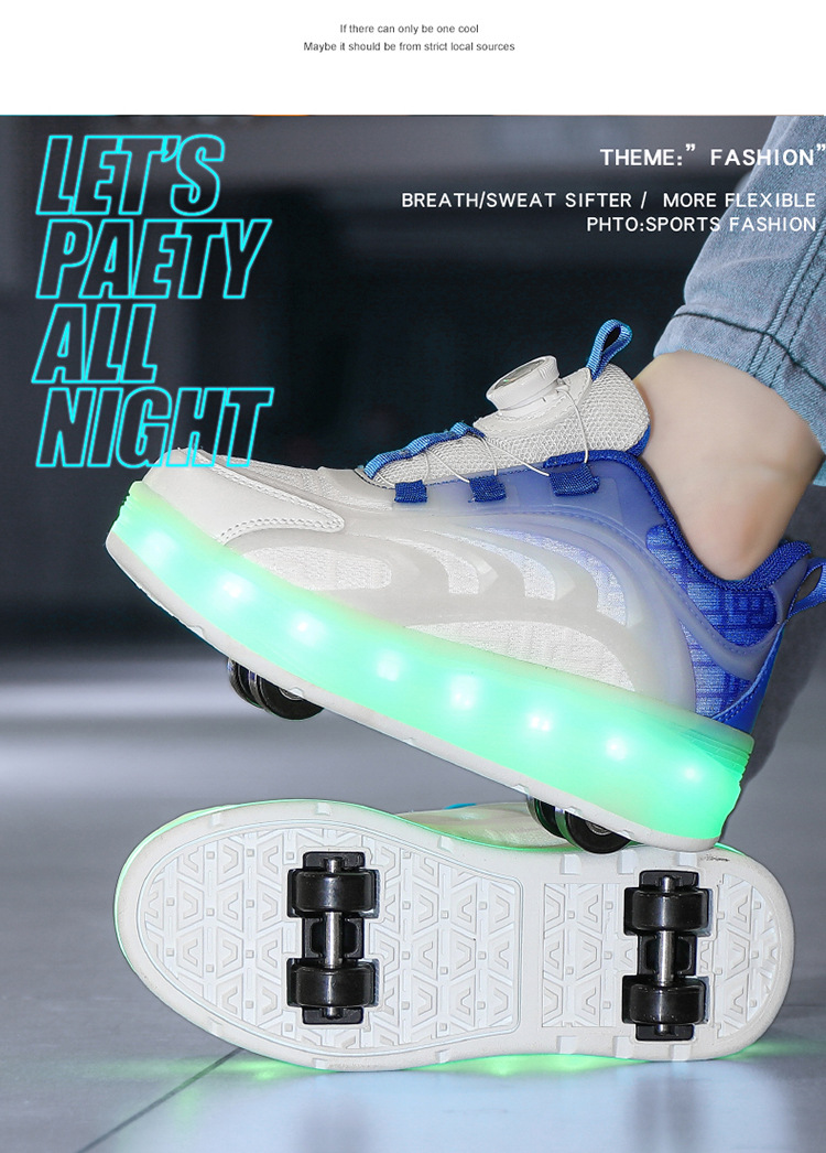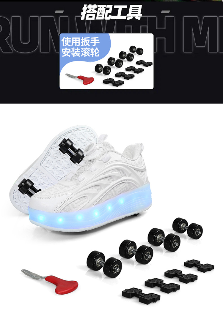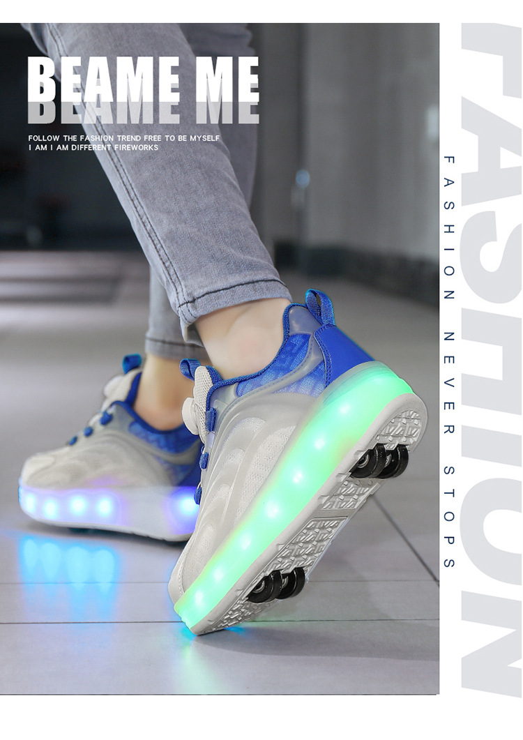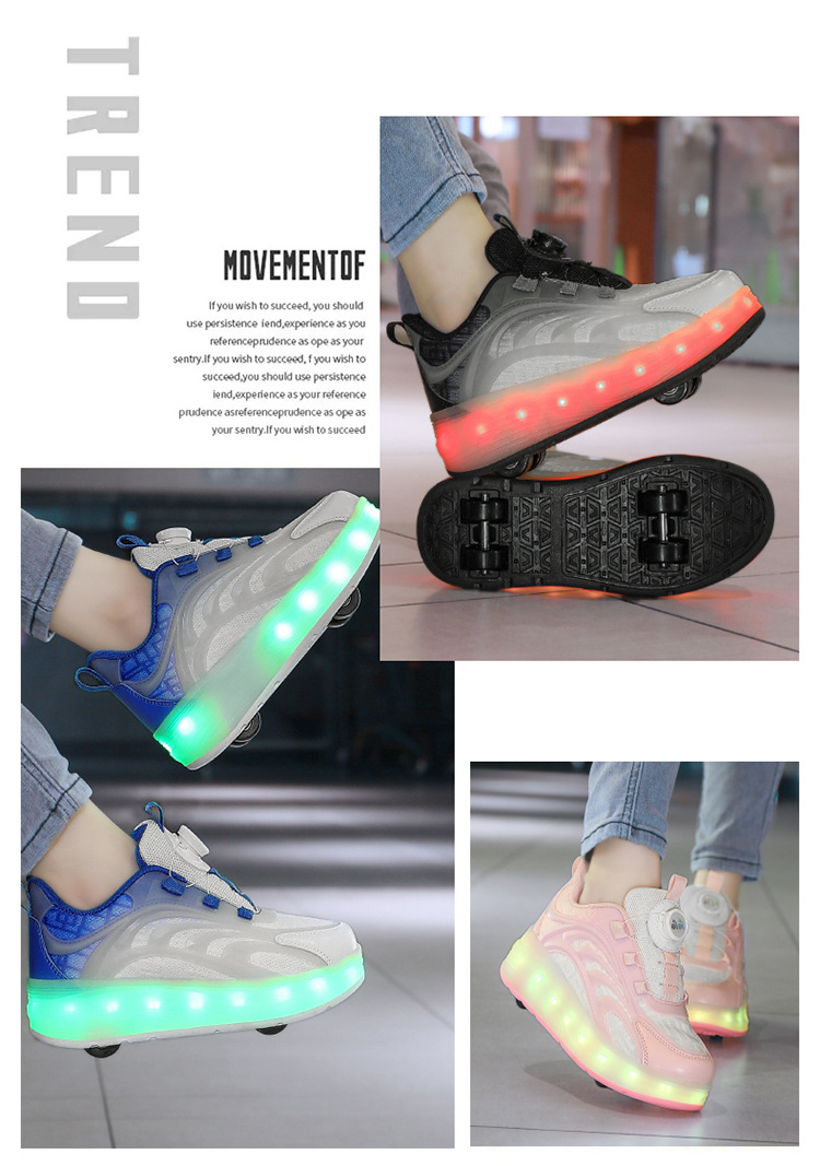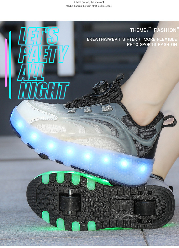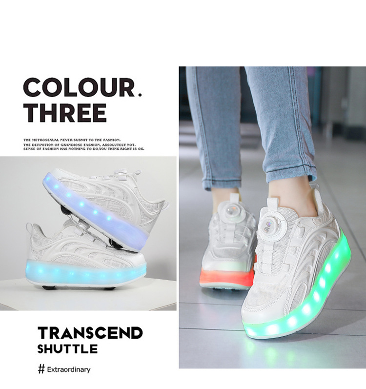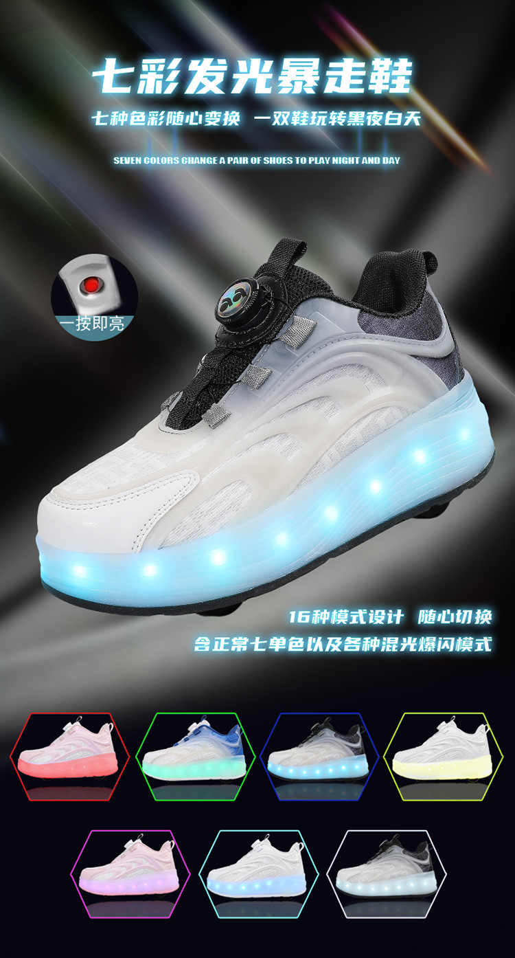 Детская обувь Heelys, четырехколесные съемные скрытые роликовые коньки, двухколесная зарядка, светящаяся обувь Internet Celebrity, двухколесная деформация, обувь Heelys