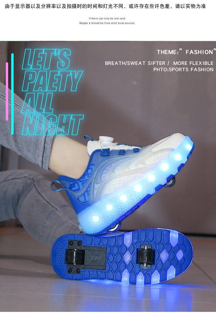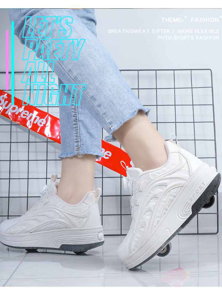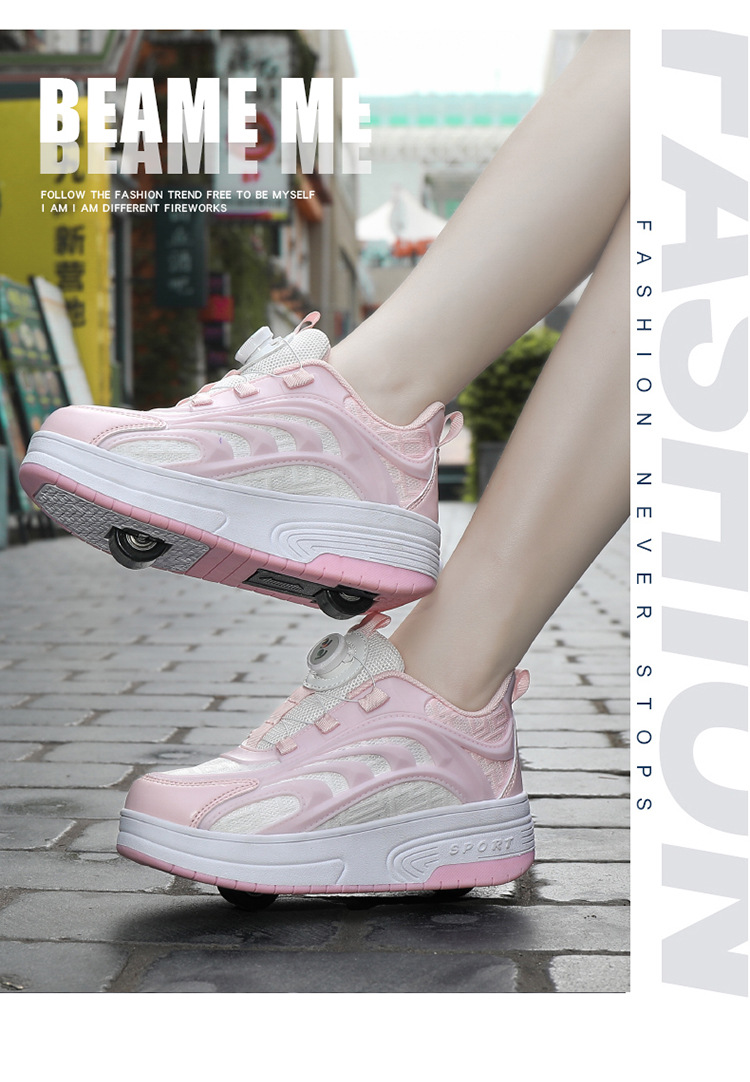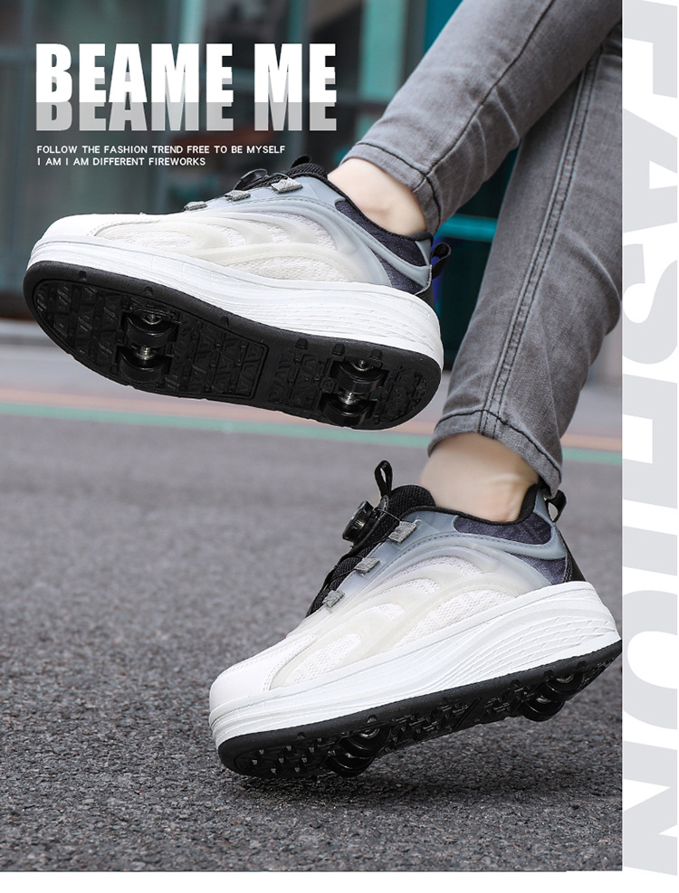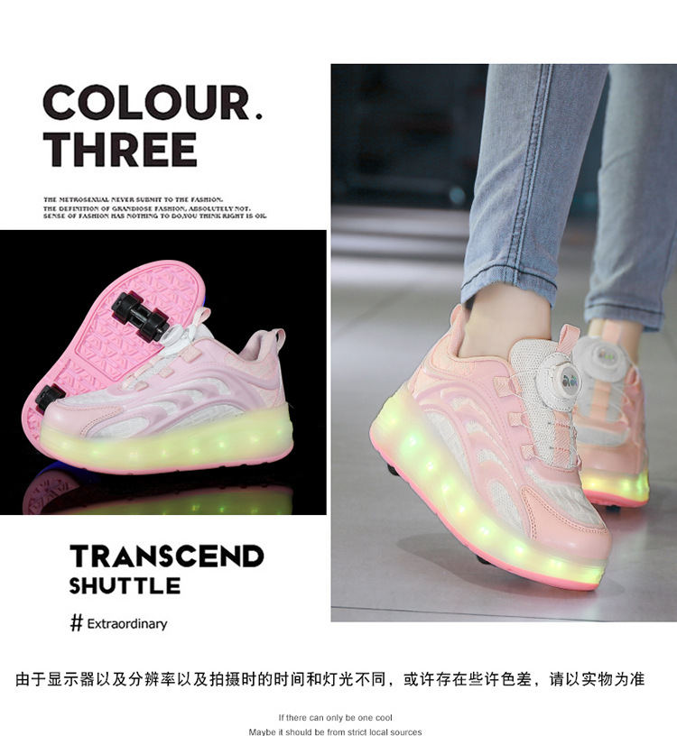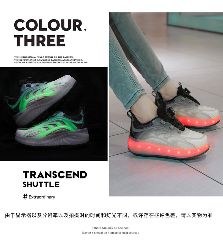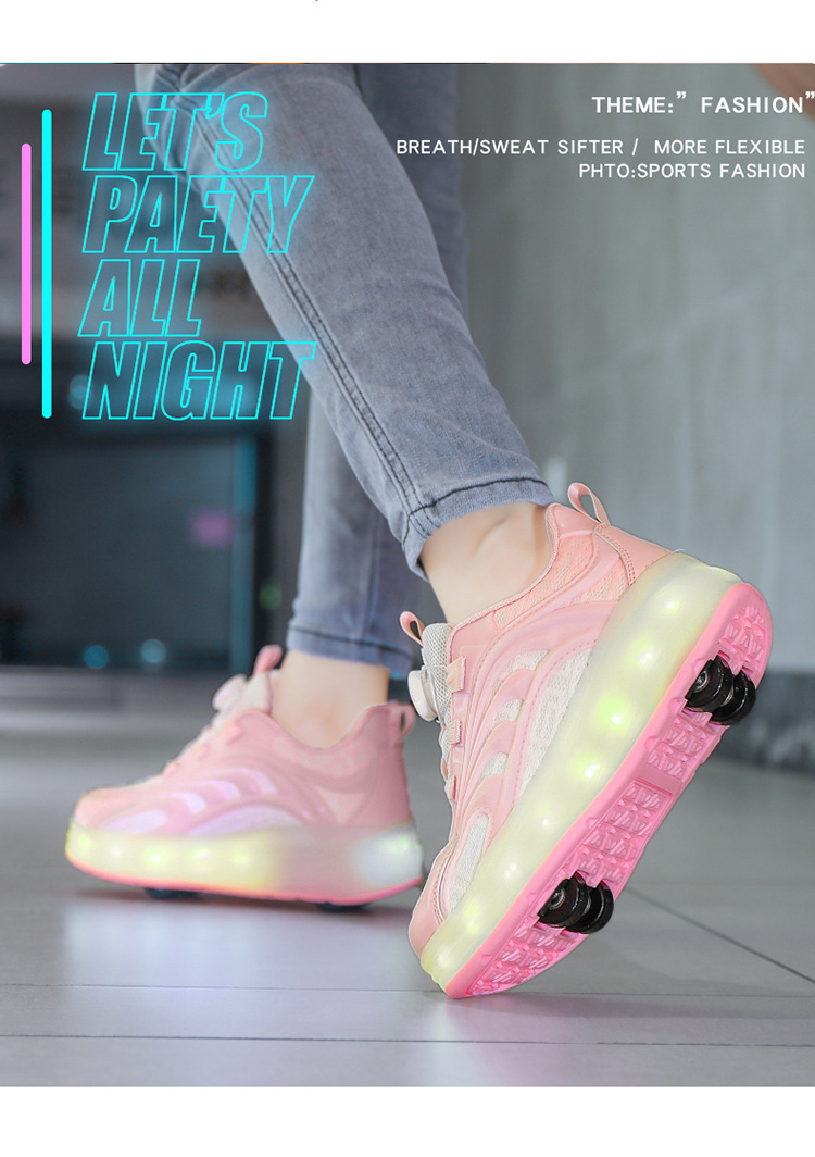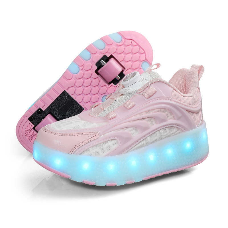 Детская обувь Heelys, четырехколесные съемные скрытые роликовые коньки, двухколесная зарядка, светящаяся обувь Internet Celebrity, двухколесная деформация, обувь Heelys