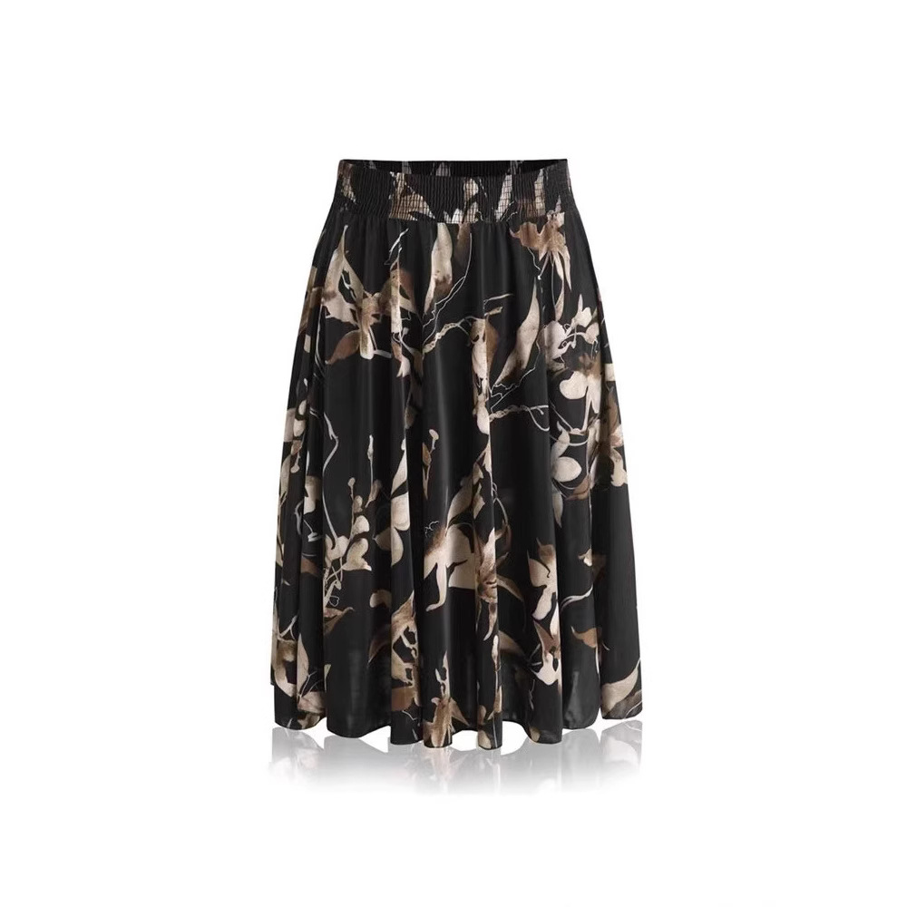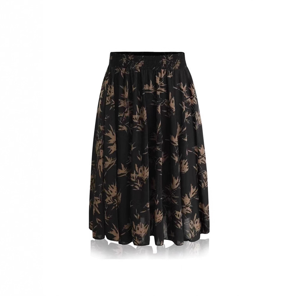 Летняя тонкая карманная юбка-миди для женщин среднего и пожилого возраста. 72cm универсальная плиссированная юбка с цветочным принтом для мам.