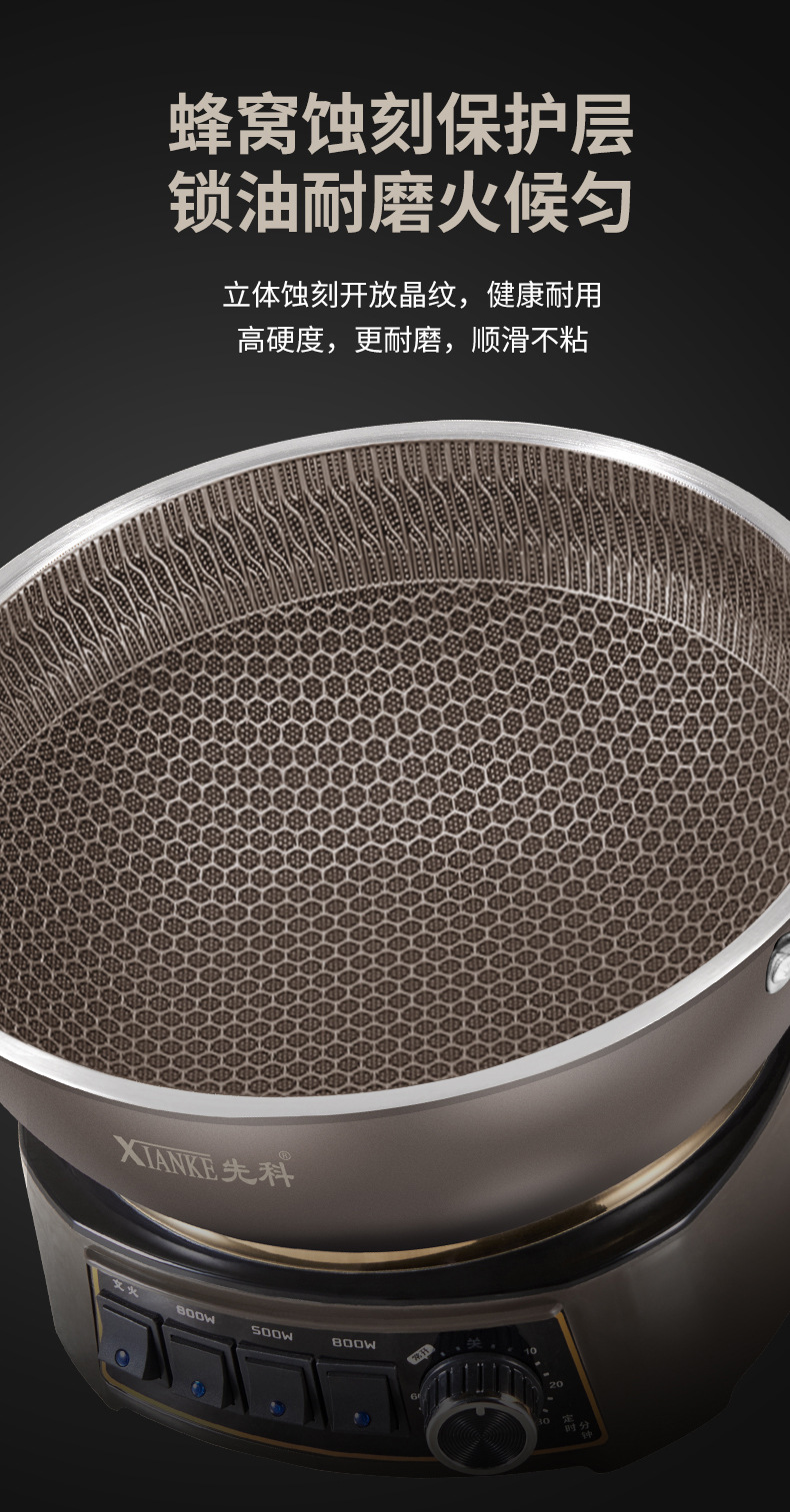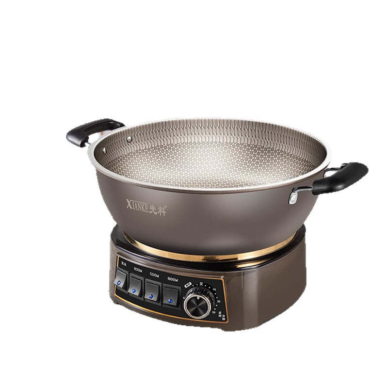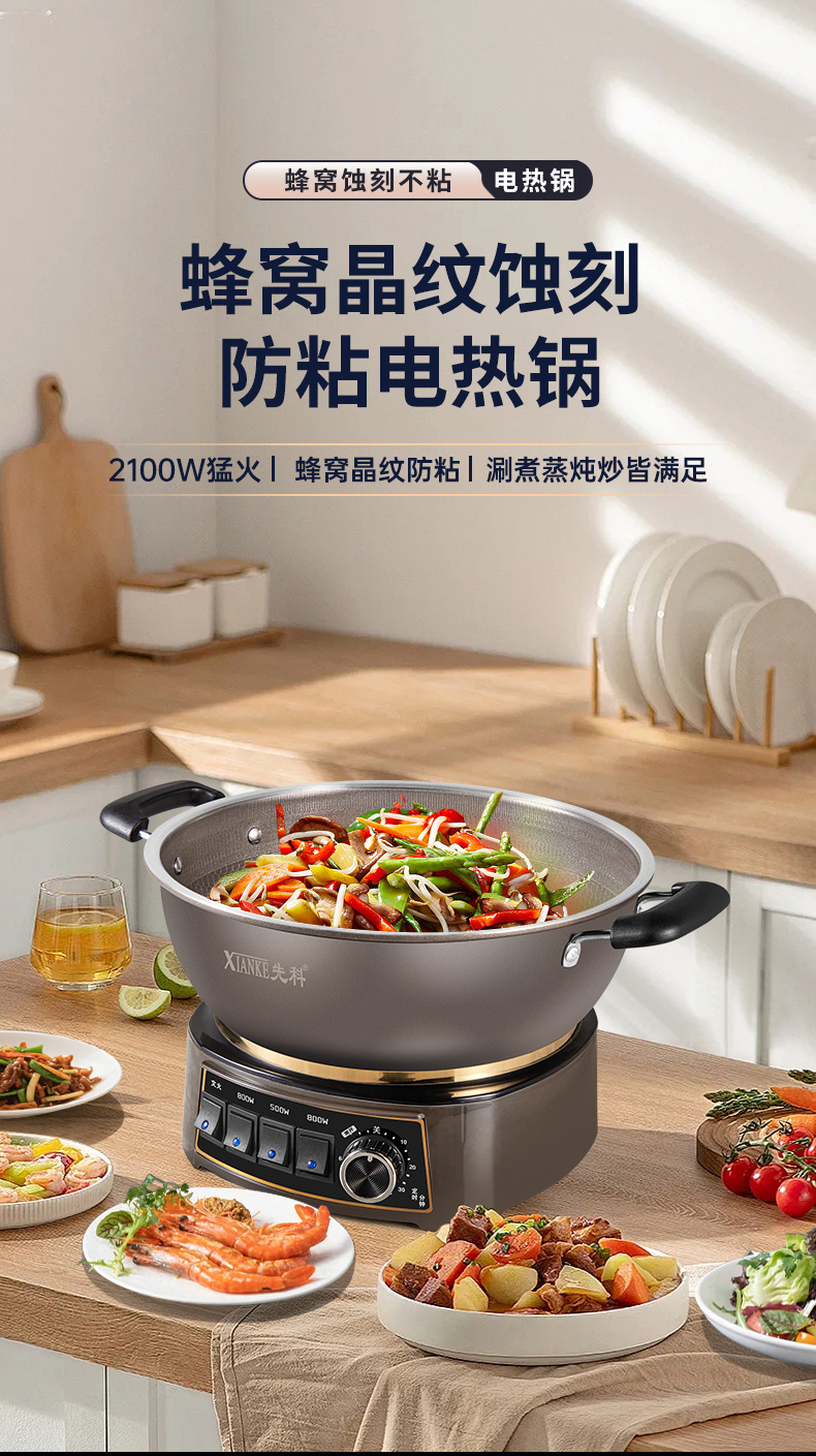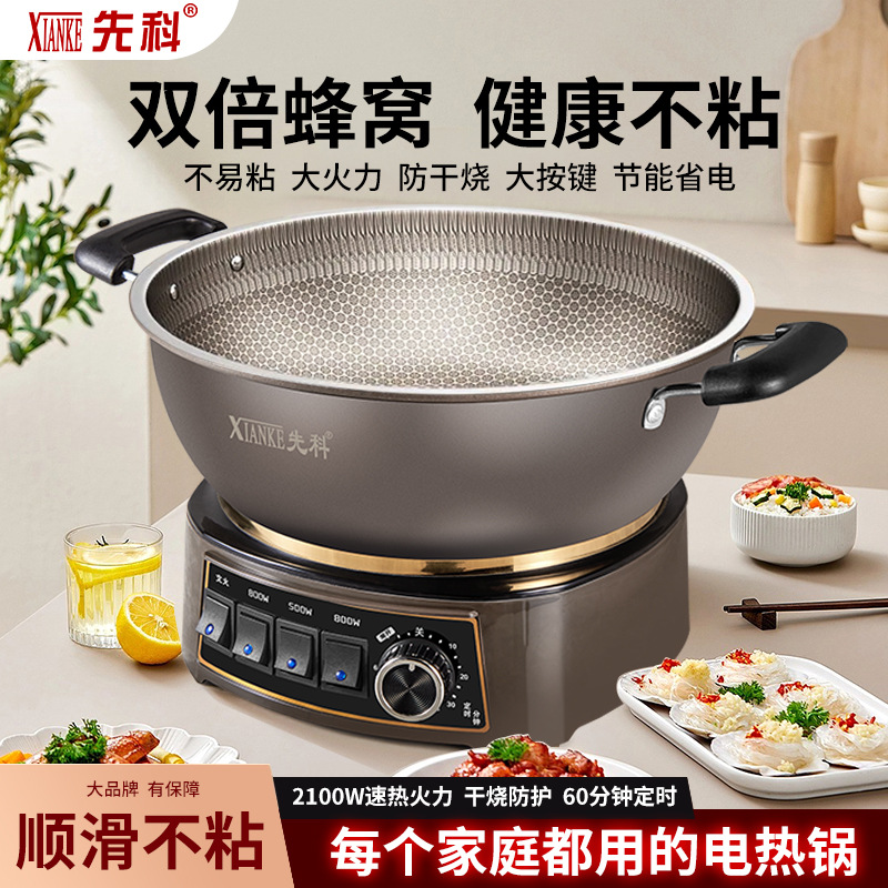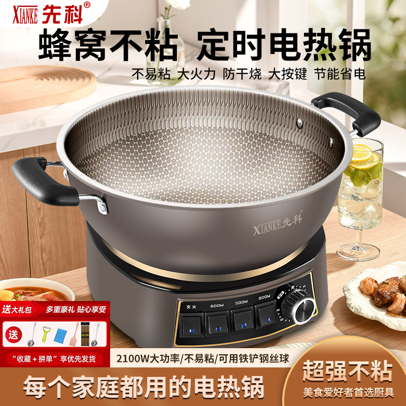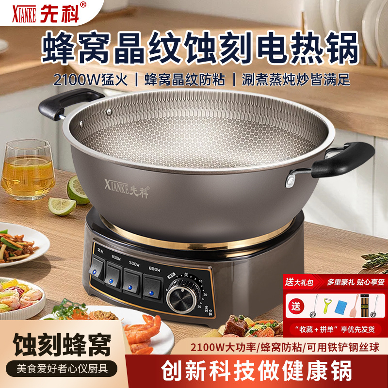 Электрическая кастрюля Xianke Titanium Honeycomb с антипригарным покрытием, многофункциональная бытовая электрическая сковорода для приготовления на пару, варки и жарки, энергосберегающая электрическая кастрюля.