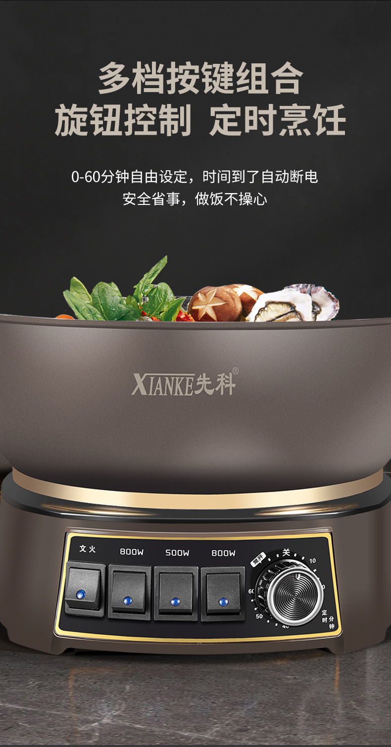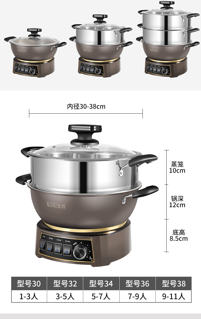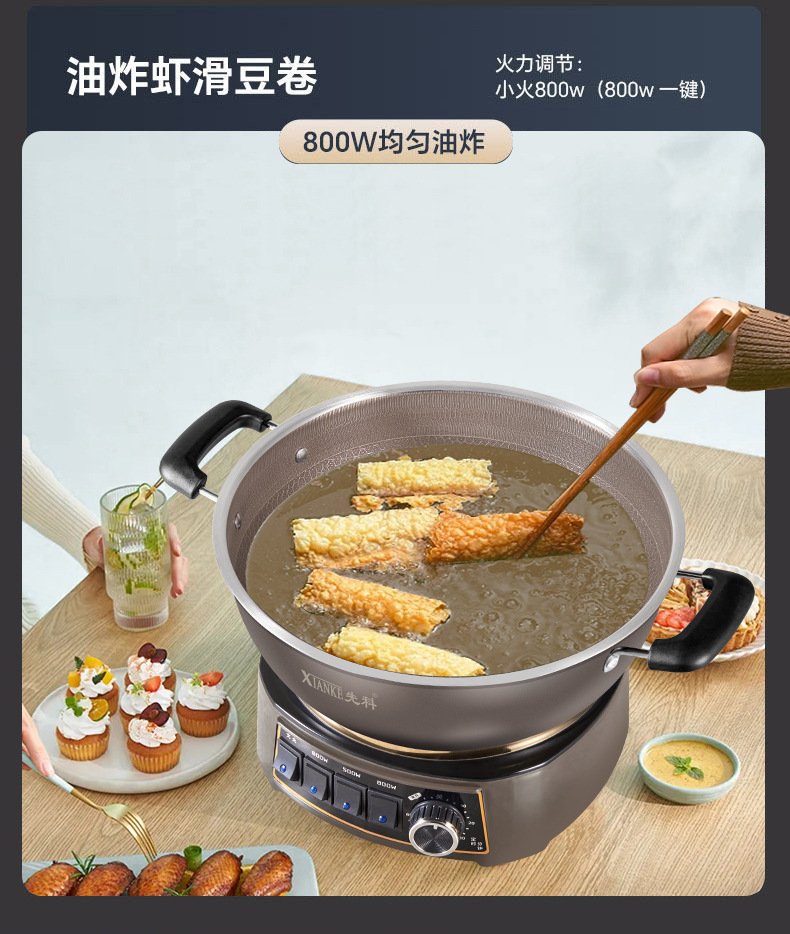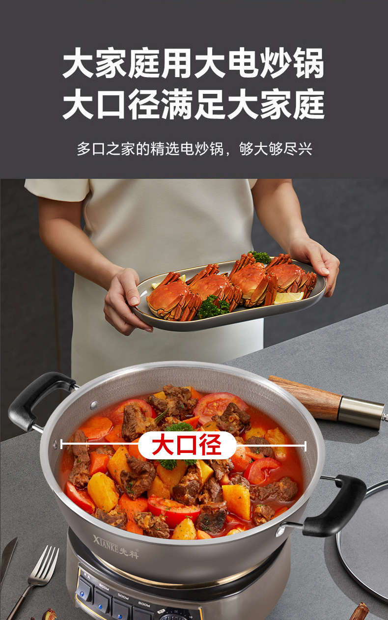 Электрическая кастрюля Xianke Titanium Honeycomb с антипригарным покрытием, многофункциональная бытовая электрическая сковорода для приготовления на пару, варки и жарки, энергосберегающая электрическая кастрюля.