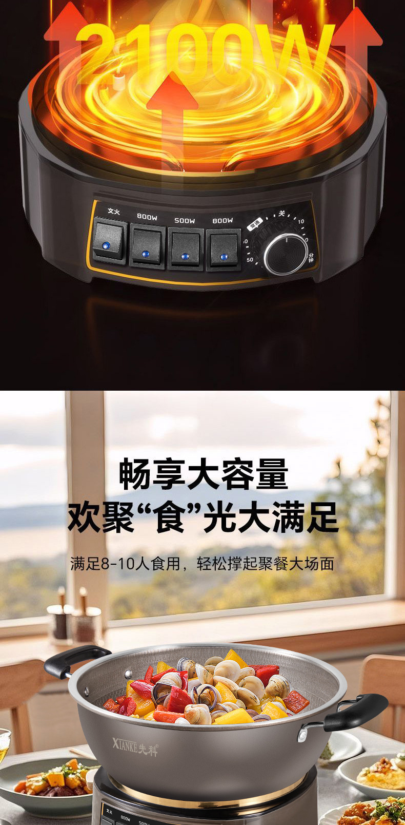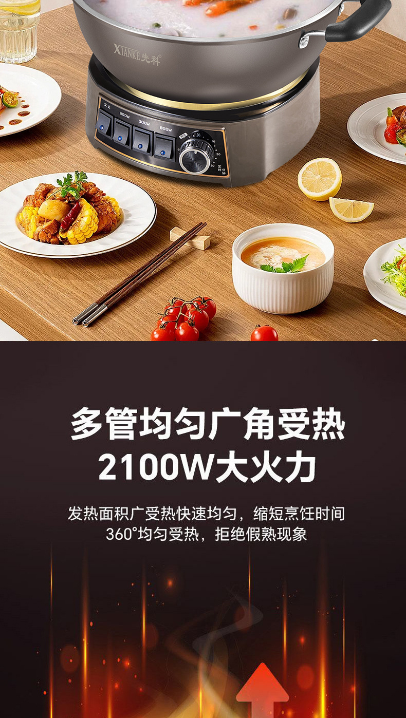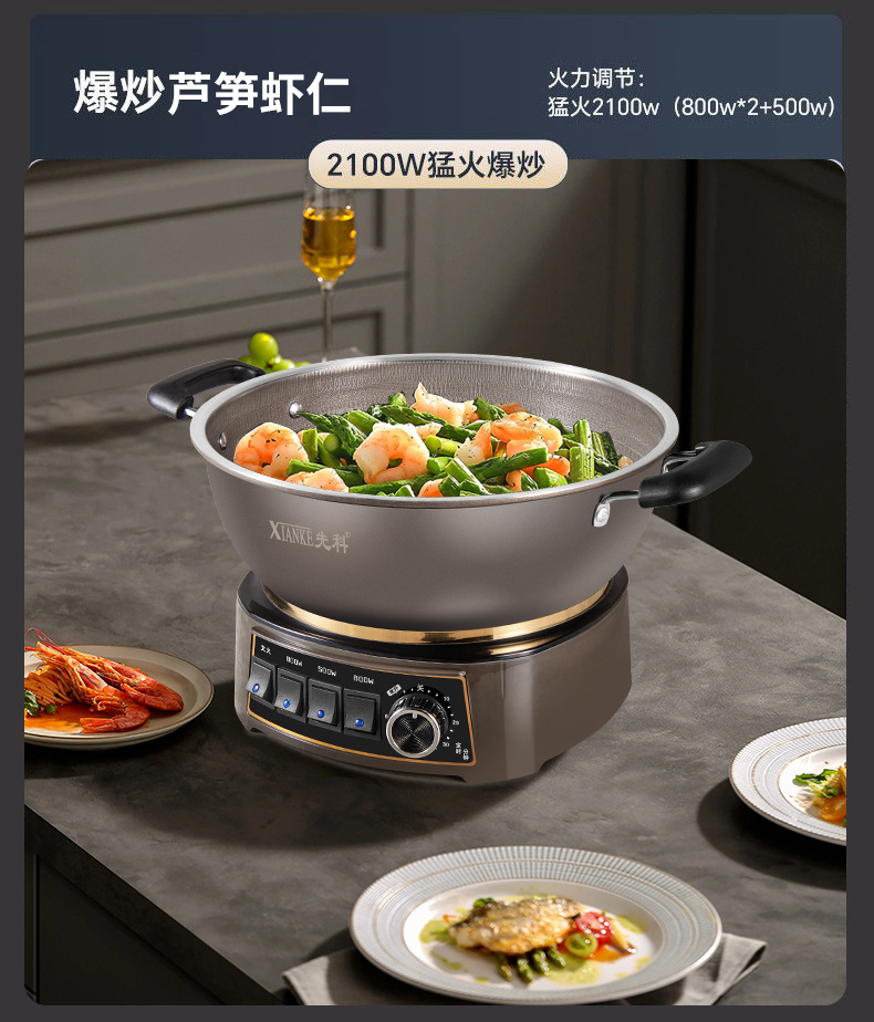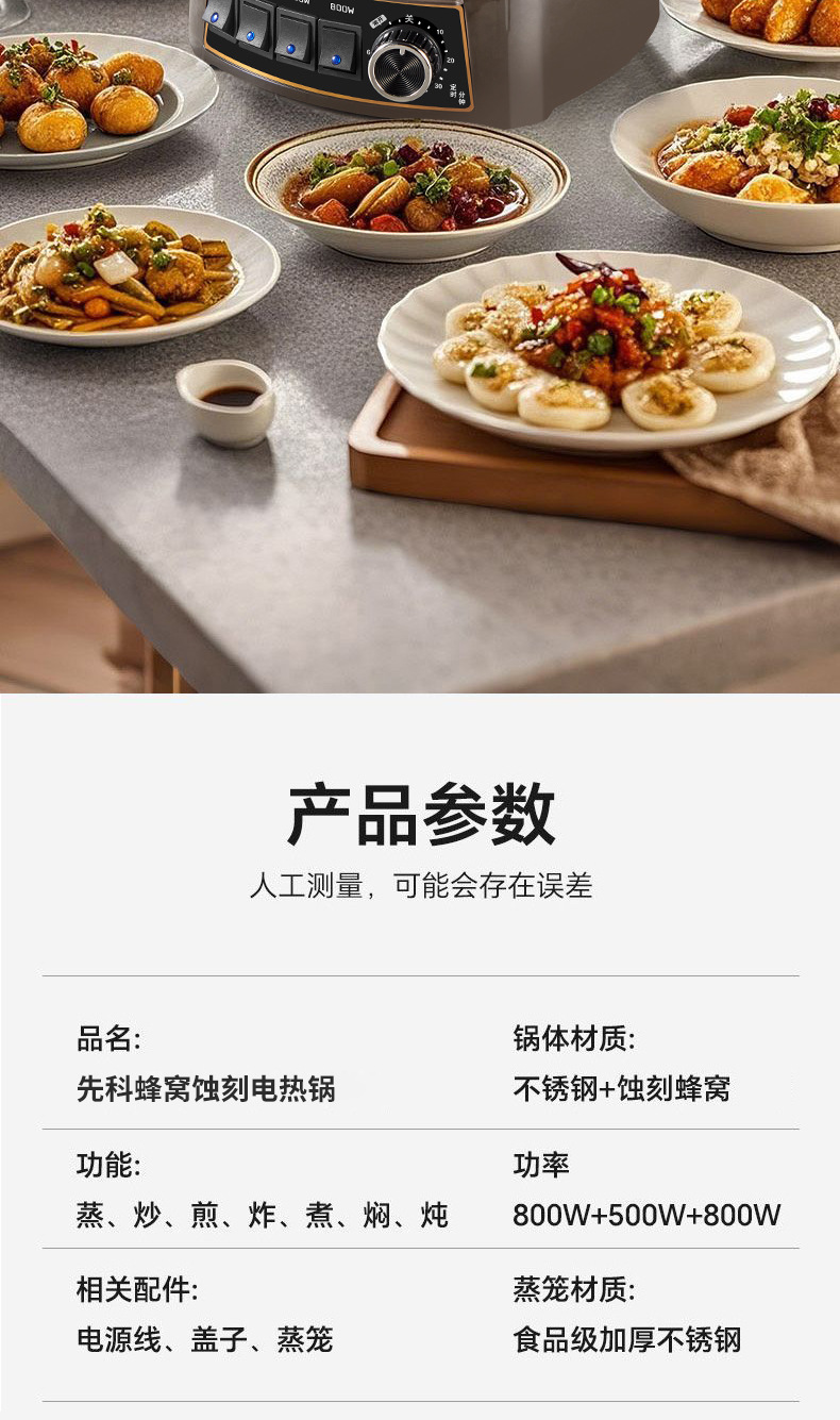 Электрическая кастрюля Xianke Titanium Honeycomb с антипригарным покрытием, многофункциональная бытовая электрическая сковорода для приготовления на пару, варки и жарки, энергосберегающая электрическая кастрюля.