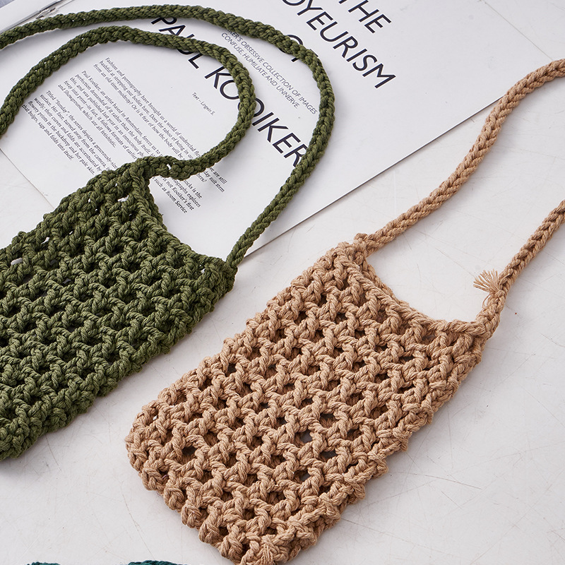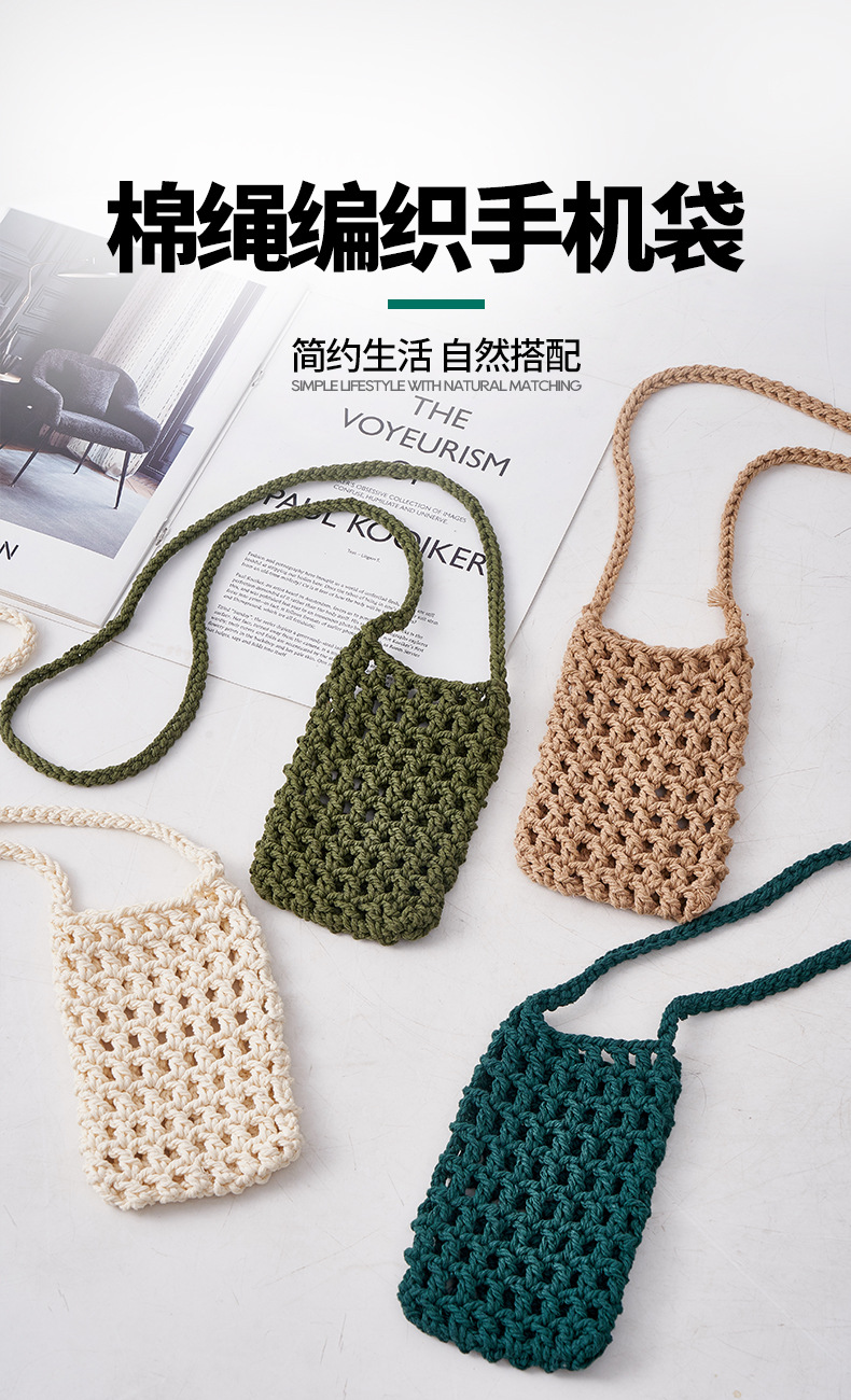 Новая женская сумка для мобильного телефона из хлопковой веревки, соткана вручную, мини-сумка через плечо, повседневная, простая и модная сумка через плечо.
