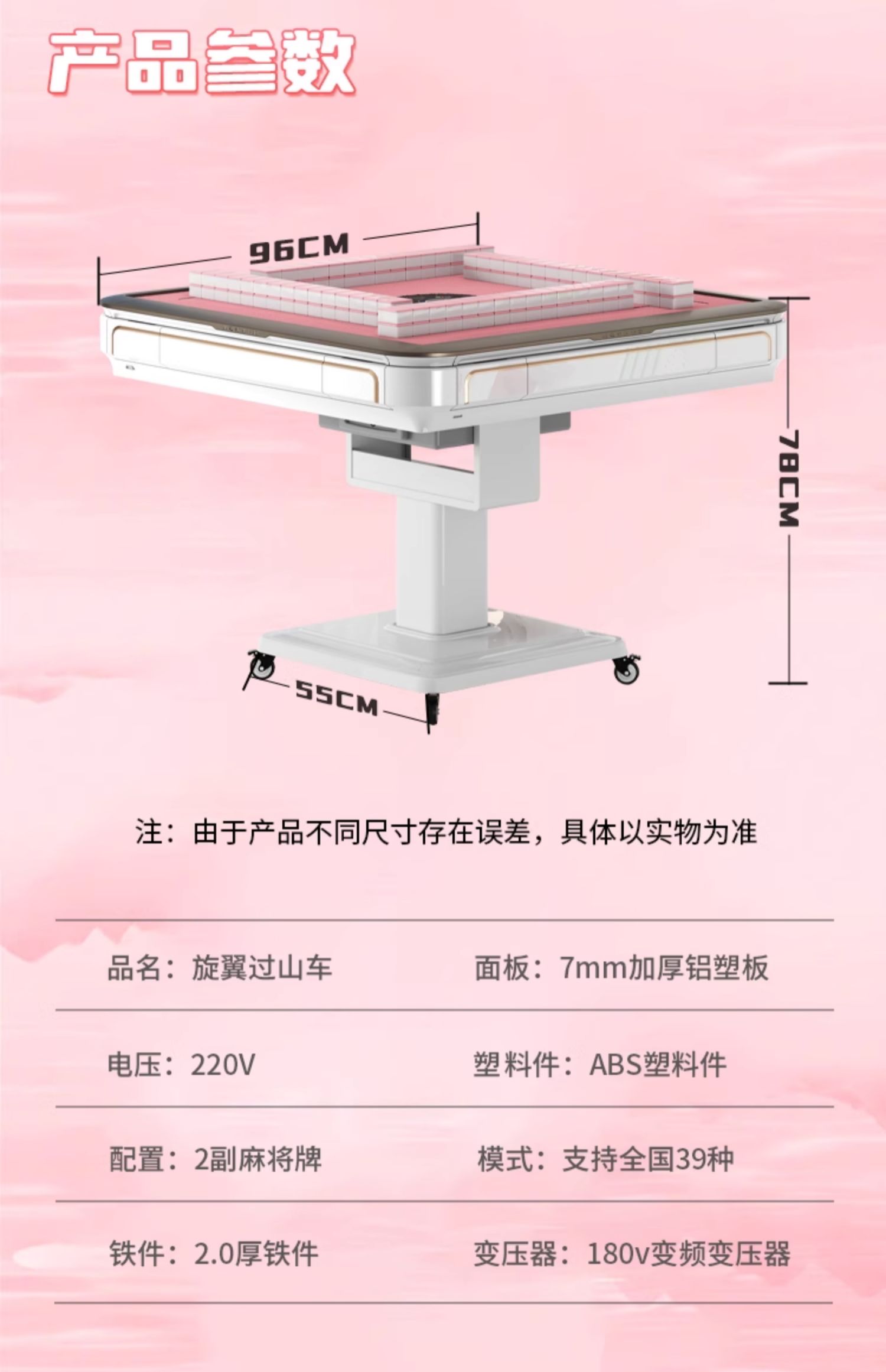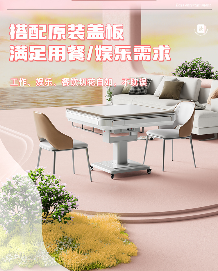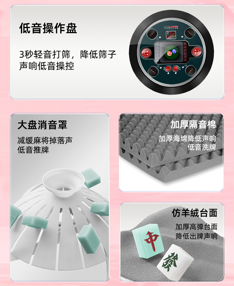 Полностью автоматическая розовая машина для маджонга Xuan'ao для домашнего использования, ультра-тихий обеденный стол на открытом воздухе, складная модель двойного назначения с подогревом стула
