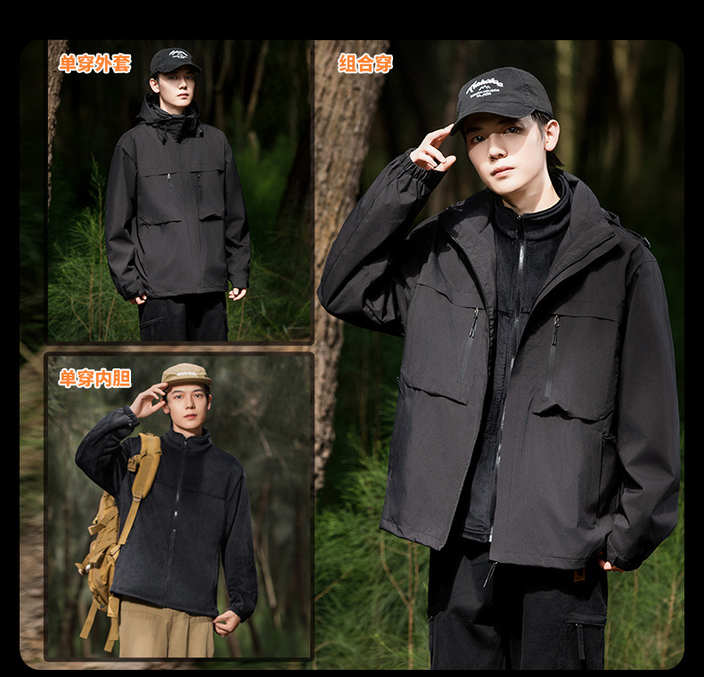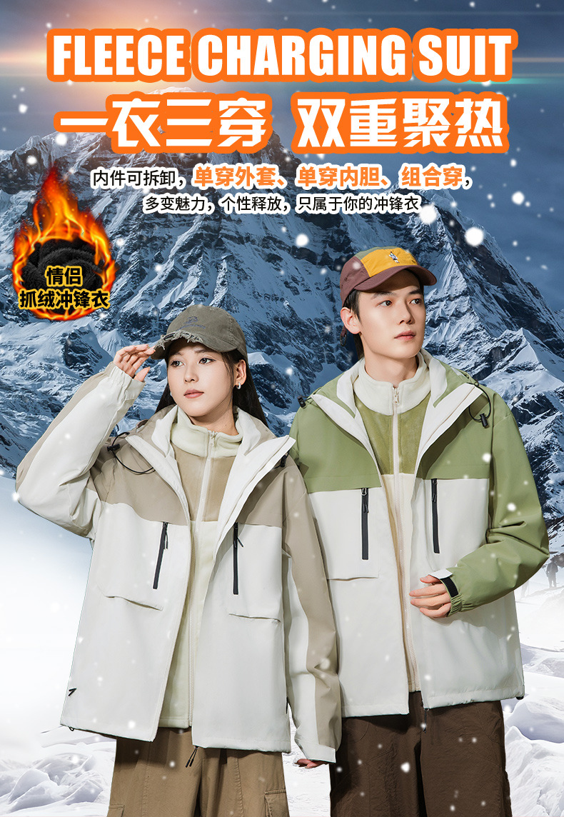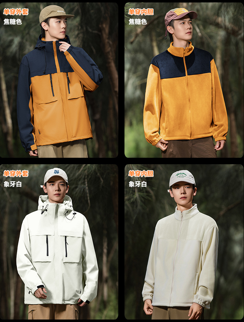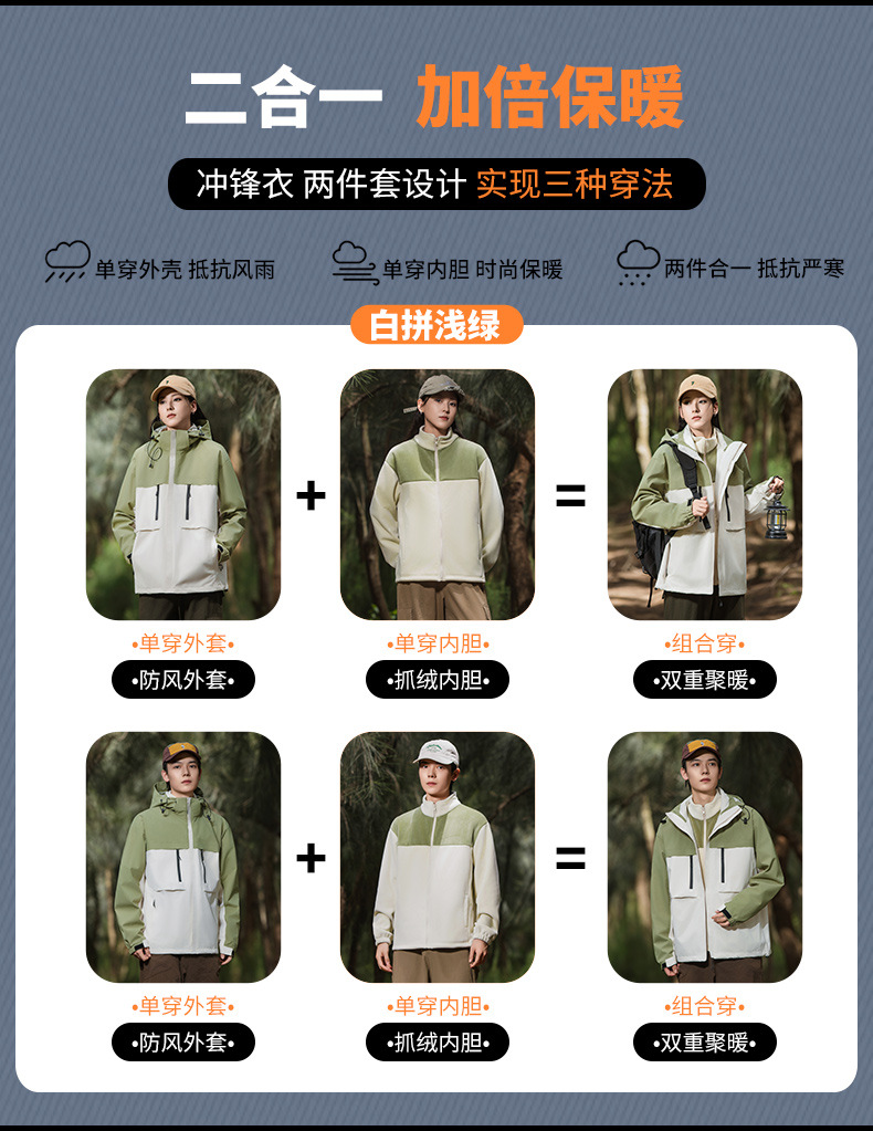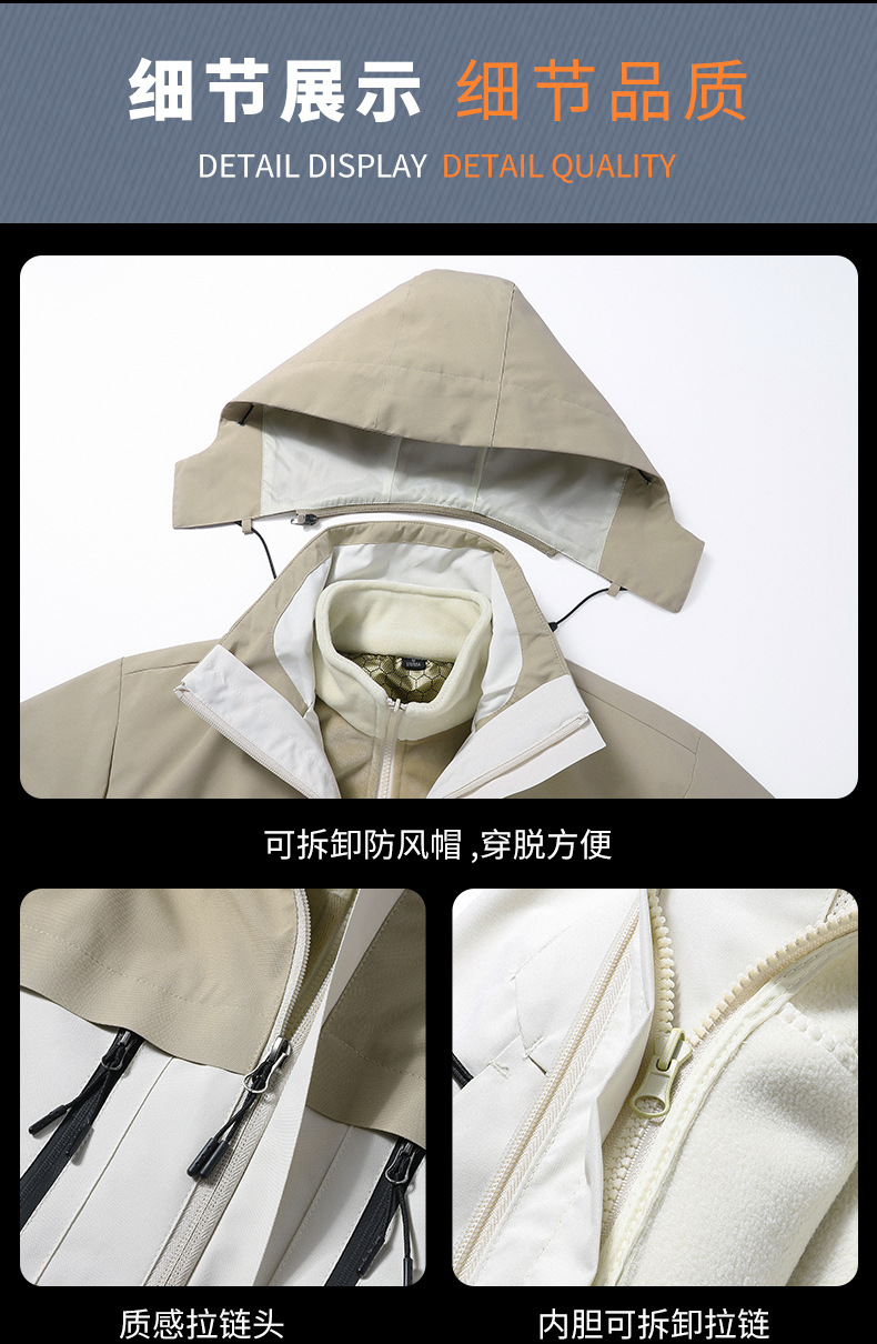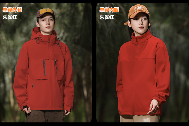 Однотонная куртка с логотипом по индивидуальному заказу, уличная ветрозащитная куртка «три в одном» для мужчин и женщин, утолщенная рабочая одежда с индивидуальным принтом.