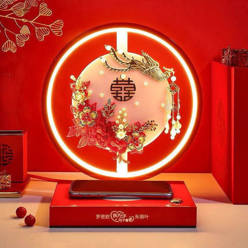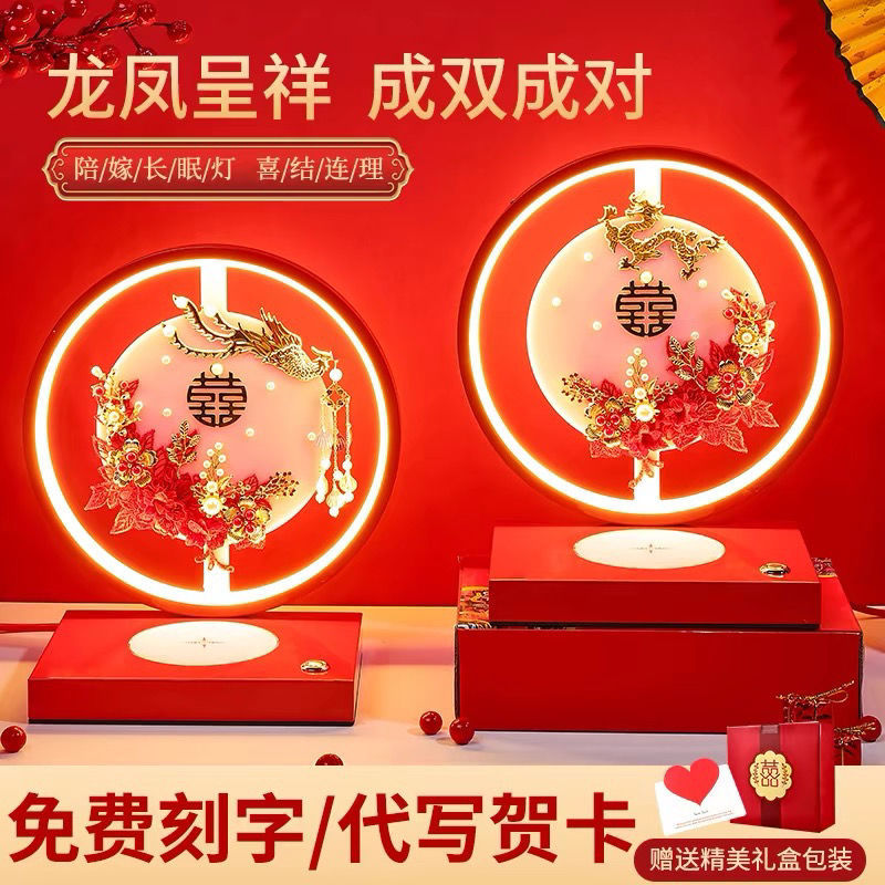 Свадебная настольная лампа, прикроватная лампа для спальни, лампа для свадебной комнаты, свадебная красная пара вечных ламп, свадебный подарок для молодоженов