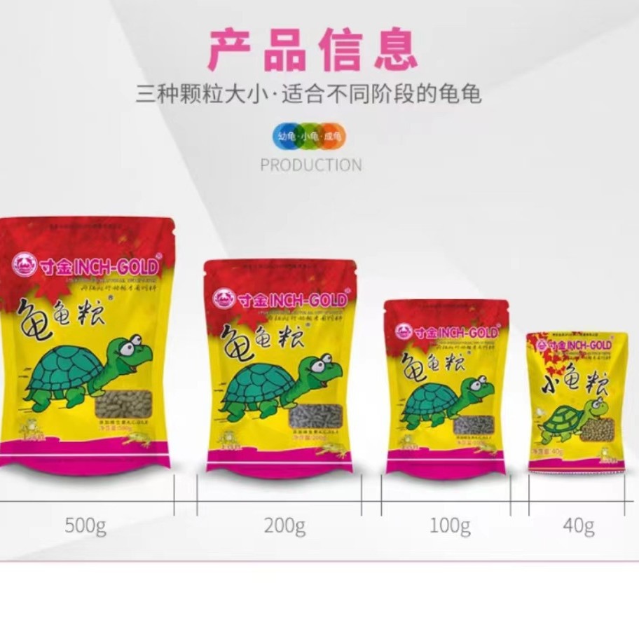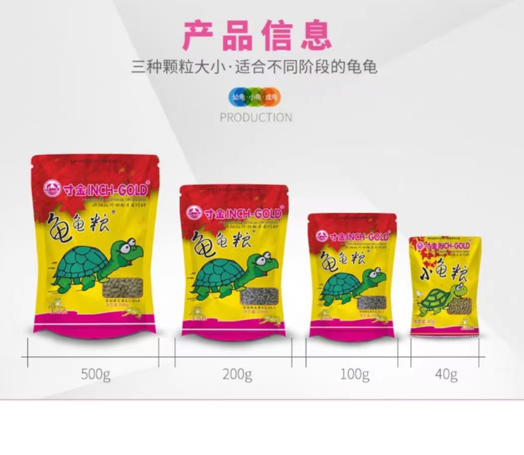 16 г [Корм для выращивания черепах]; 40 г [мелкие частицы] [маленькие черепашки размером до 5 см]; 100 г [средние гранулы] [маленькие черепашки размером 5-9 см]; 200 г [средние гранулы] [маленькие черепашки размером 5-9 см]; 500 г [крупные частицы] [черепахи размером более 9 см]