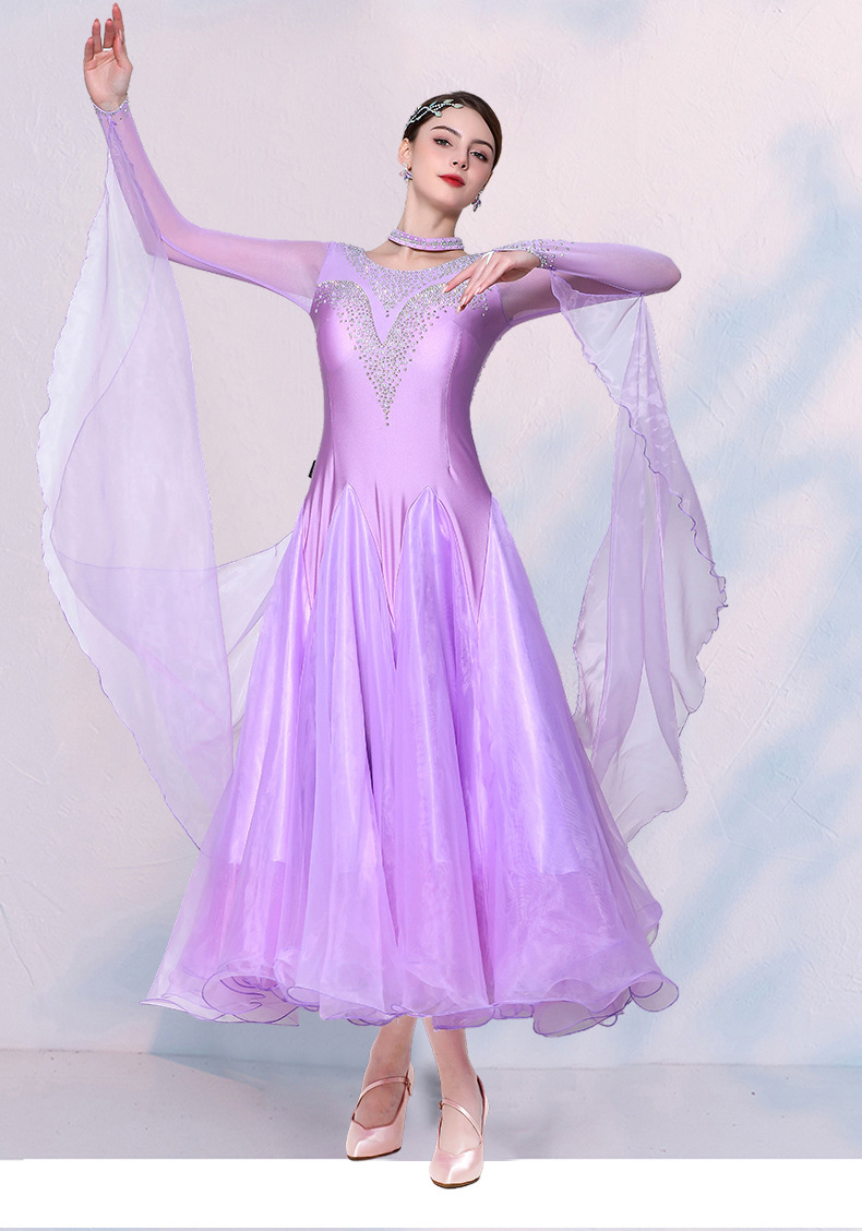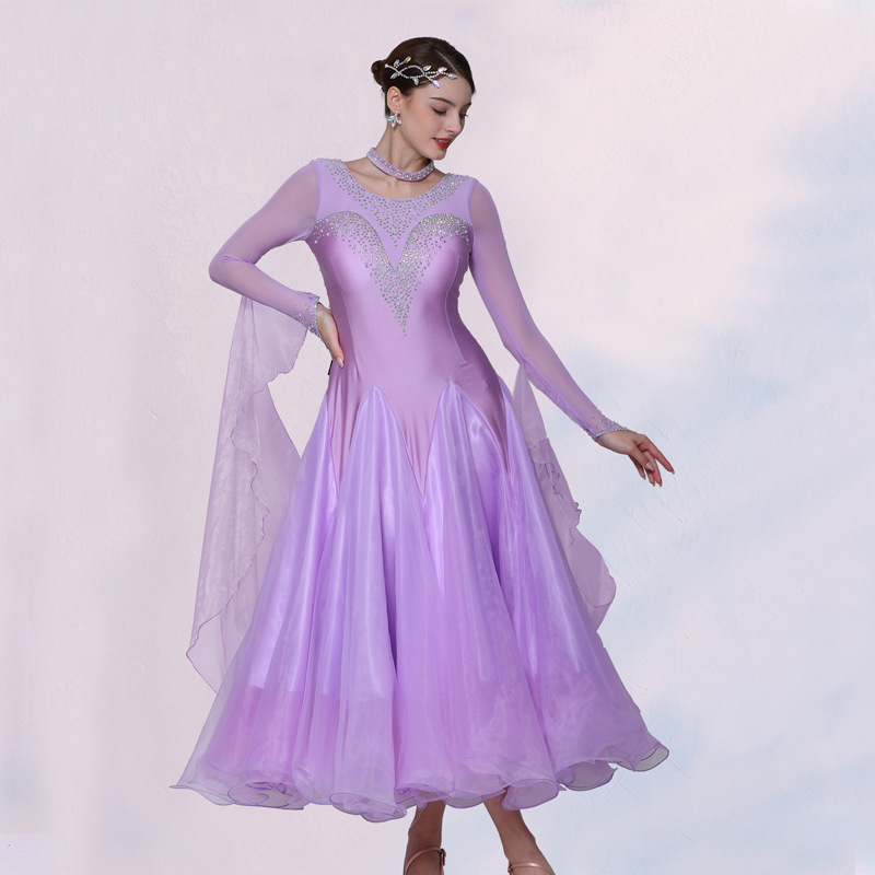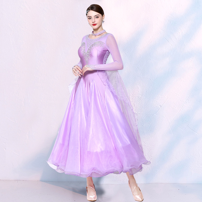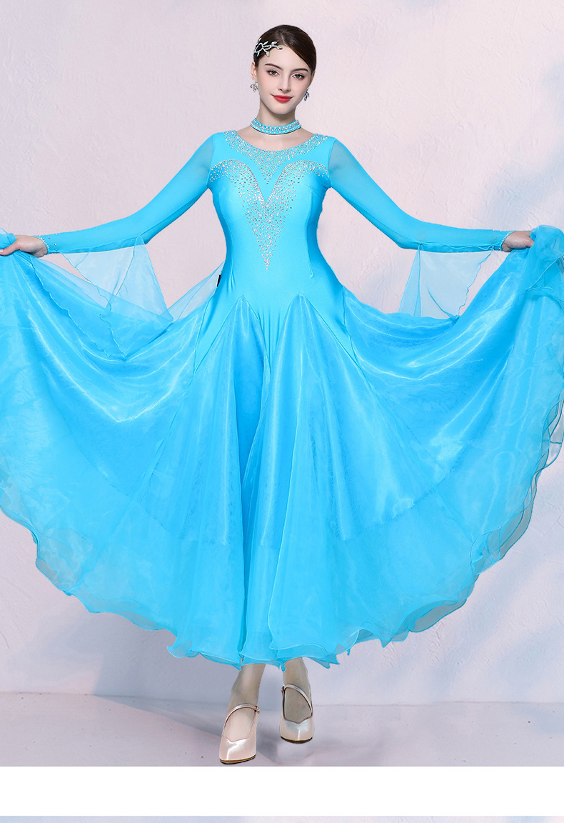 Изящная танцовщица, юбка для современного танца, одежда для выступлений в бальных танцах, одежда для соревнований по бальным танцам, одежда для выступлений в вальсе с жемчугом и бриллиантами