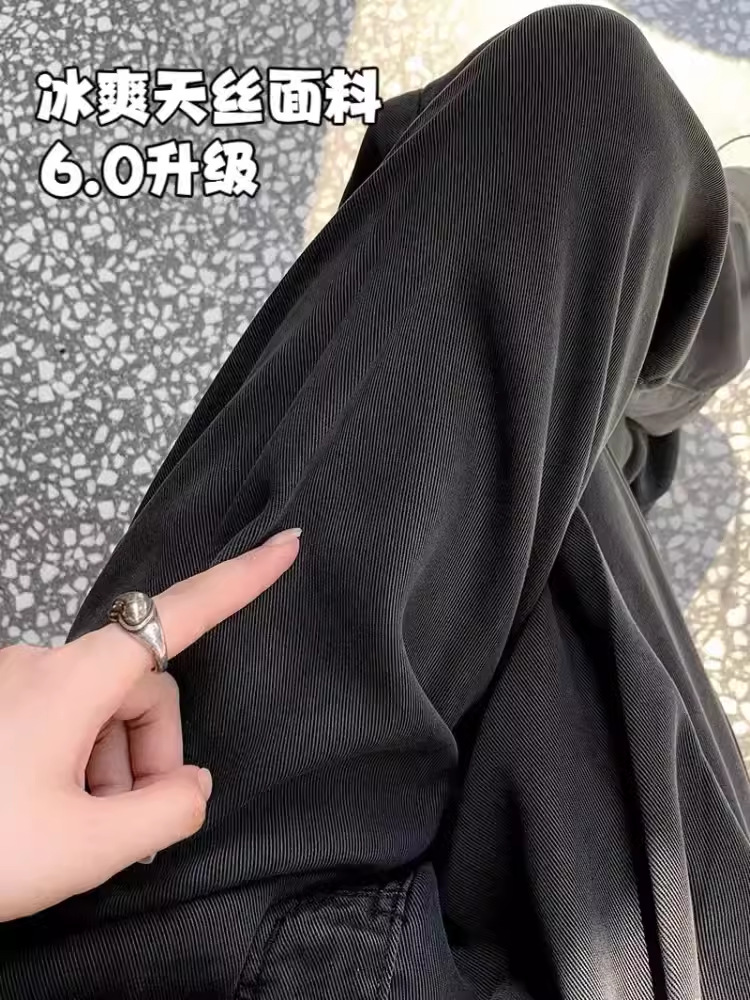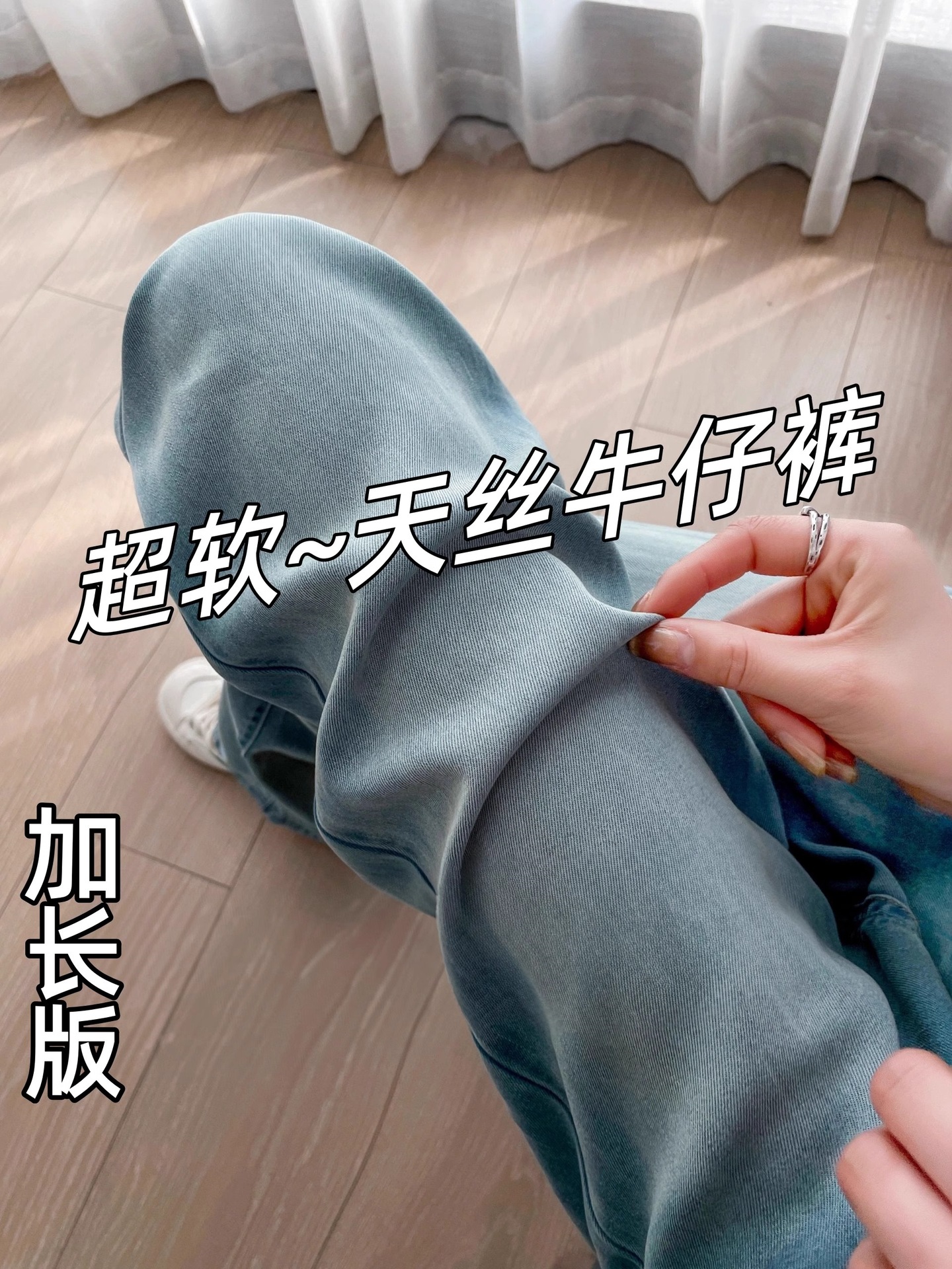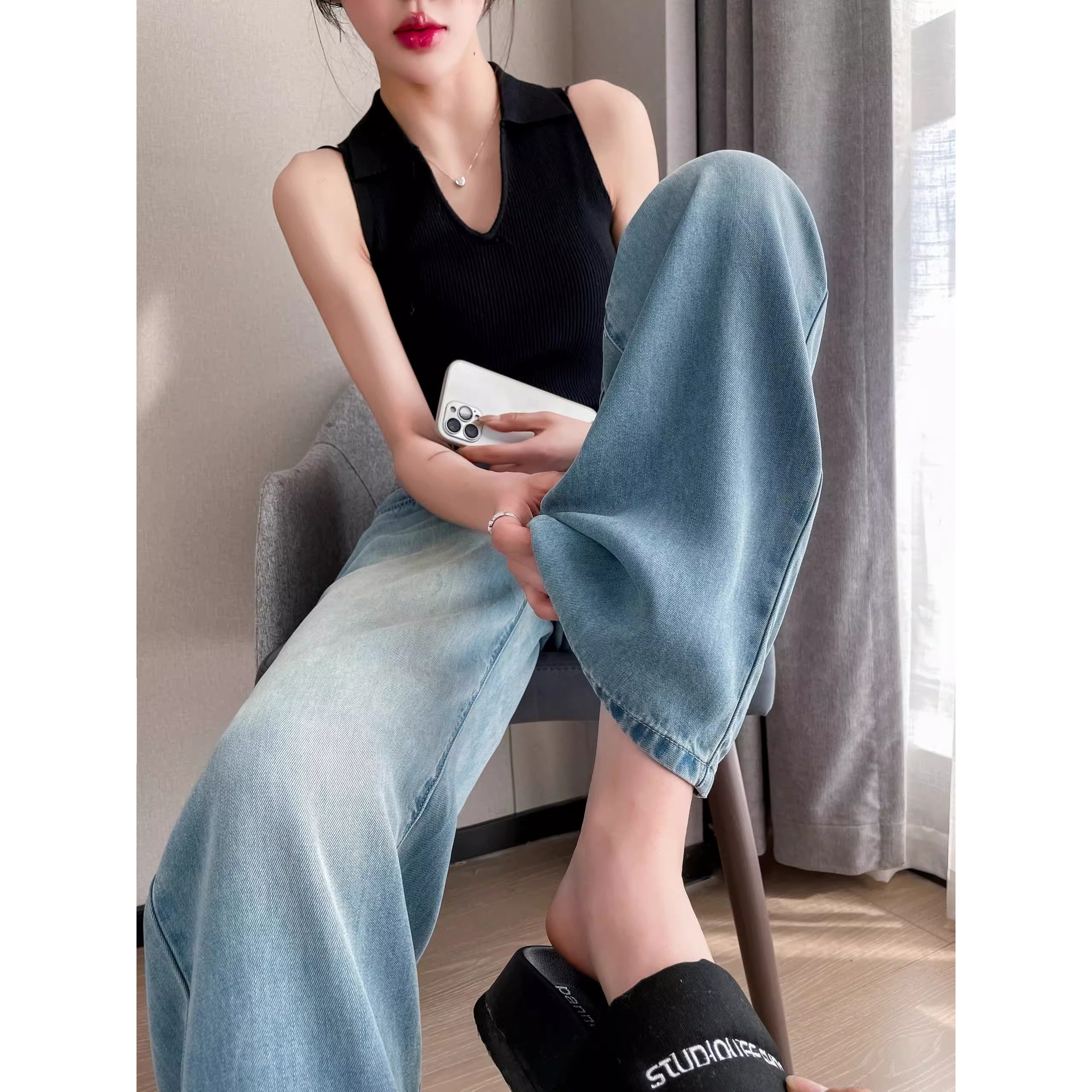 Светло-голубые женские джинсы из тенселя, летний тонкий стиль, фигура груши больших размеров, завышенная талия, свободная драпировка, широкие брюки из ледяного шелка.