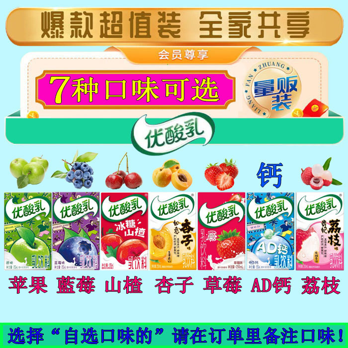 Оригинальный вкус 250мл*1 коробка; Аромат клубники 250мл*1 коробка; Аромат черники 250мл*1 коробка; AD кальций 250мл*1 коробка; Абрикосовый вкус 250мл*1 коробка; Смешанный вкус 250мл*1 коробка
