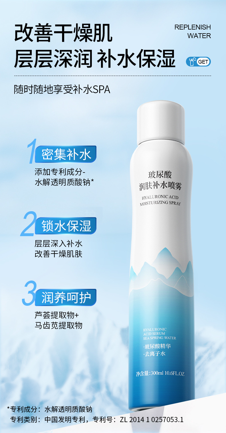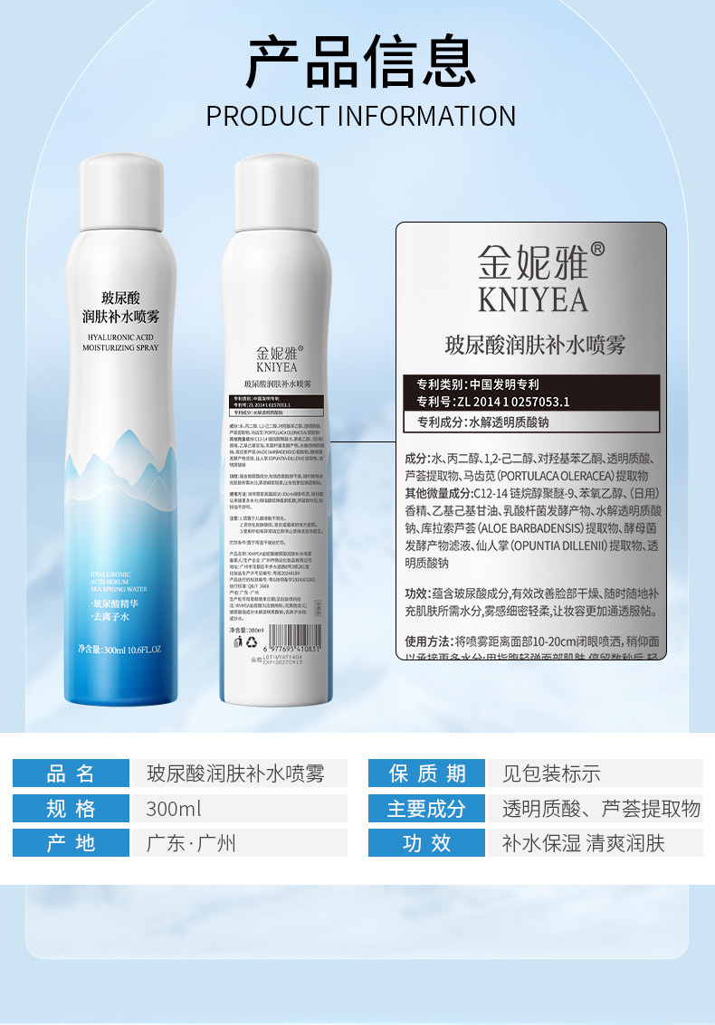 Производитель оптом спрея-тоника с гиалуроновой кислотой Jinnia 300 мл, большой емкости, увлажняющего и питательного