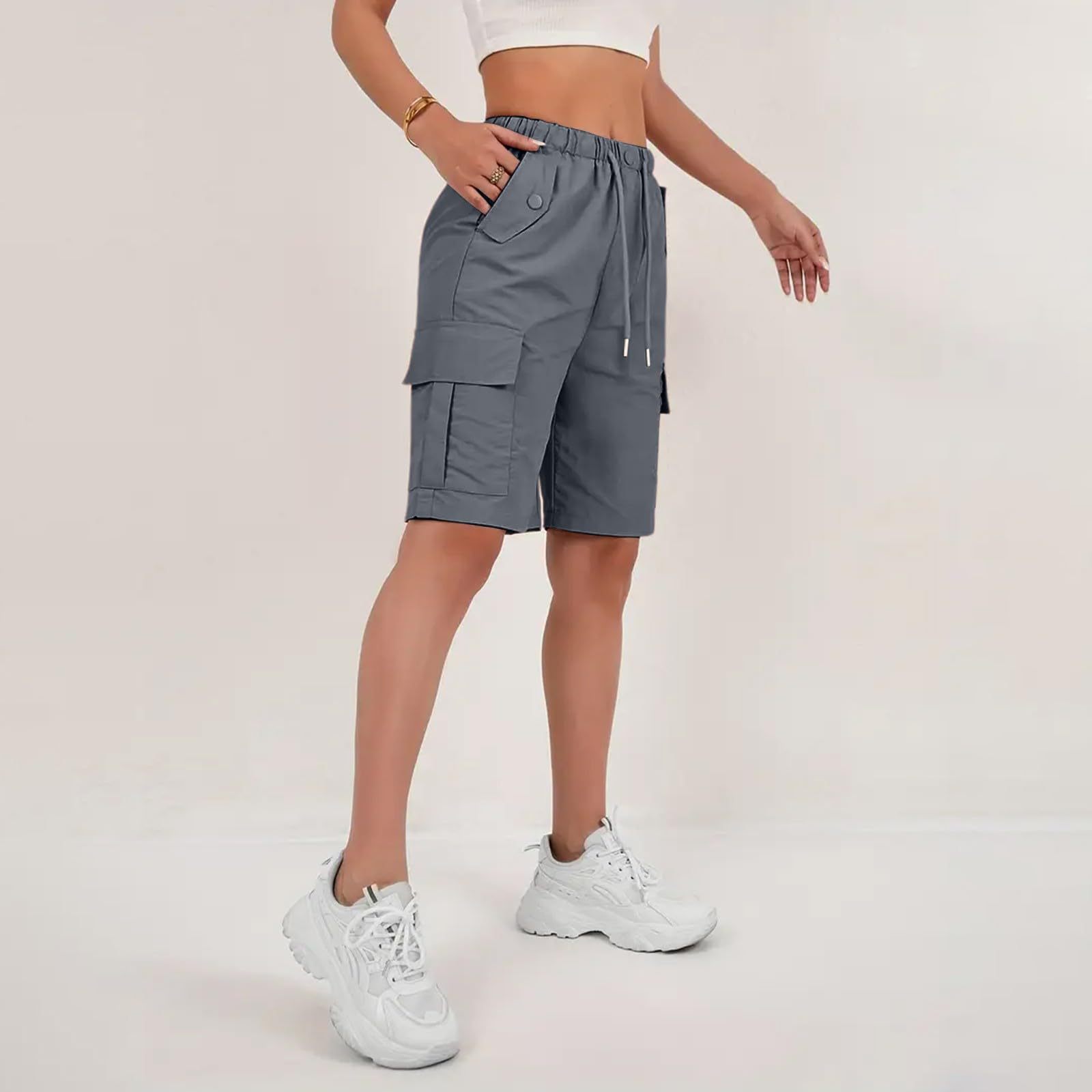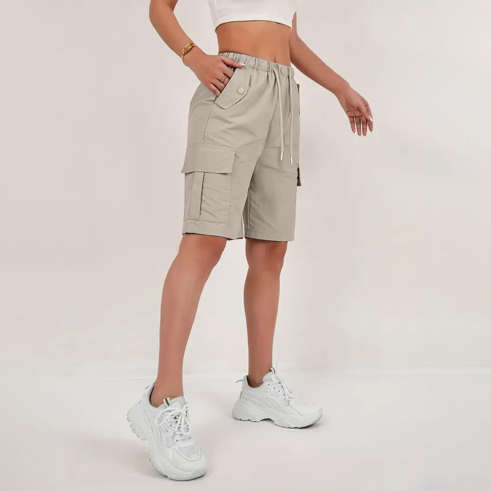 Женские шорты-карго больших размеров в американском стиле, летние повседневные шорты с широкими штанинами и эластичным карманом на талии, европейские и американские трансграничные.