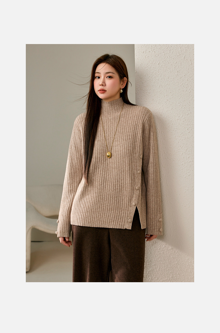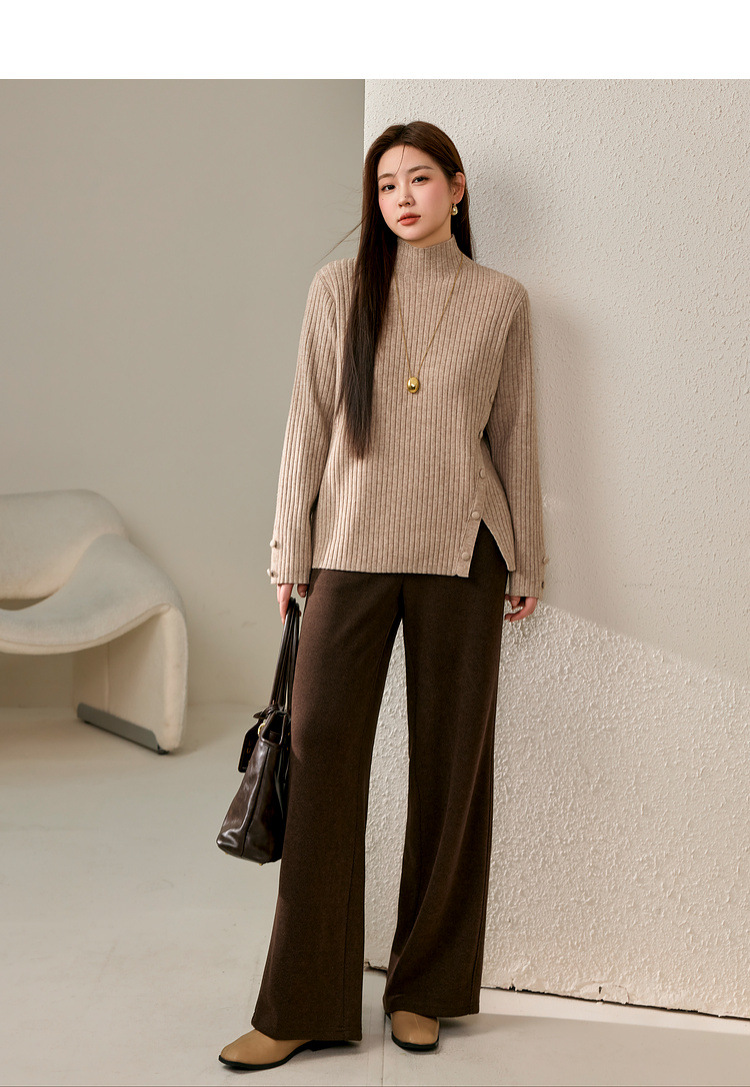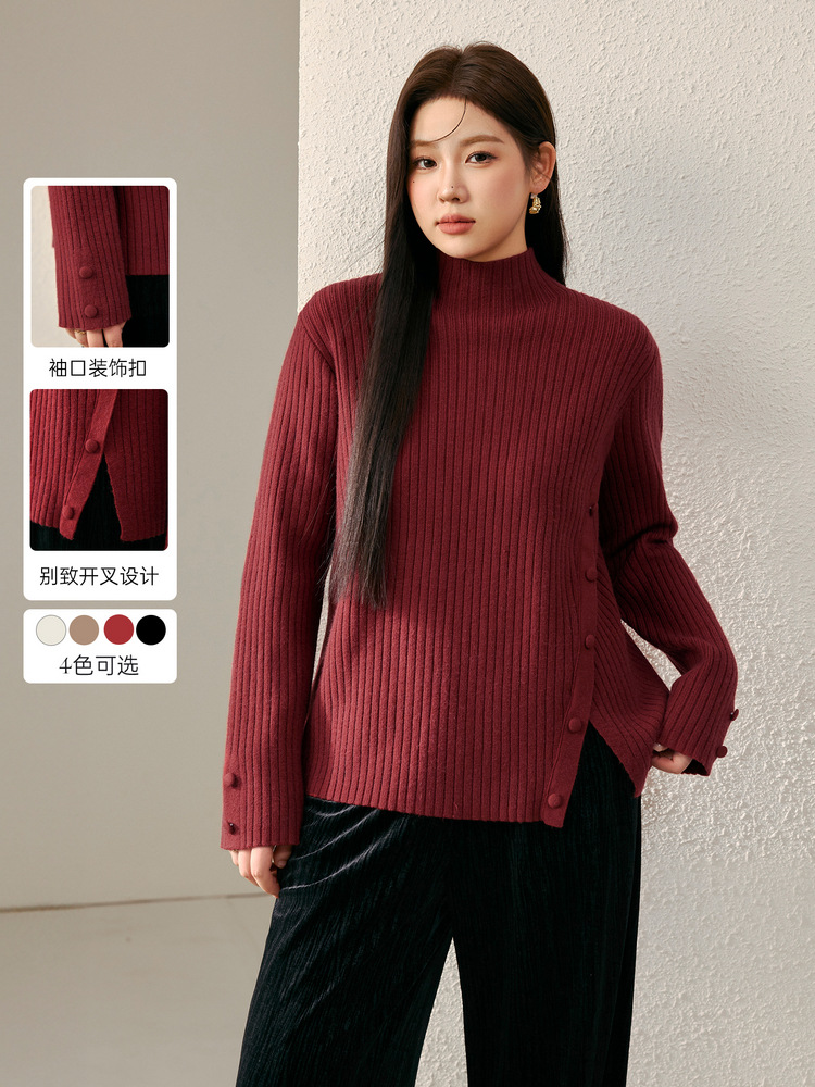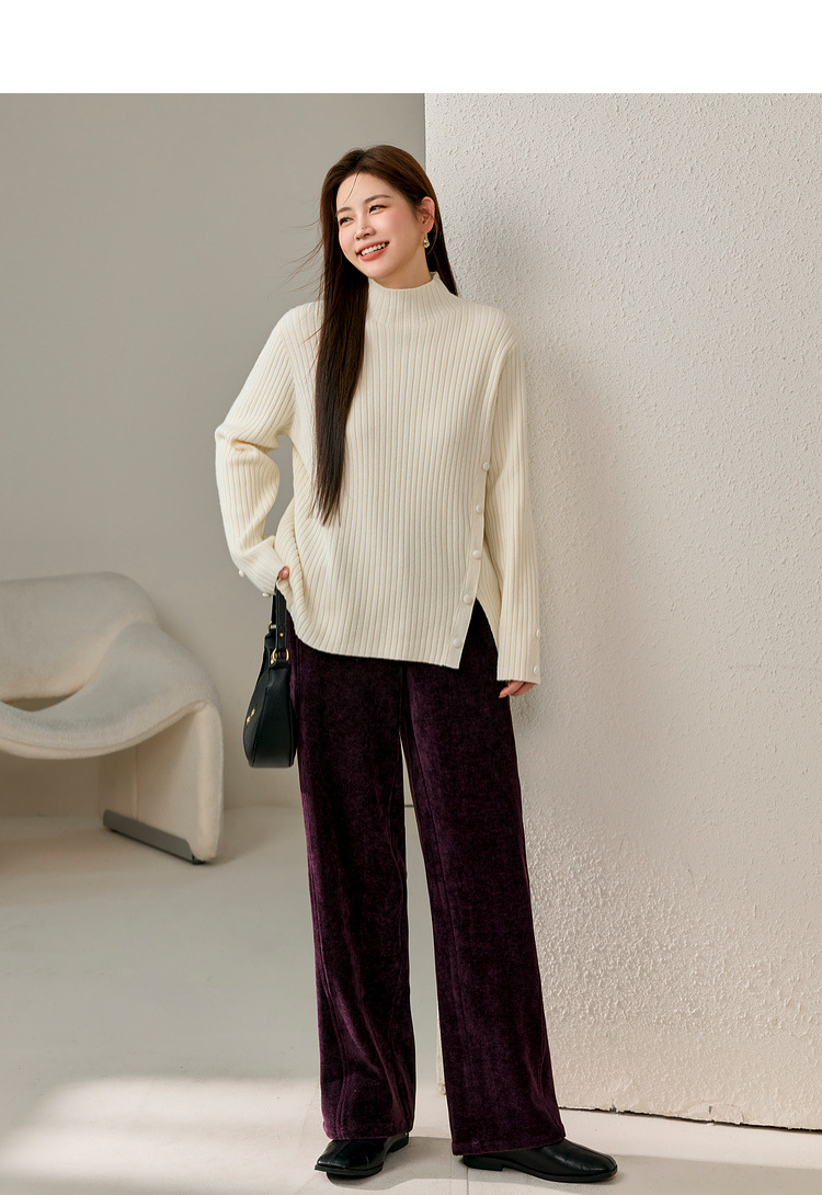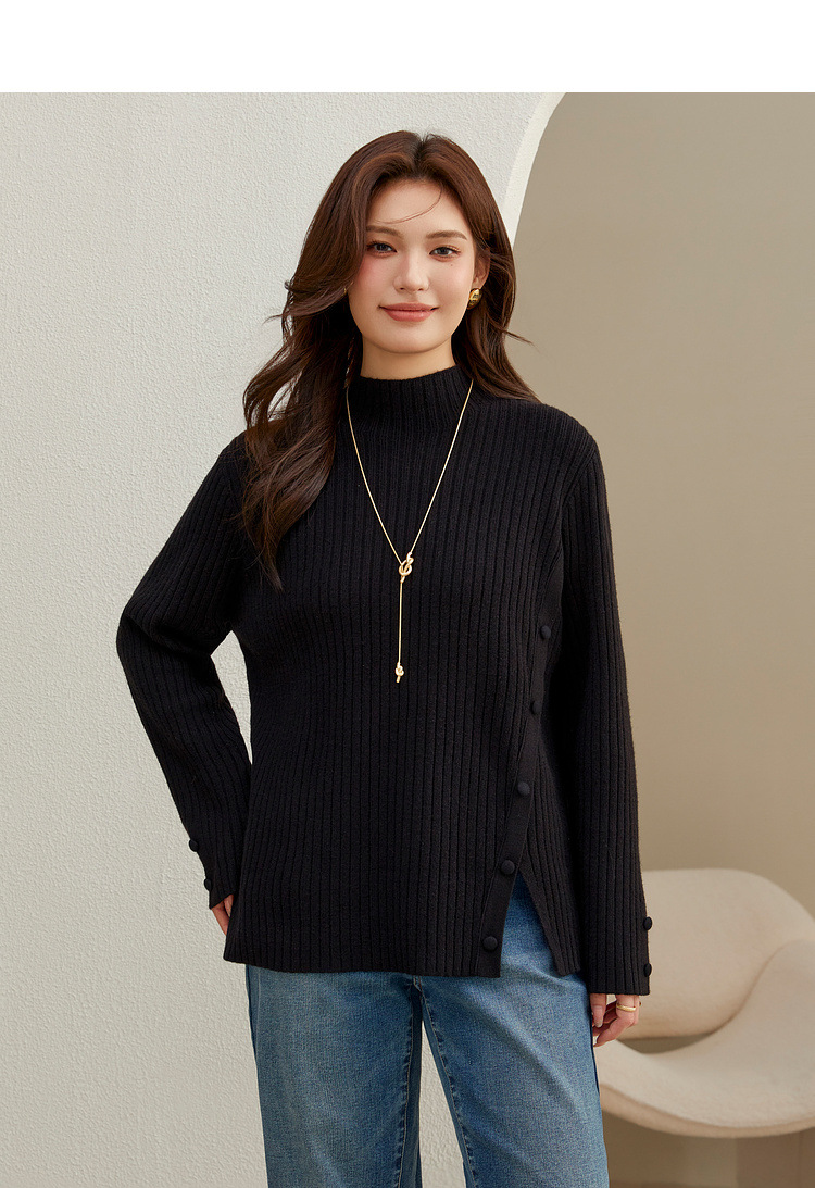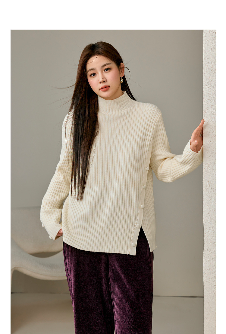 Женский модный свитер больших размеров в корейском стиле с высоким воротником и разрезом по подолу, универсальный и теплый, для полных женщин, новая модель зимы 2024 года.