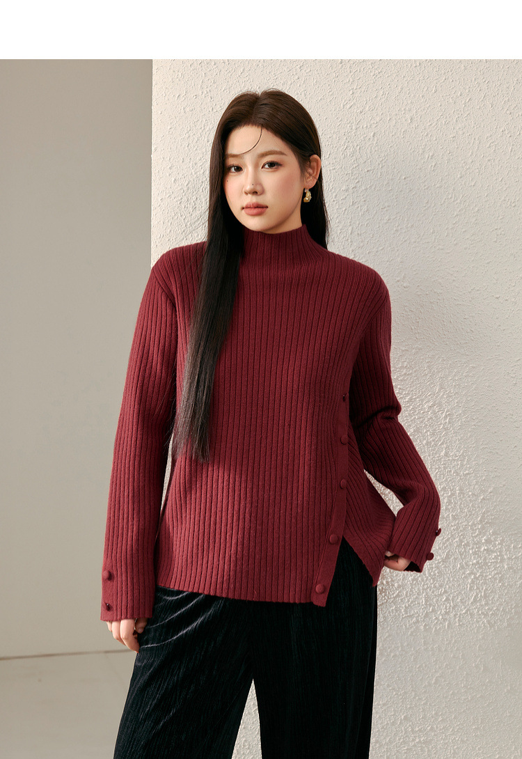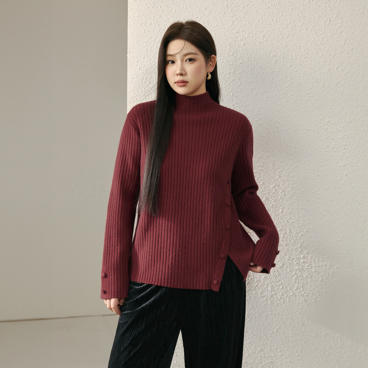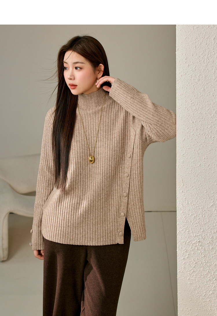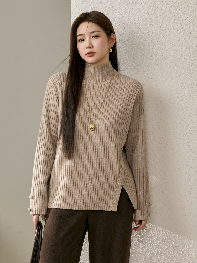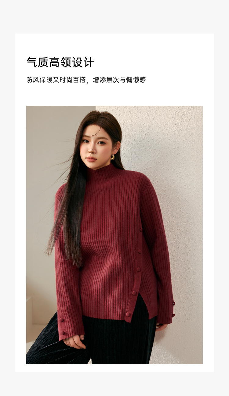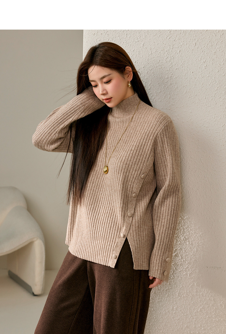 Женский модный свитер больших размеров в корейском стиле с высоким воротником и разрезом по подолу, универсальный и теплый, для полных женщин, новая модель зимы 2024 года.