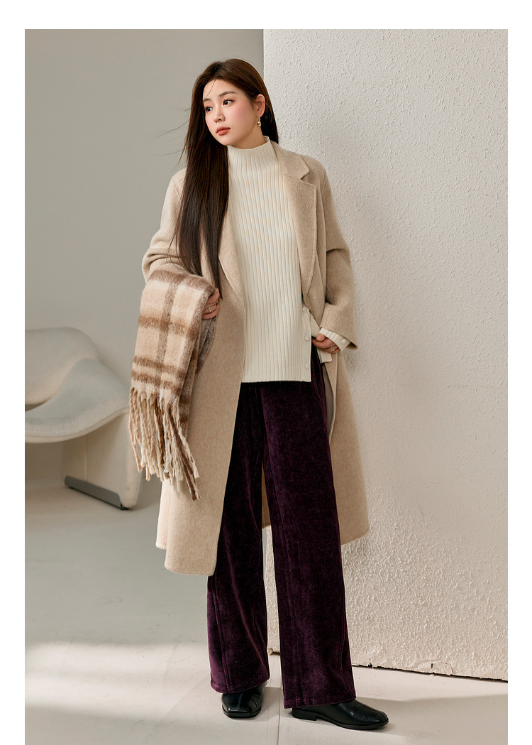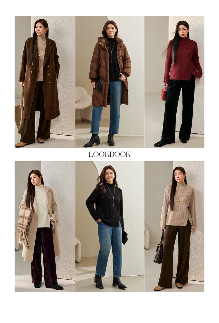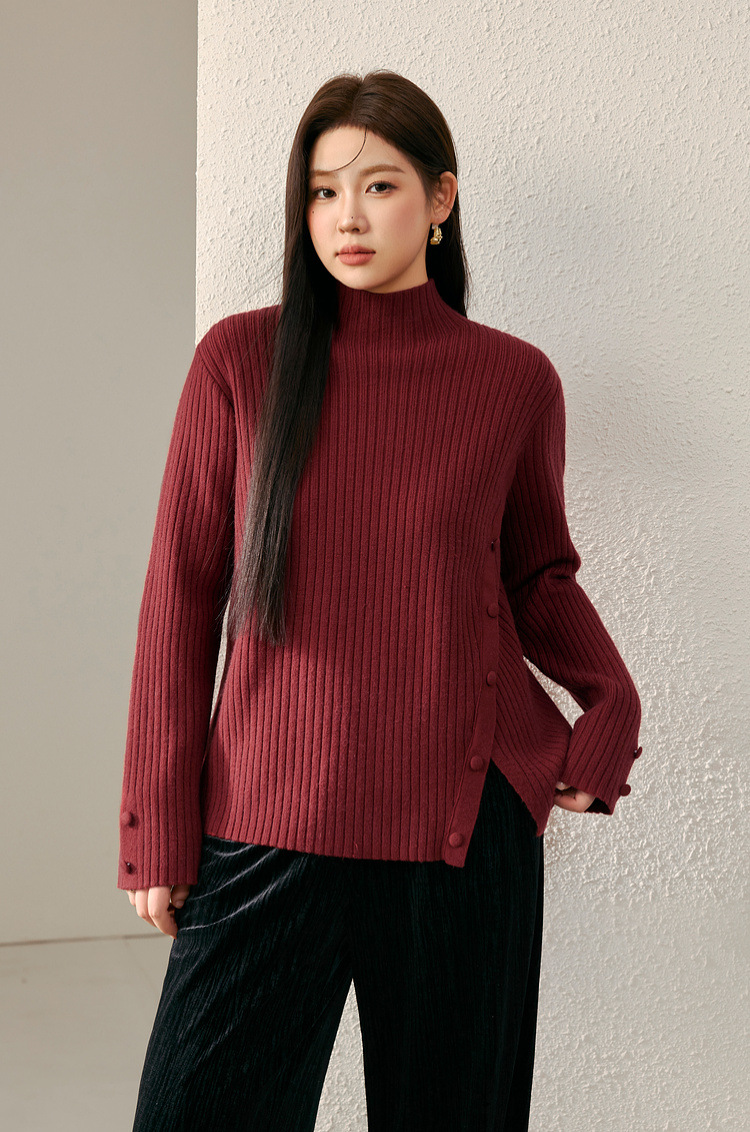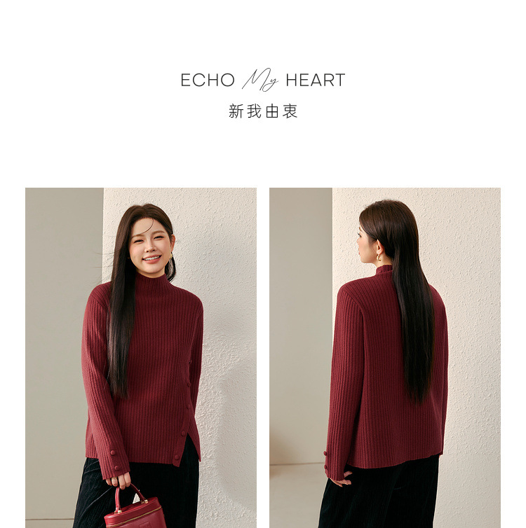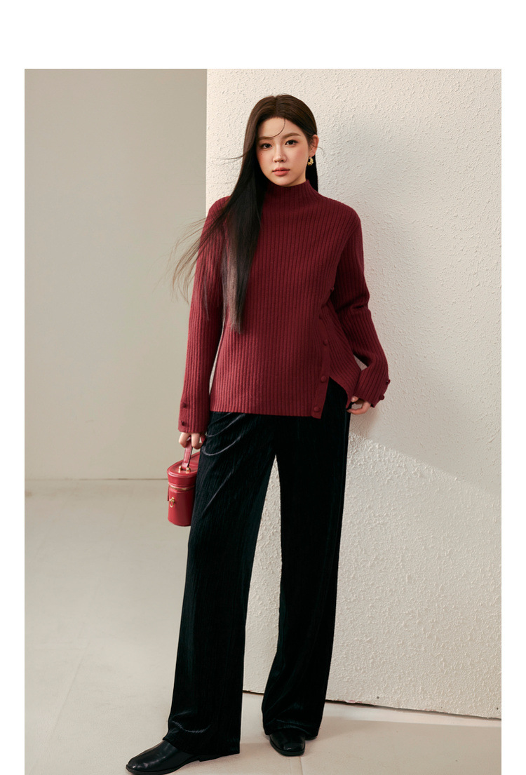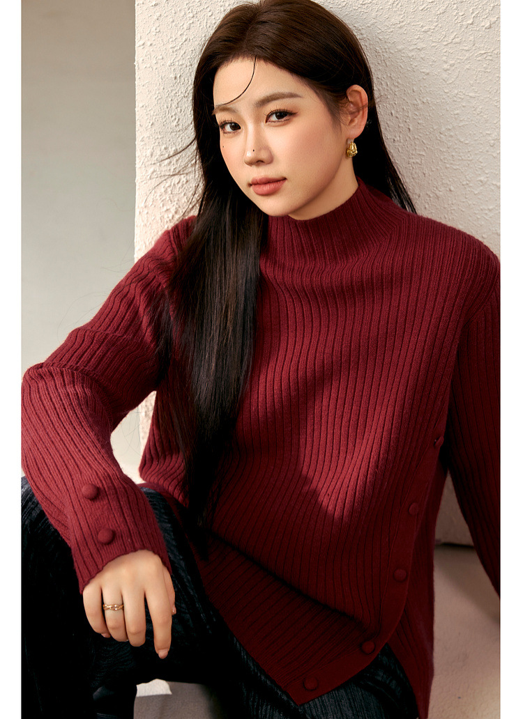 Женский модный свитер больших размеров в корейском стиле с высоким воротником и разрезом по подолу, универсальный и теплый, для полных женщин, новая модель зимы 2024 года.
