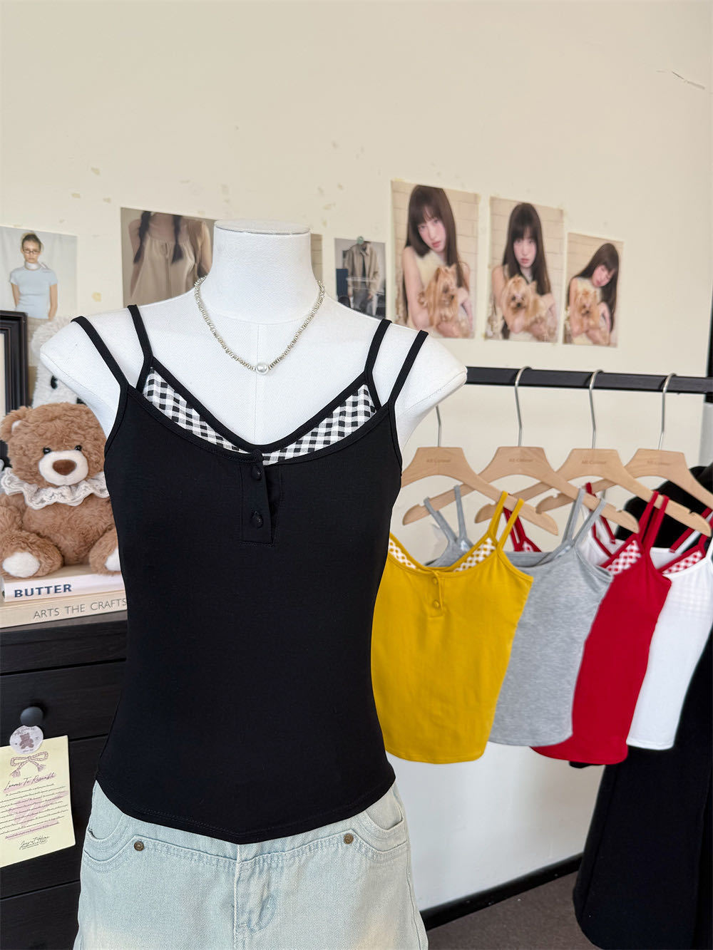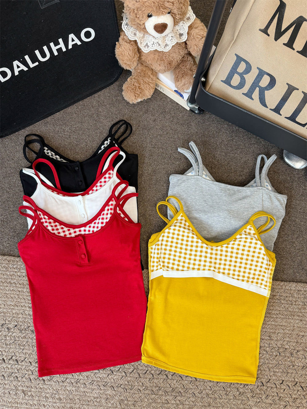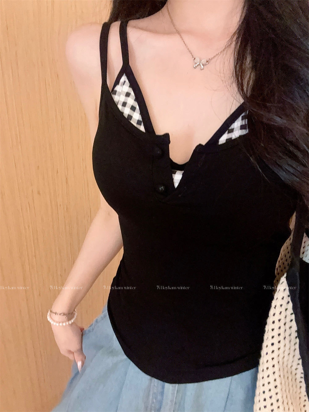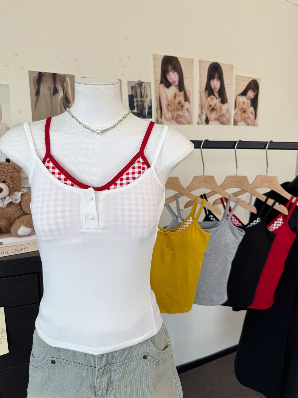 Летняя контрастная клетчатая майка на пуговицах из двух частей с подушечками для груди для горячих девушек, которые могут носить топы без рукавов