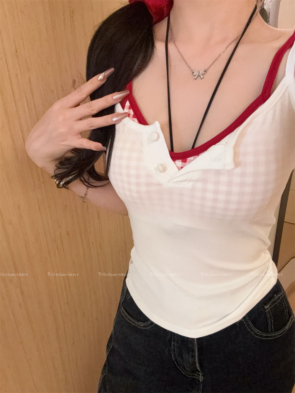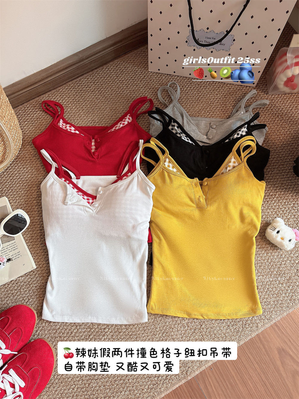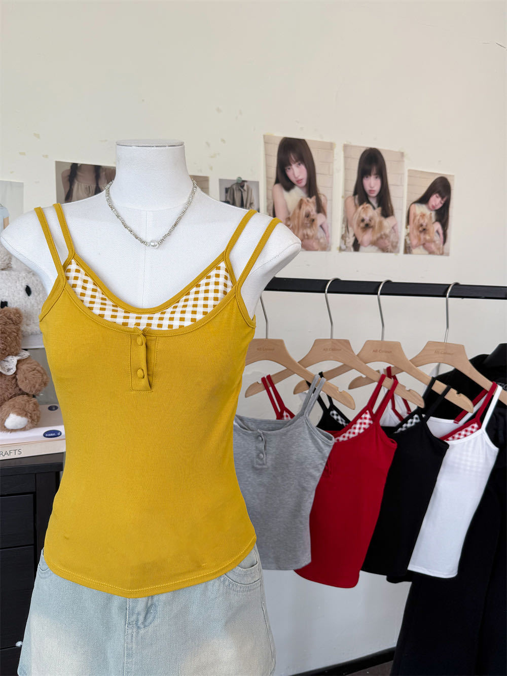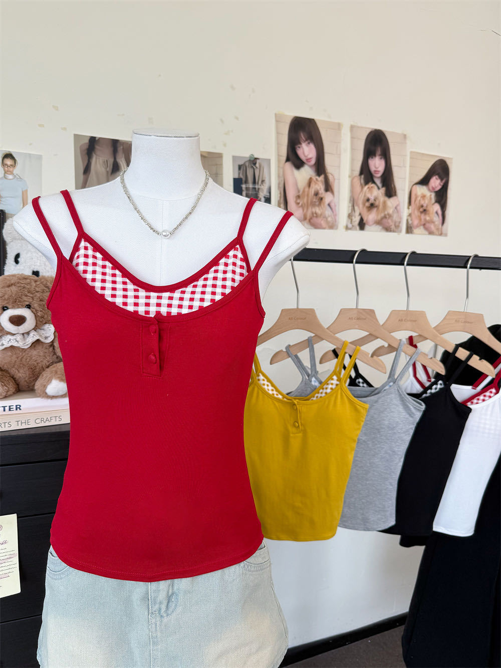 Летняя контрастная клетчатая майка на пуговицах из двух частей с подушечками для груди для горячих девушек, которые могут носить топы без рукавов