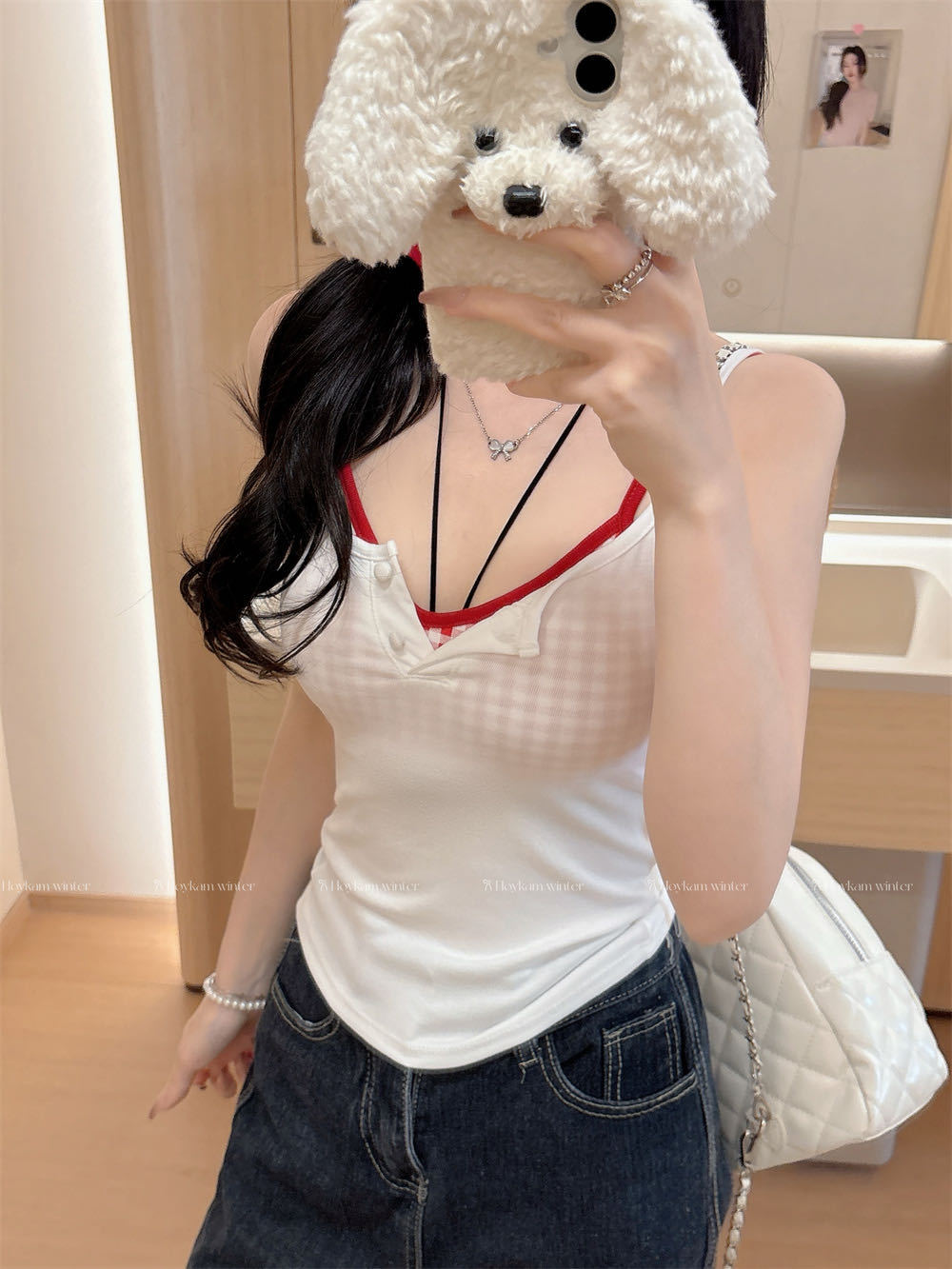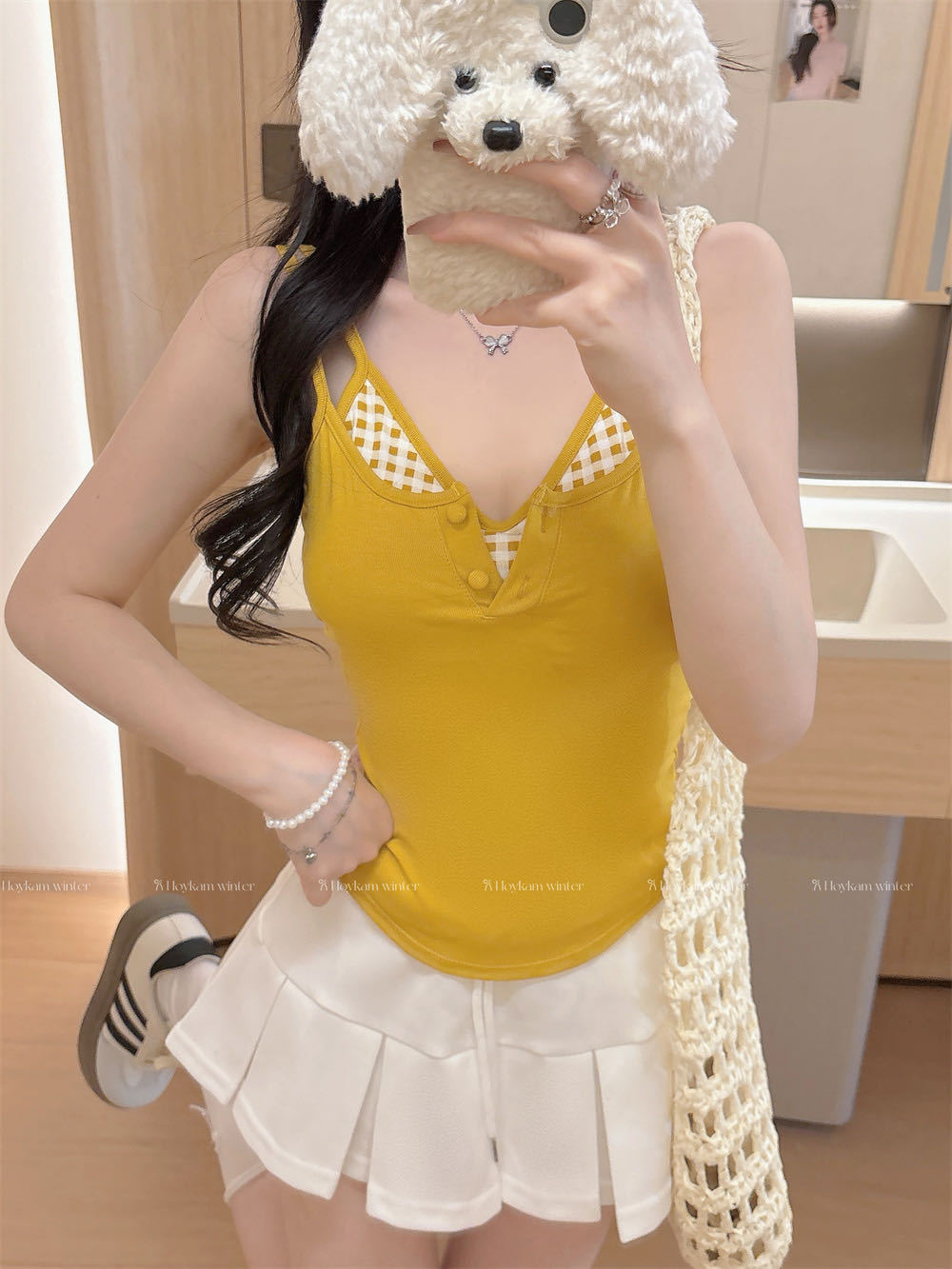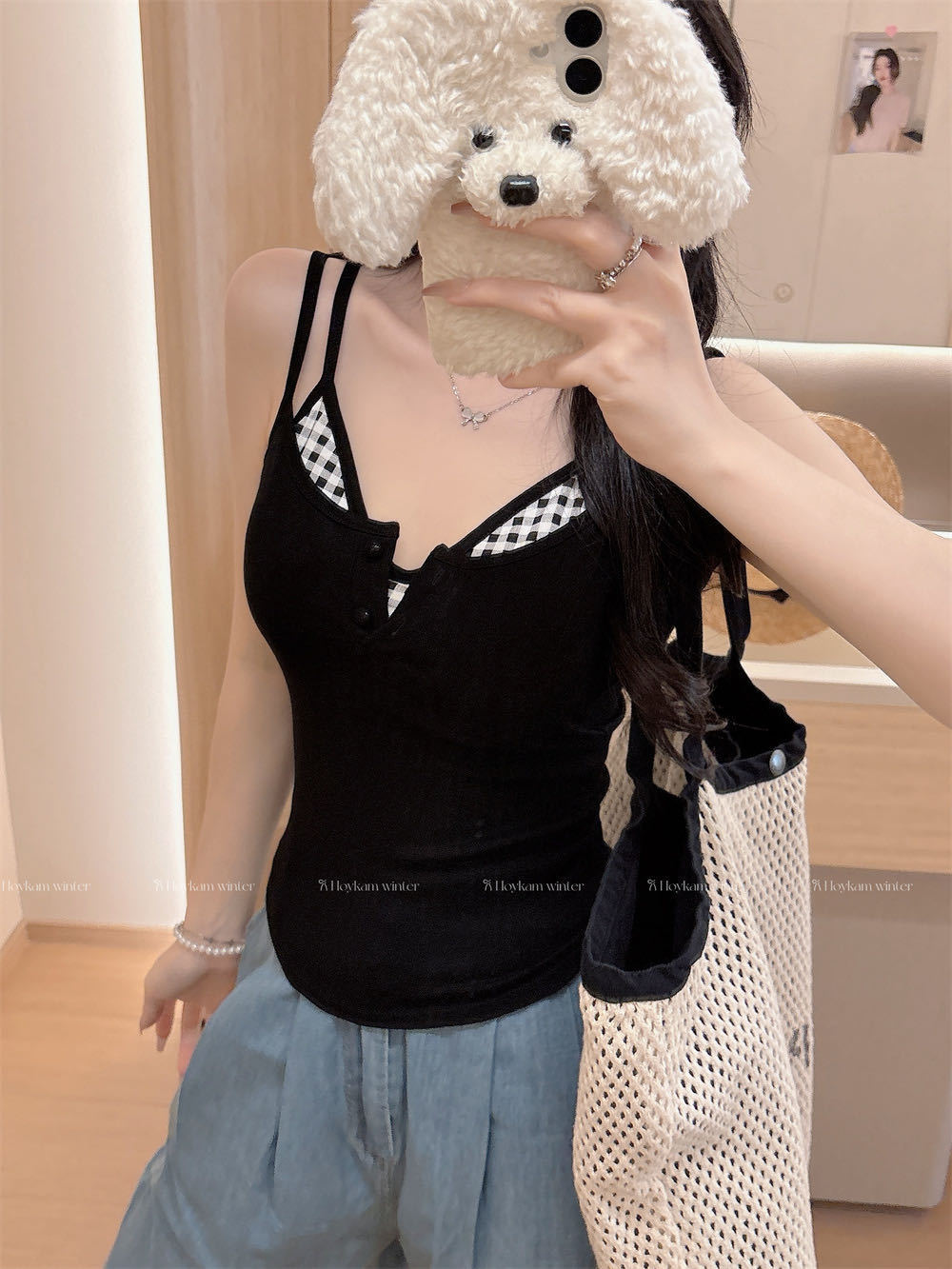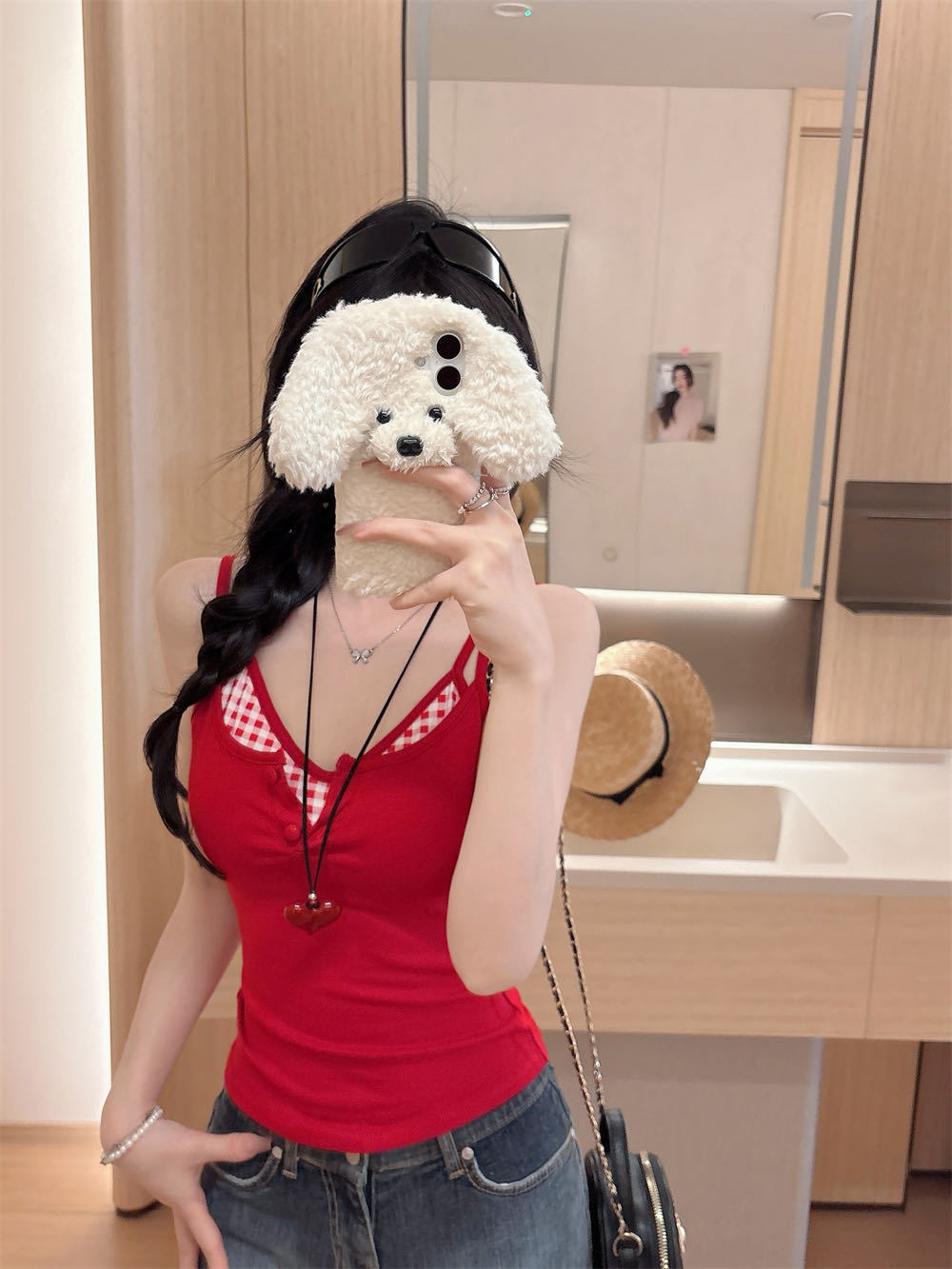 Летняя контрастная клетчатая майка на пуговицах из двух частей с подушечками для груди для горячих девушек, которые могут носить топы без рукавов
