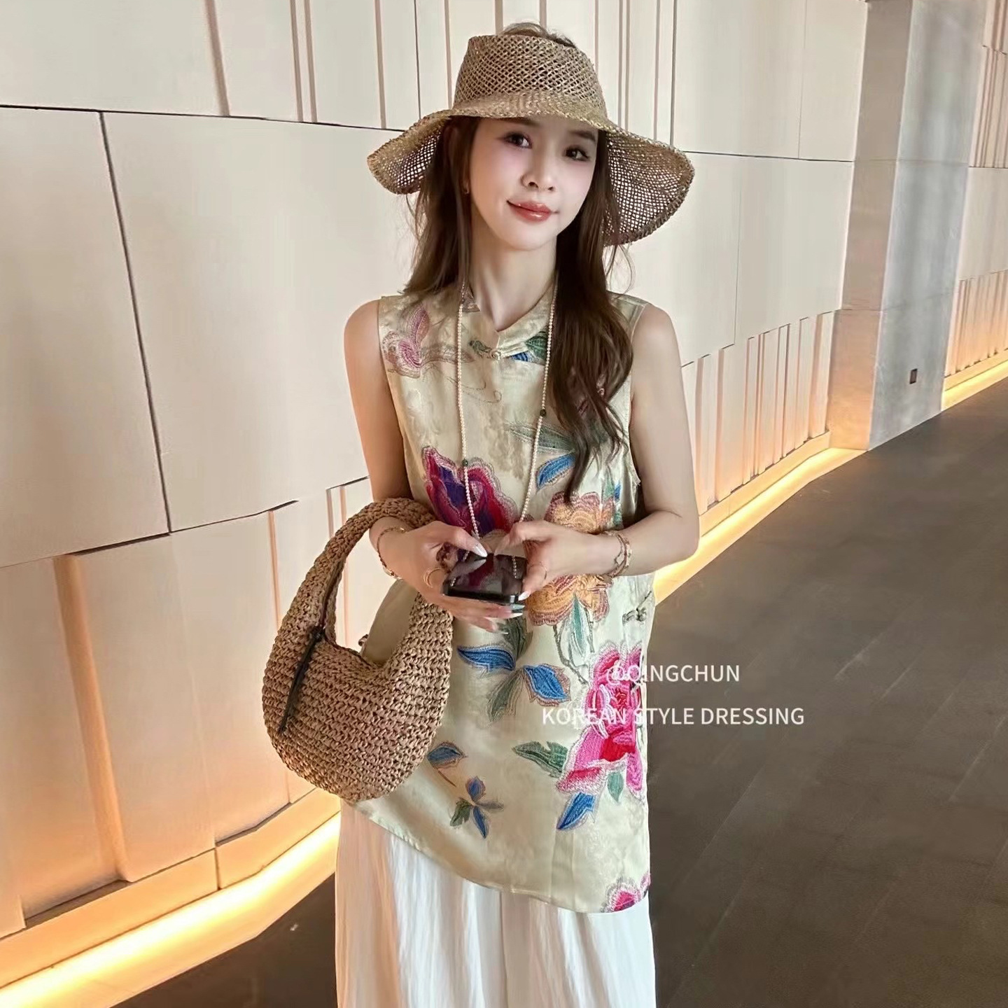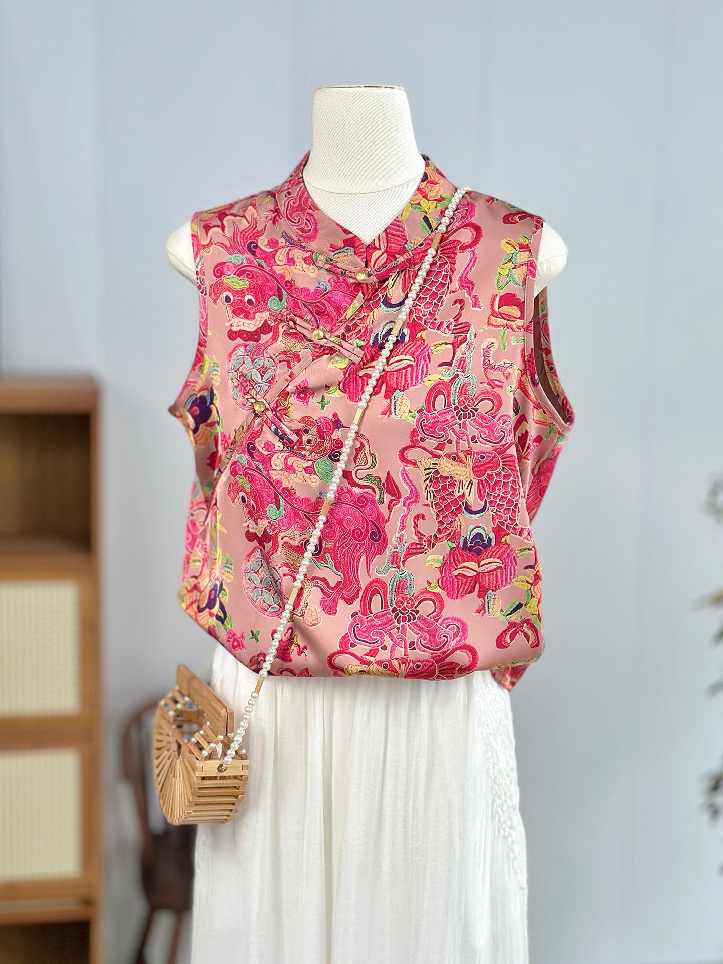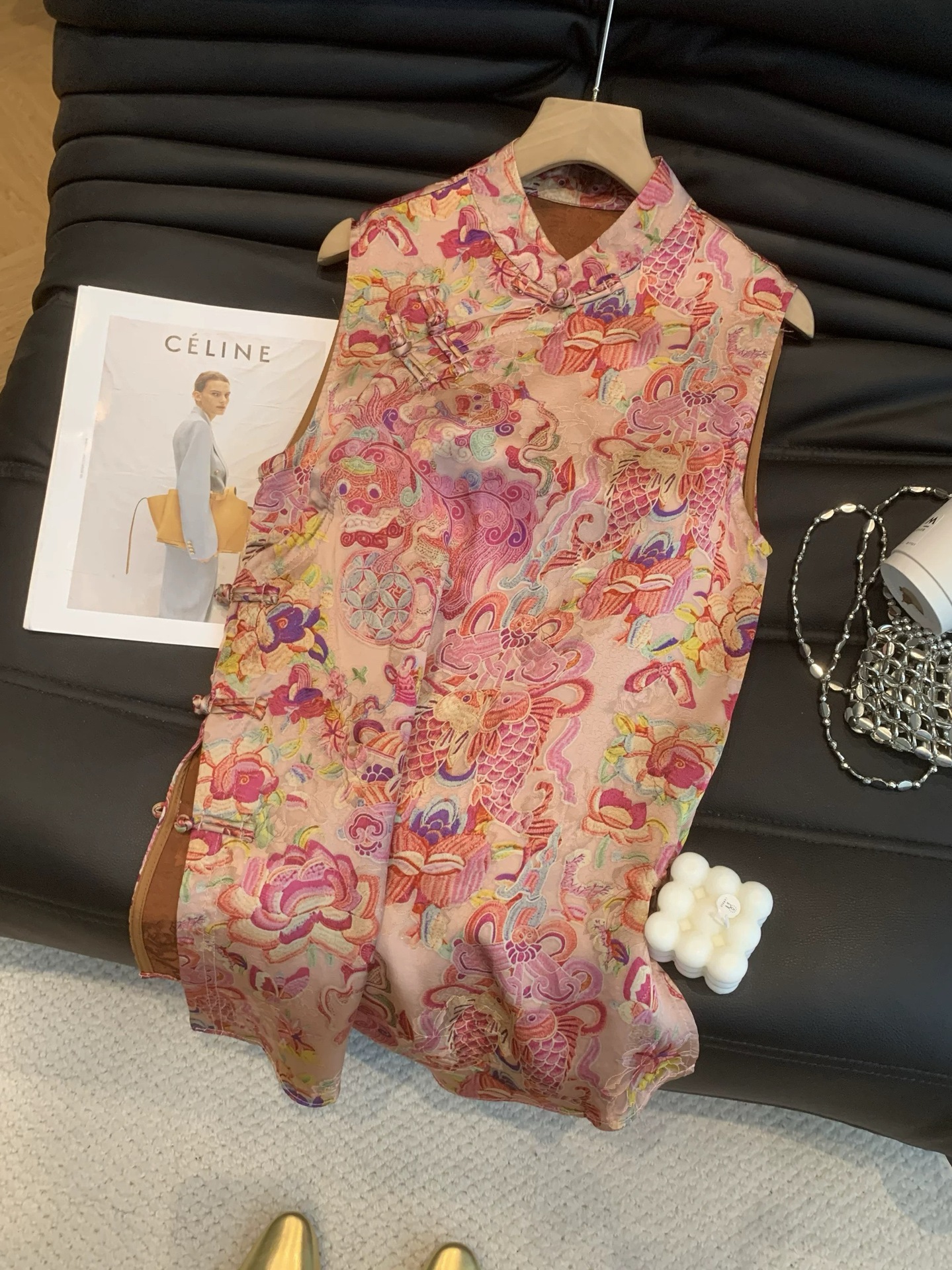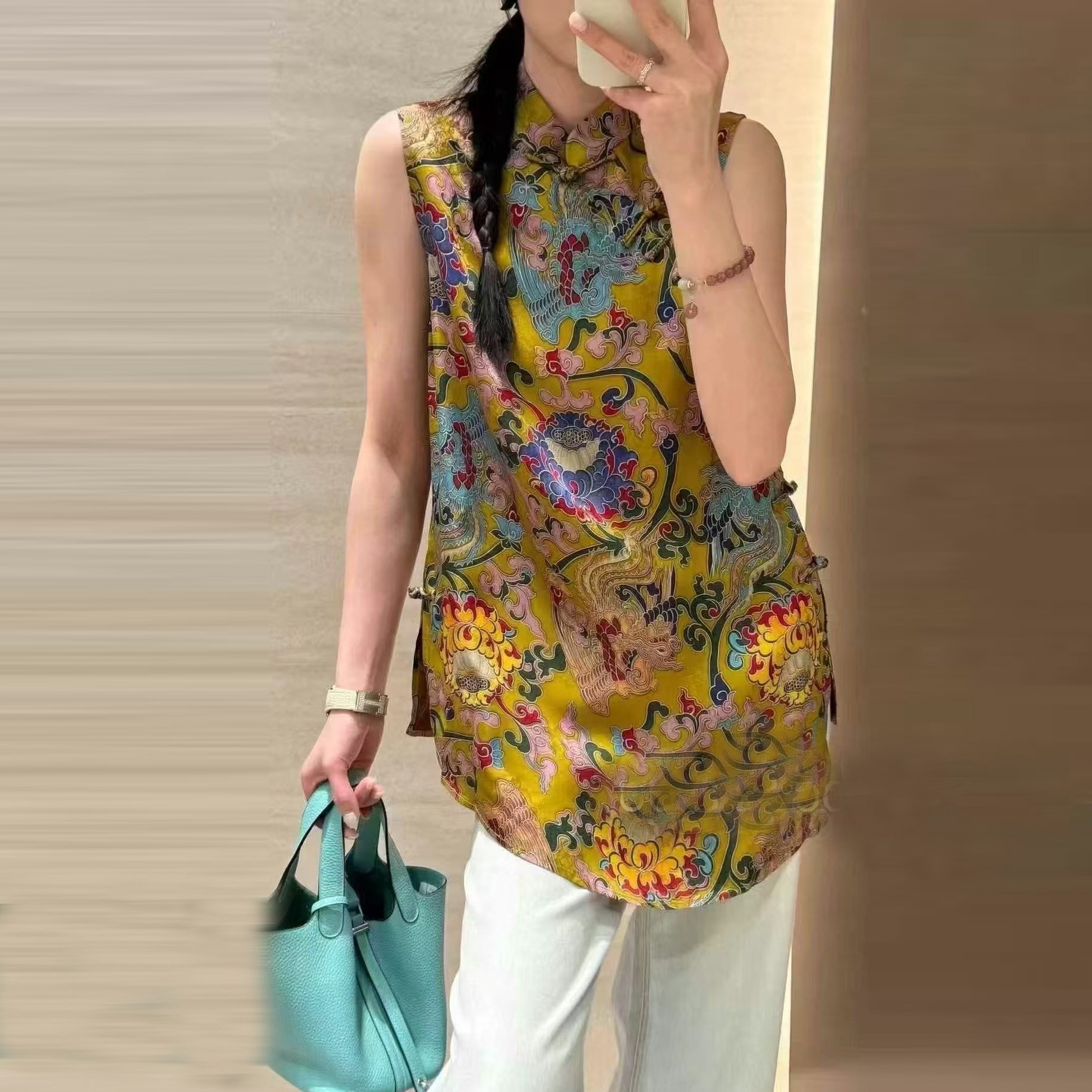 Летний уменьшающий возраст и утягивающий новый жилет в китайском стиле, женский жилет в национальном стиле, рубашка без рукавов в стиле ретро, топ