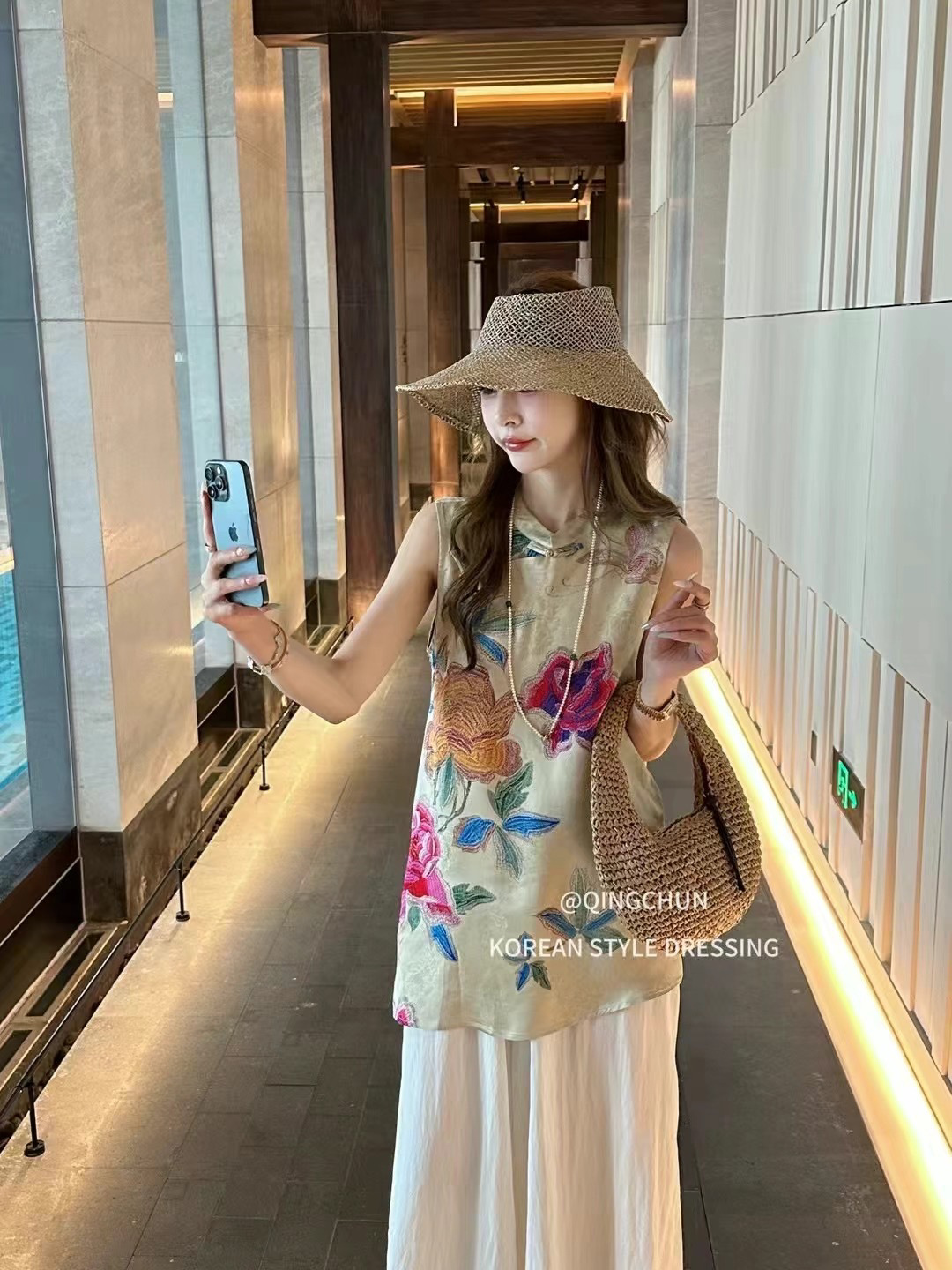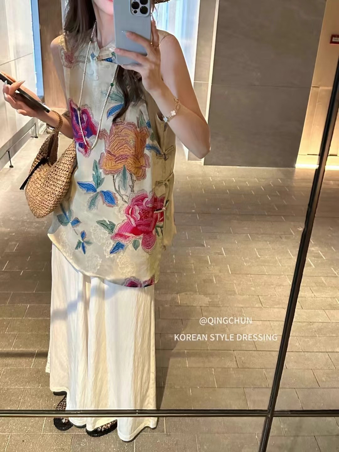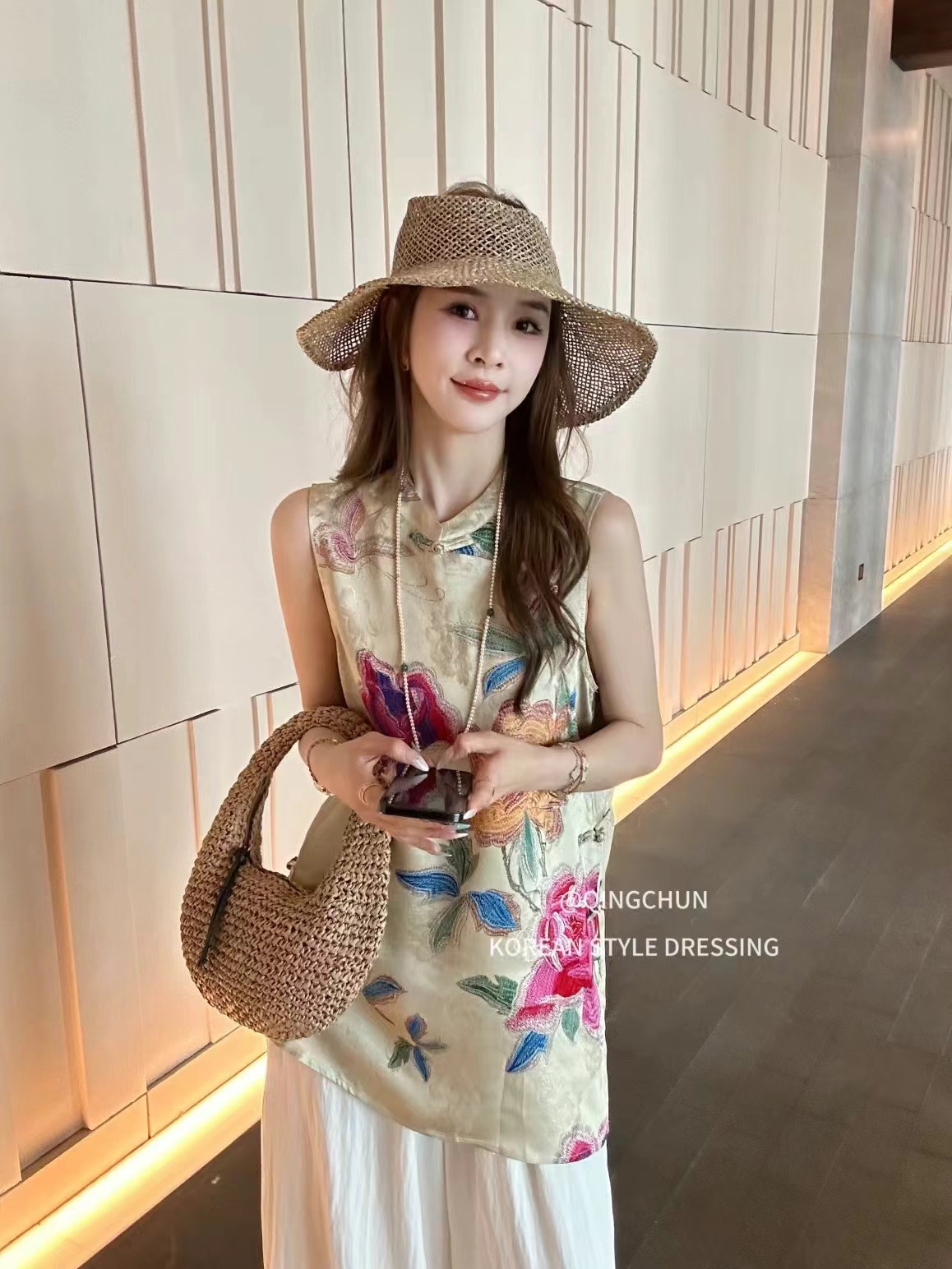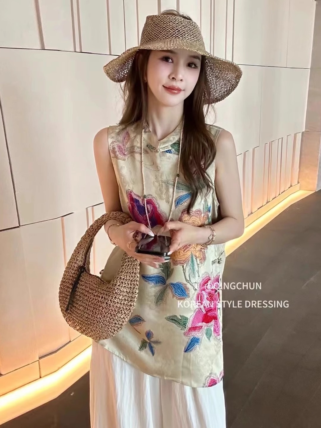 Летний уменьшающий возраст и утягивающий новый жилет в китайском стиле, женский жилет в национальном стиле, рубашка без рукавов в стиле ретро, топ