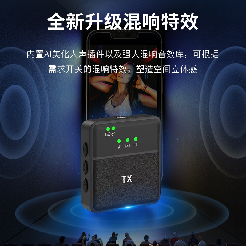 Новый беспроводной петличный микрофон для трансграничной связи, миниатюрный портативный умный микрофон с шумоподавлением, реверберацией и радио, три в одном, с креплением-клипсой.