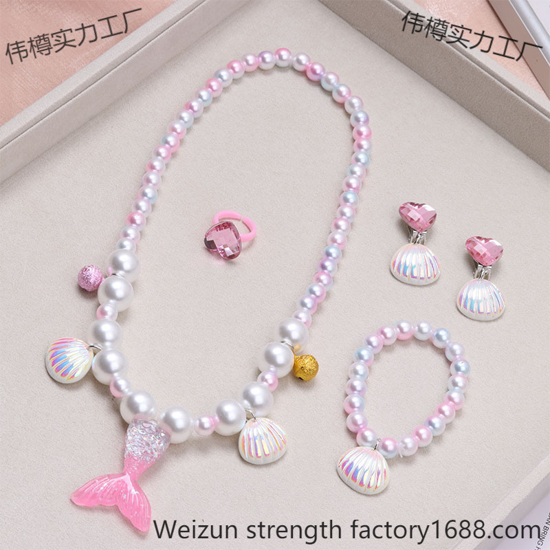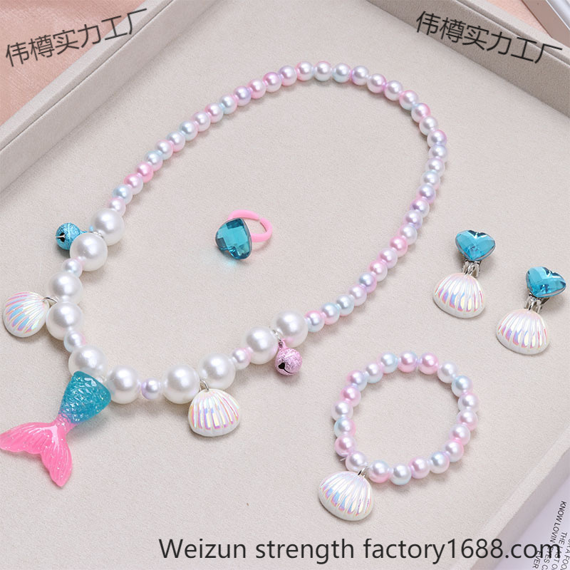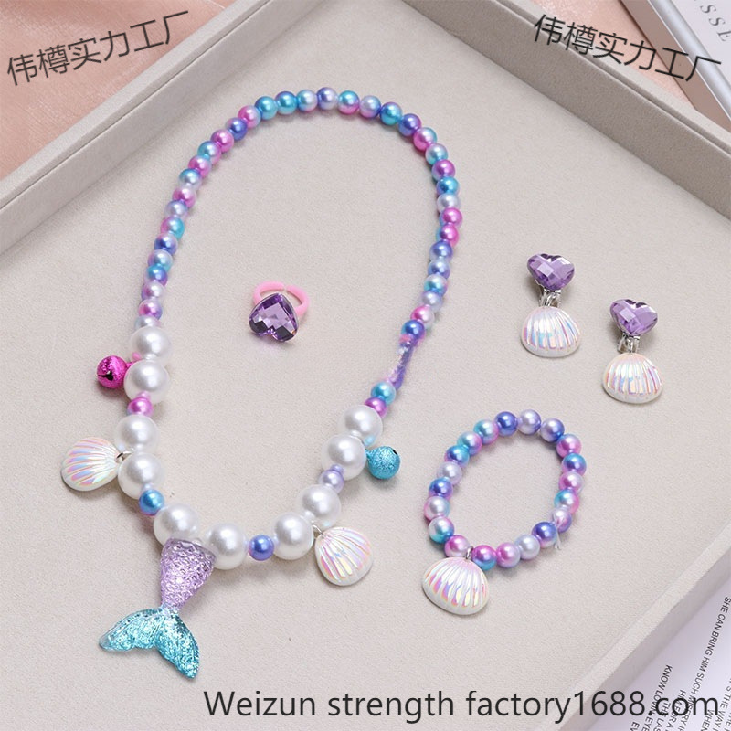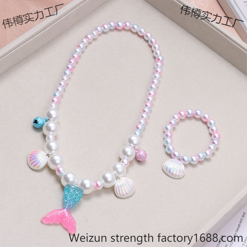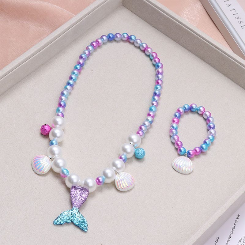 Ювелирные аксессуары принцессы для маленьких девочек, комплект ожерелья и браслета с хвостом русалки, детские украшения для девочек