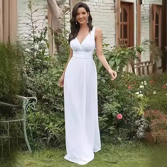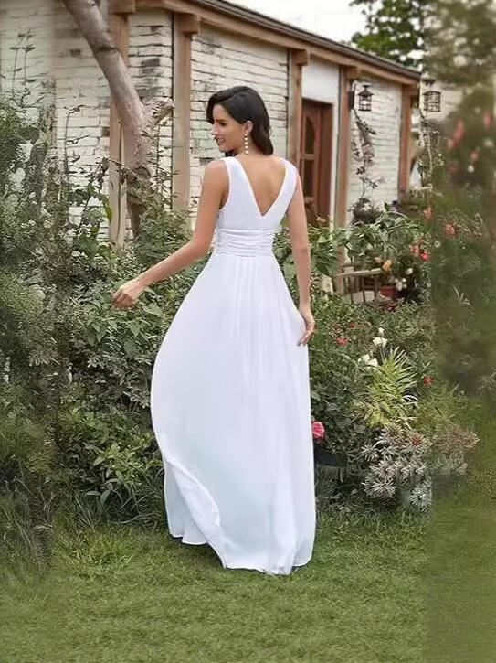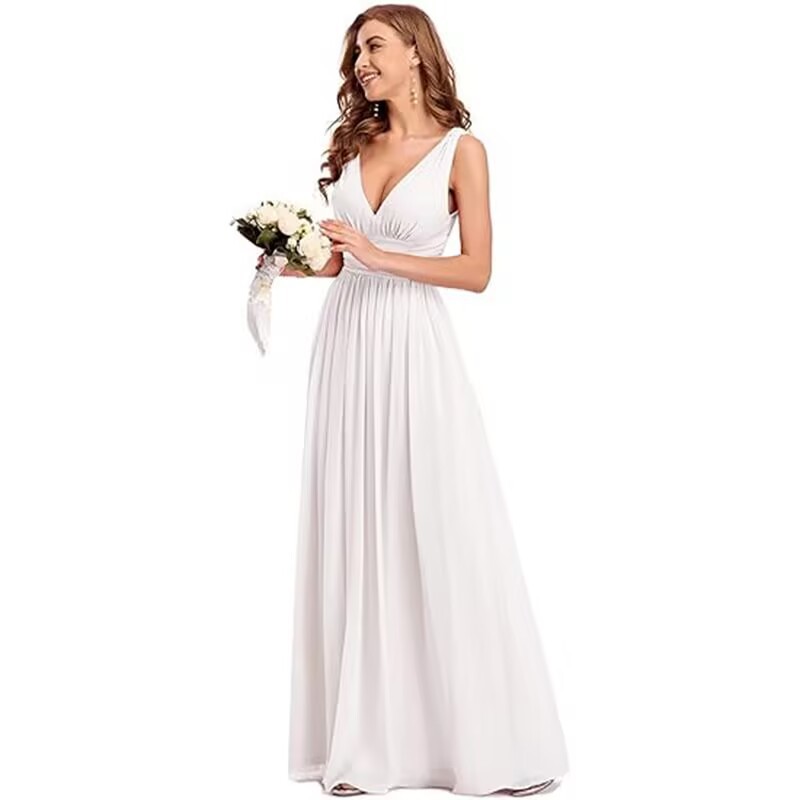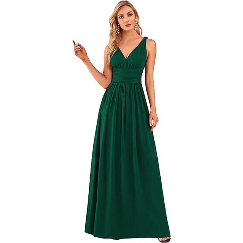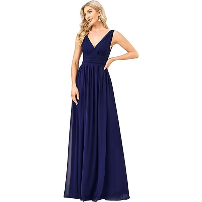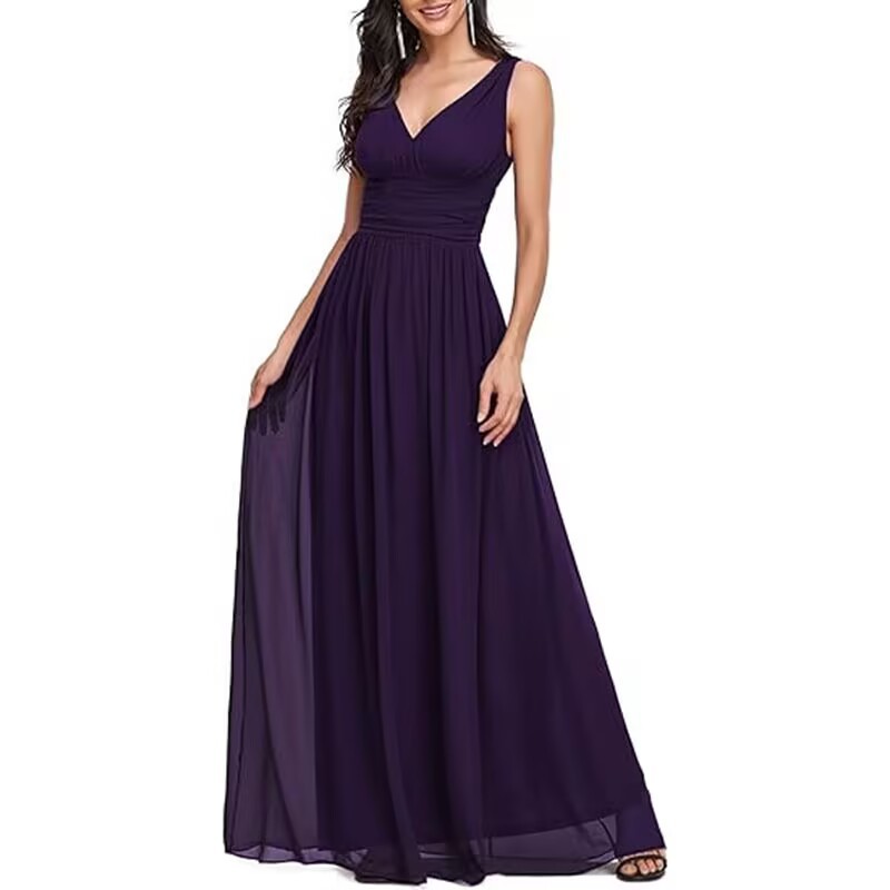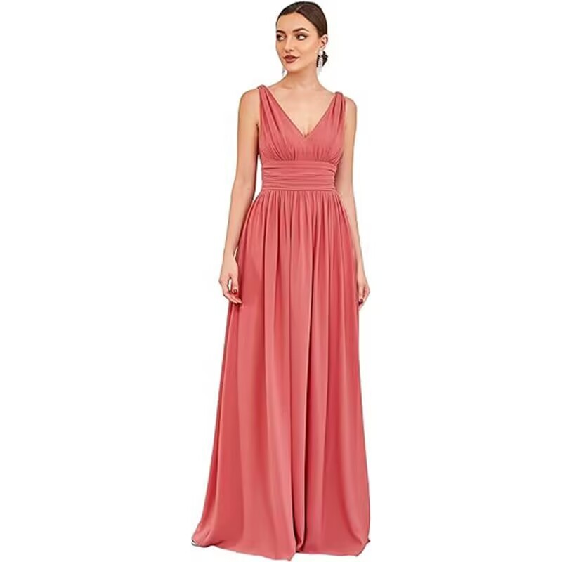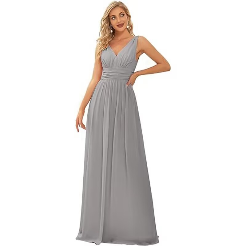 Вечернее платье 2025, новое, женское, элегантное, с глубоким V-образным вырезом, без рукавов, из шифона, длинное, для торжественных мероприятий, прямые поставки с фабрики eBay.
