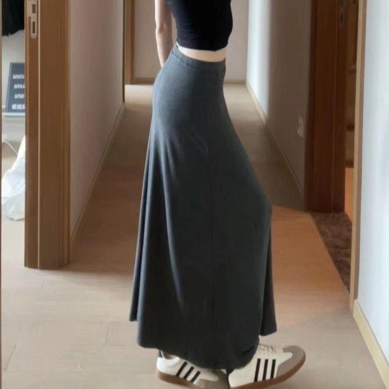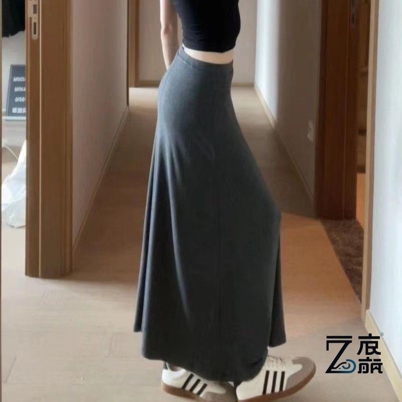 Летняя новая стильная утягивающая темно-серая длинная популярная юбка с драпировкой, темпераментом и танцевальной длинной юбкой, подчеркивающей фигуру.
