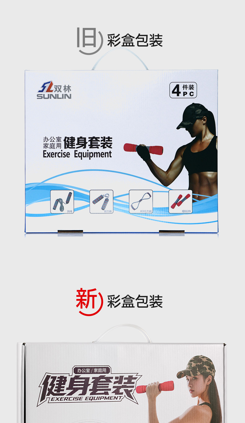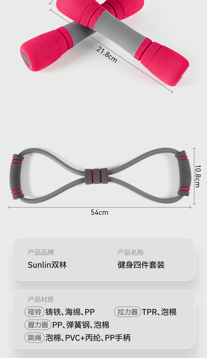 Фитнес-набор Shuanglin, гантели, скакалка, оборудование для натяжения, производитель, прямые продажи, спортивная комбинация, четырехсекционная коробка, подарок, оптовая продажа