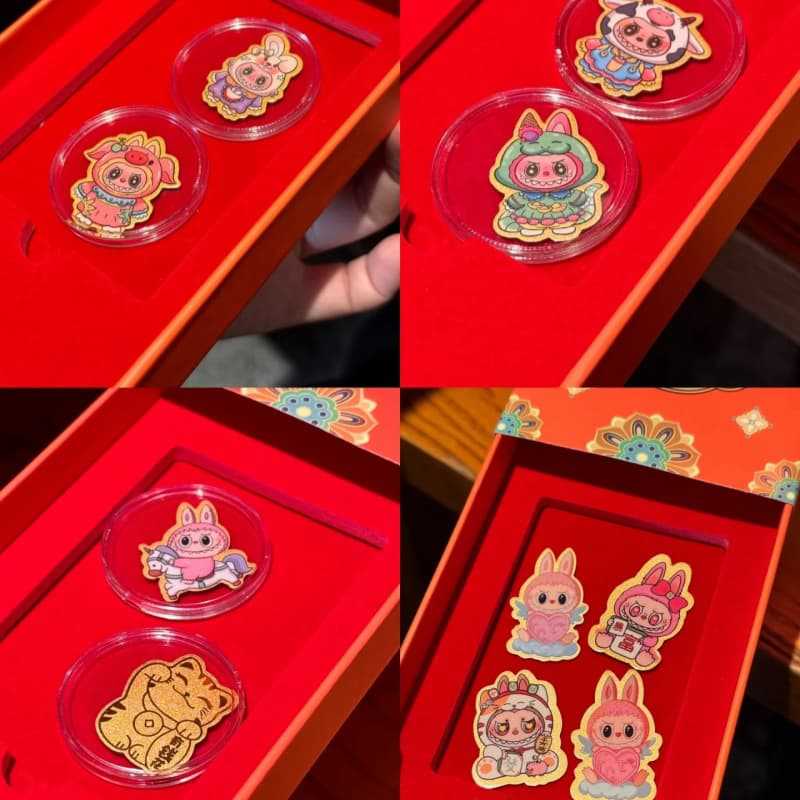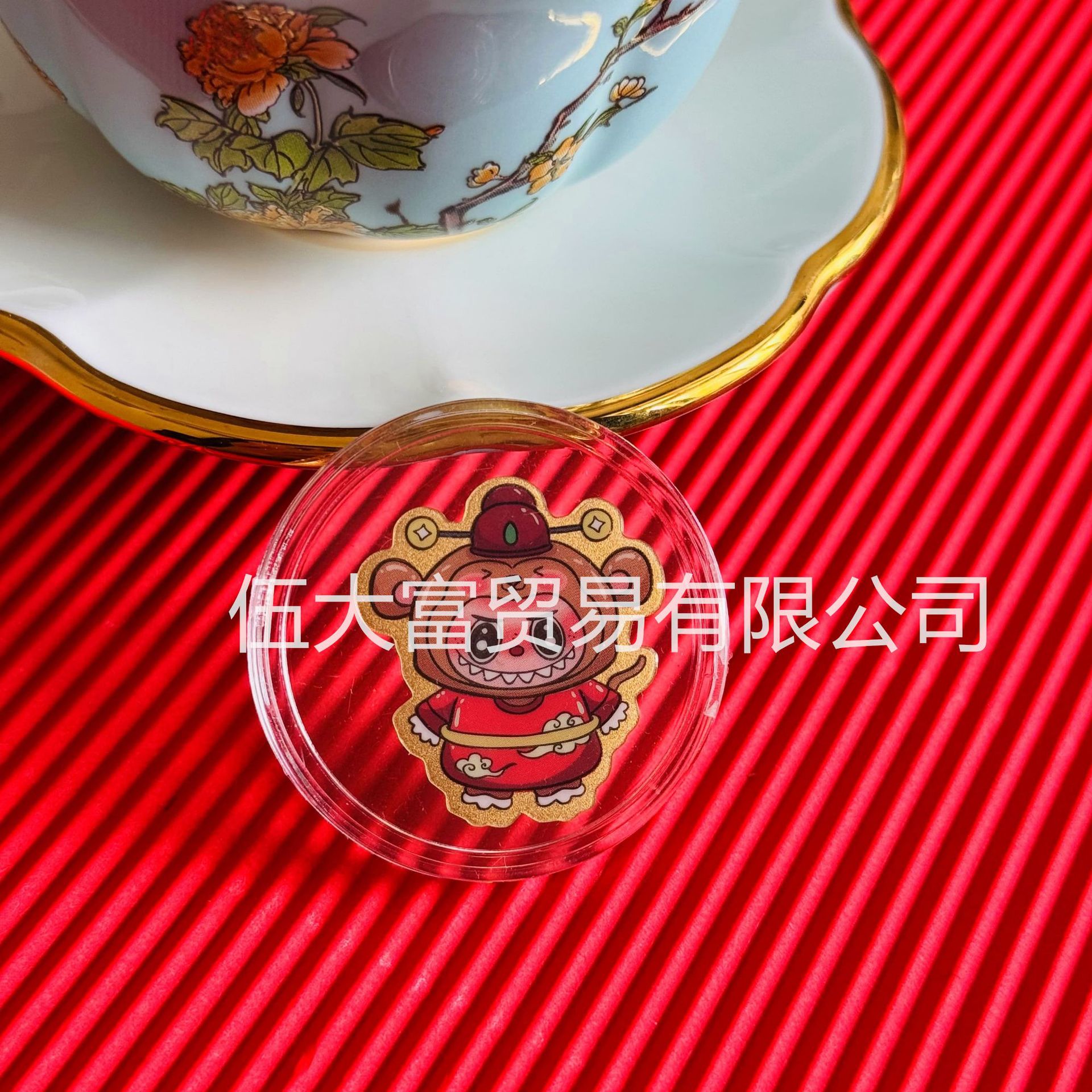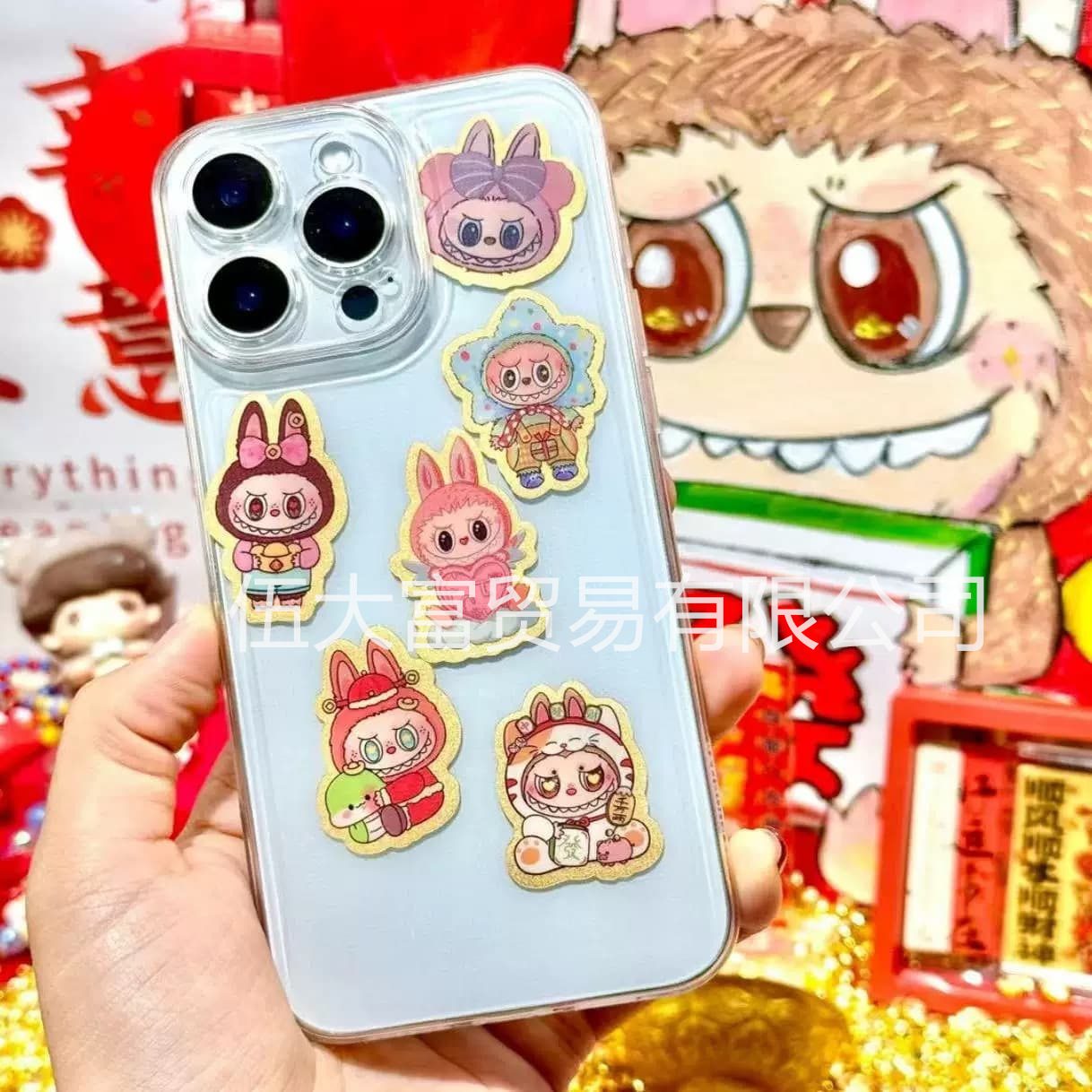Золотая наклейка на мобильный телефон Labubu Zodiac, чистое золото 999Labubu, лист золота, кулон, мультяшные декоративные аксессуары
