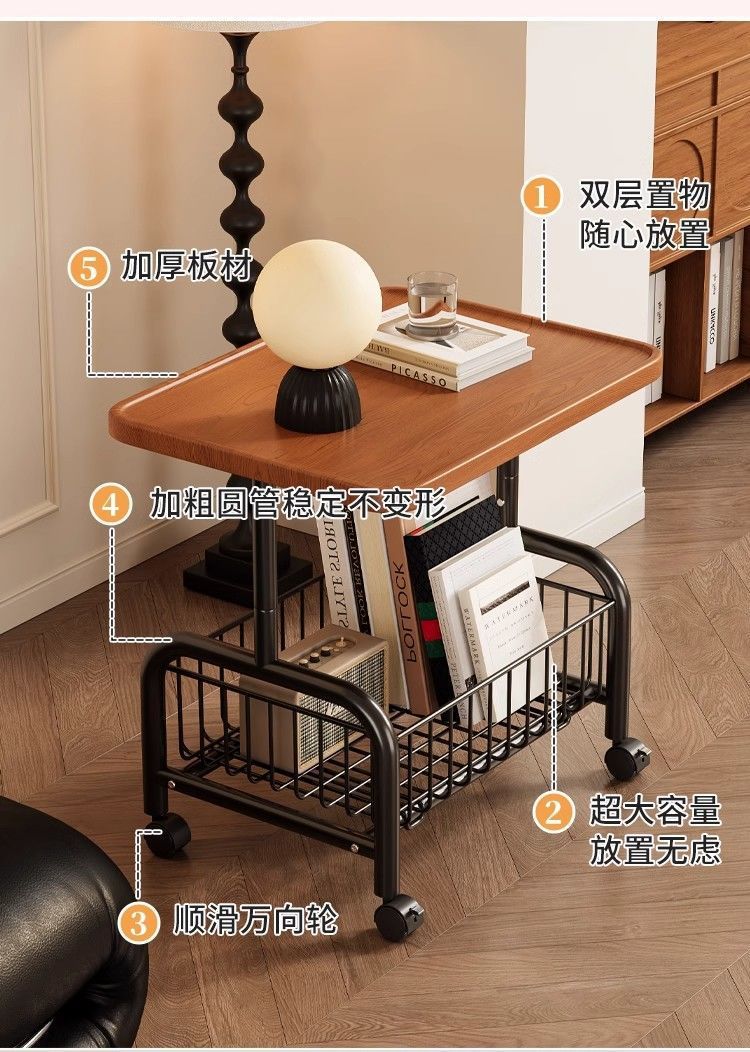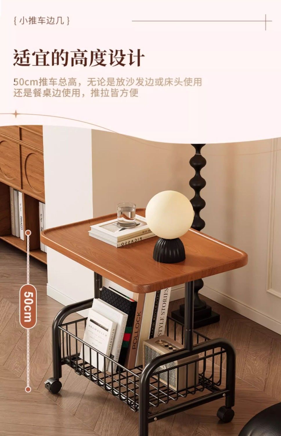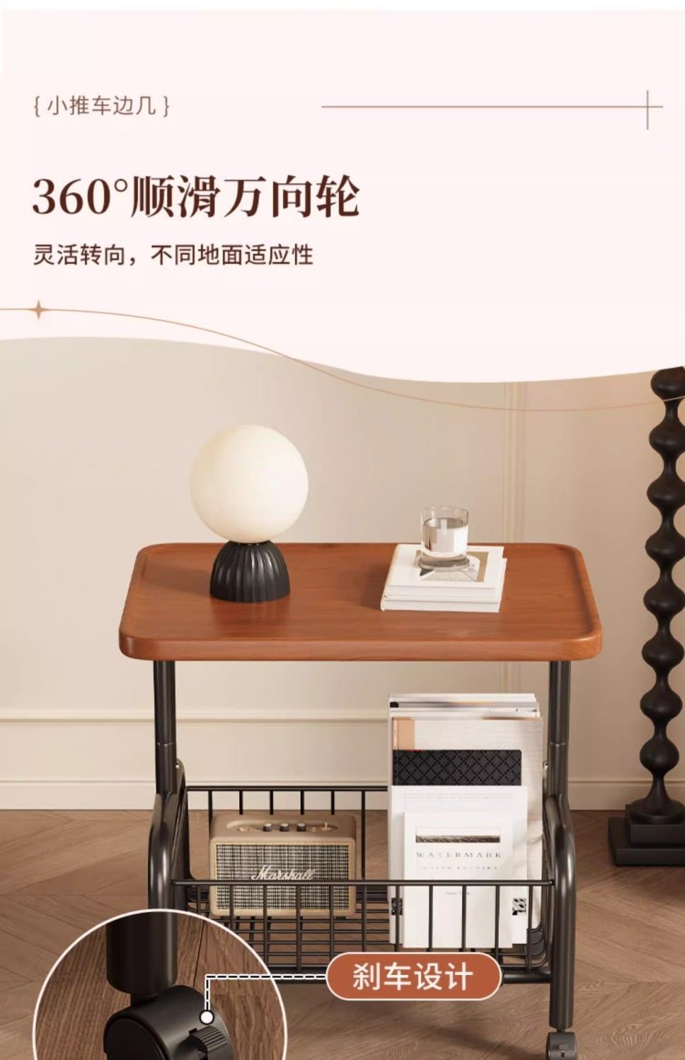 Приставной столик для дивана, передвижная тележка для гостиной с колесиками, небольшой чайный столик в кремовом стиле, простой маленький столик для домашнего использования.