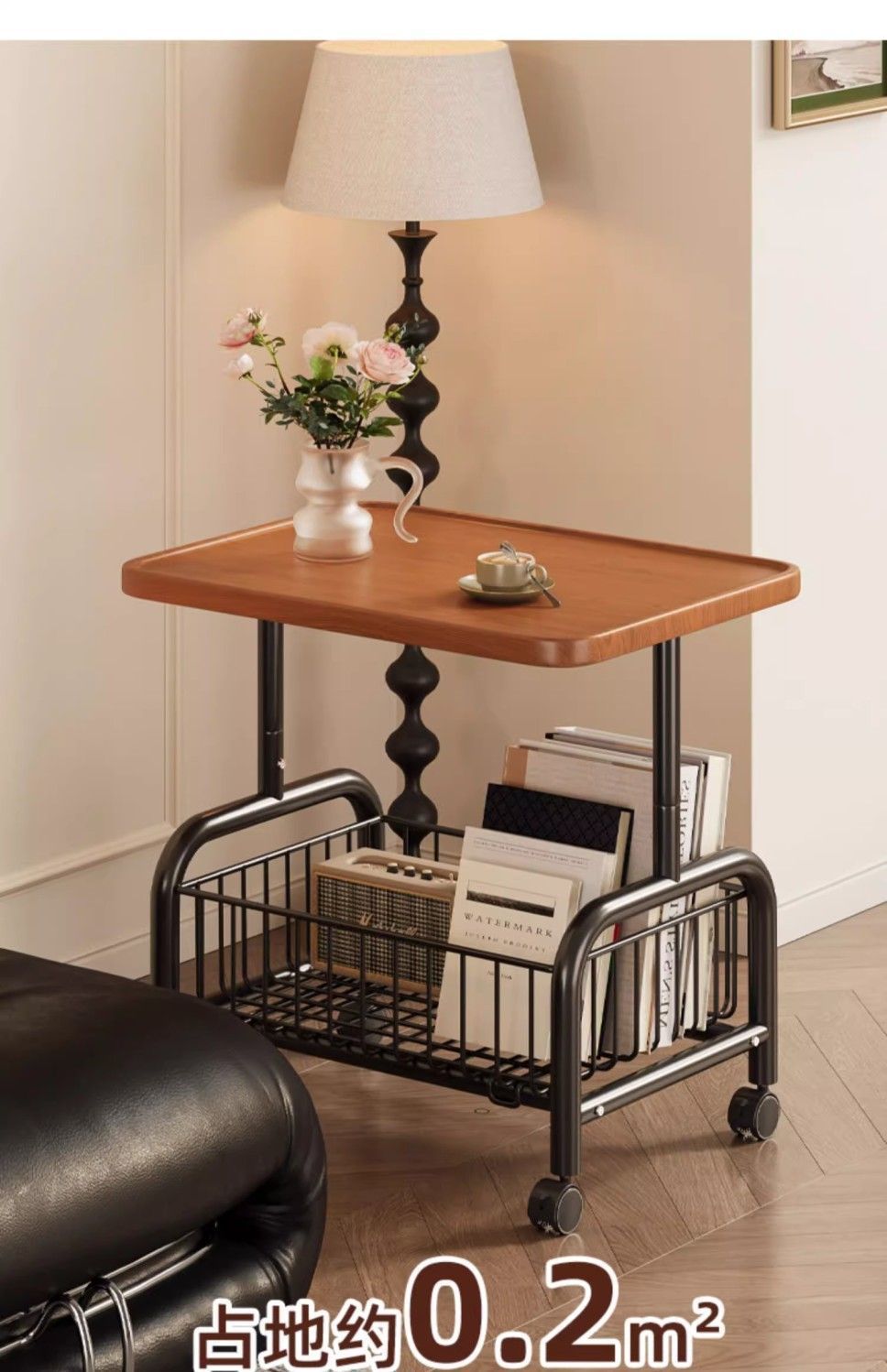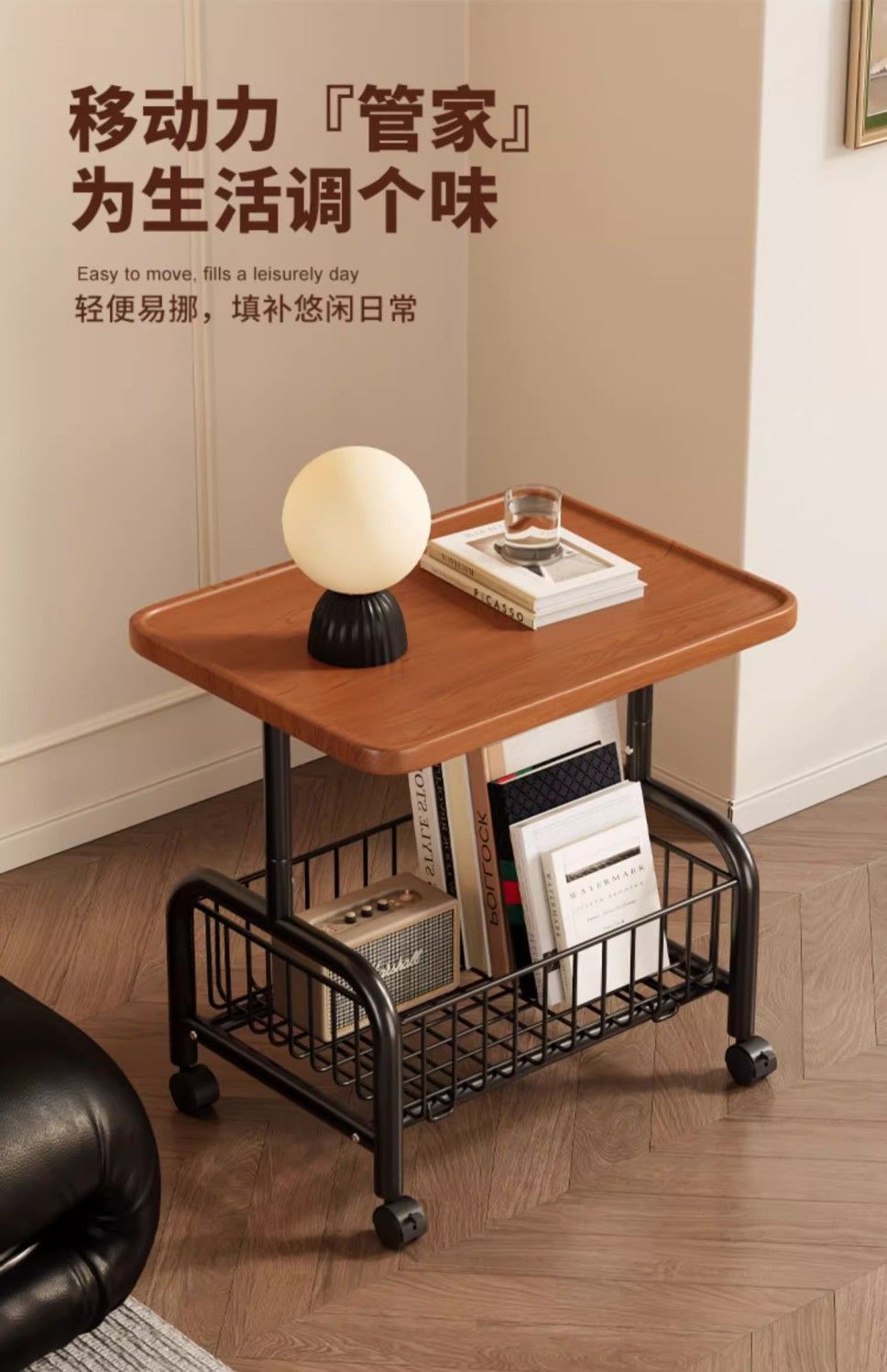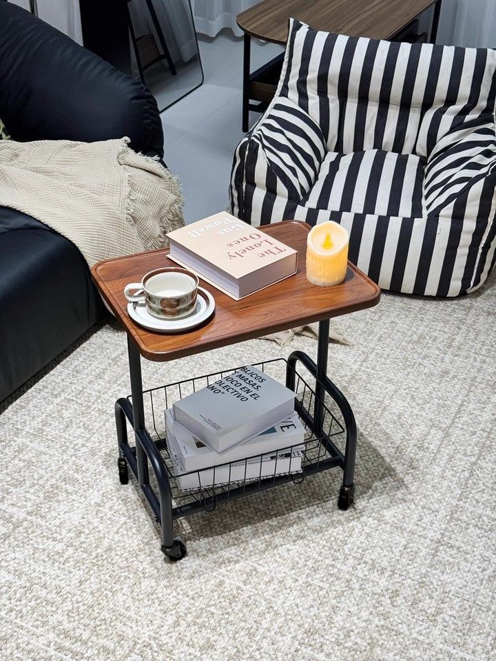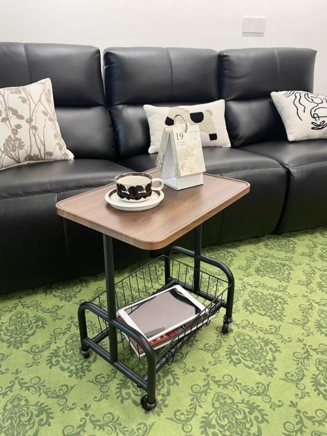Приставной столик для дивана, передвижная тележка для гостиной с колесиками, небольшой чайный столик в кремовом стиле, простой маленький столик для домашнего использования.