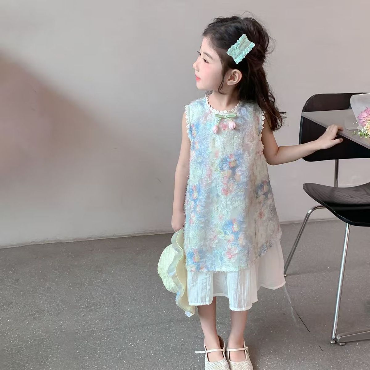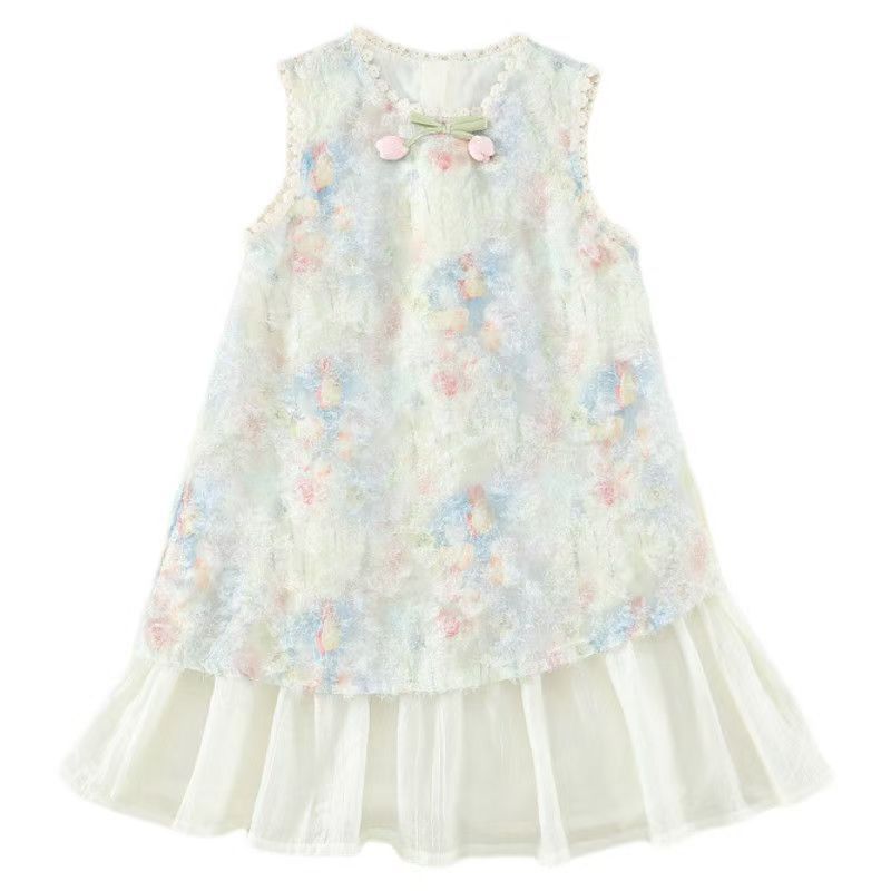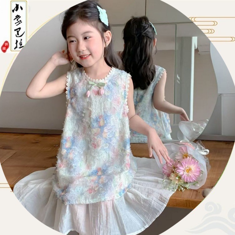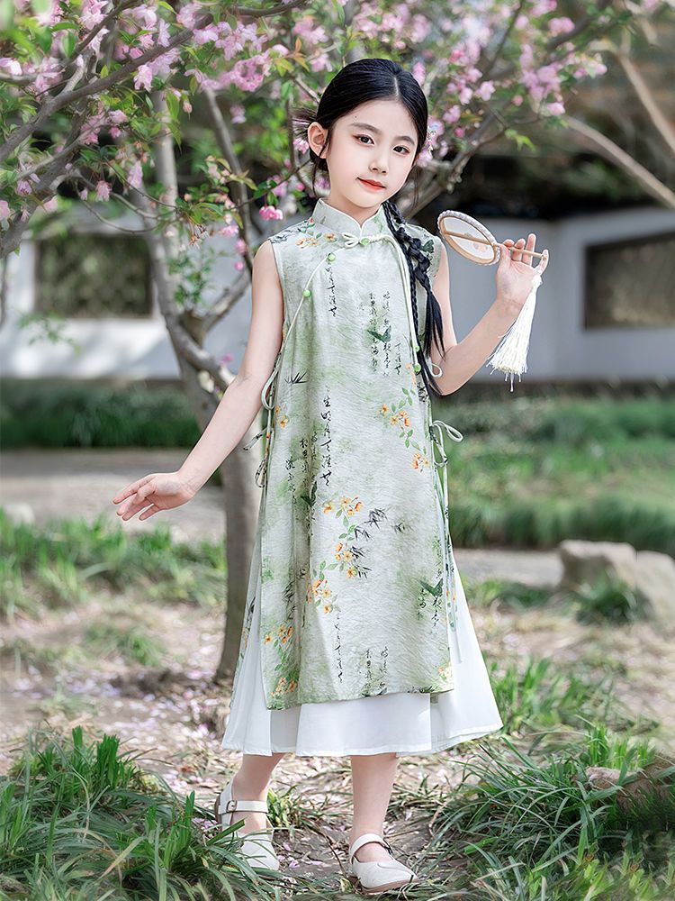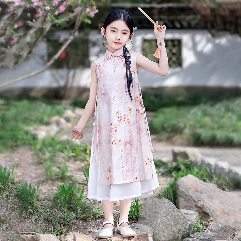 Детское платье Ханьфу, летний наряд 2025, новый стиль, модное и красивое платье-жилет для девочек, летнее платье принцессы